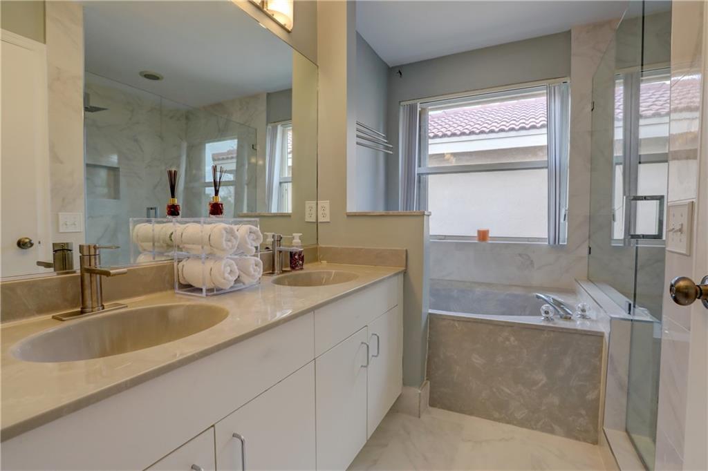 Gorgeous 3Bed/2.5Bath single family home in Village Gate at Plantation! Remodeled kitchen features wooden cabinetry with shaker doors, white quartz counter tops with glass tile back splash & stainless steel appliances. Open living area with tons of natural light. Tasteful tile flooring throughout the first floor & brand new berber carpeting on the second floor with deep baseboards. New master bathroom flooring & shower with calcutta tile & frame-less shower enclosure. Master bedroom has separate seating area, two large walk in closets & private outdoor balcony. Large laundry room. Bedrooms are very spacious. Water heater 2015. Accordion & panel hurricane shutters. Impact garage door. Community pool & playground!
