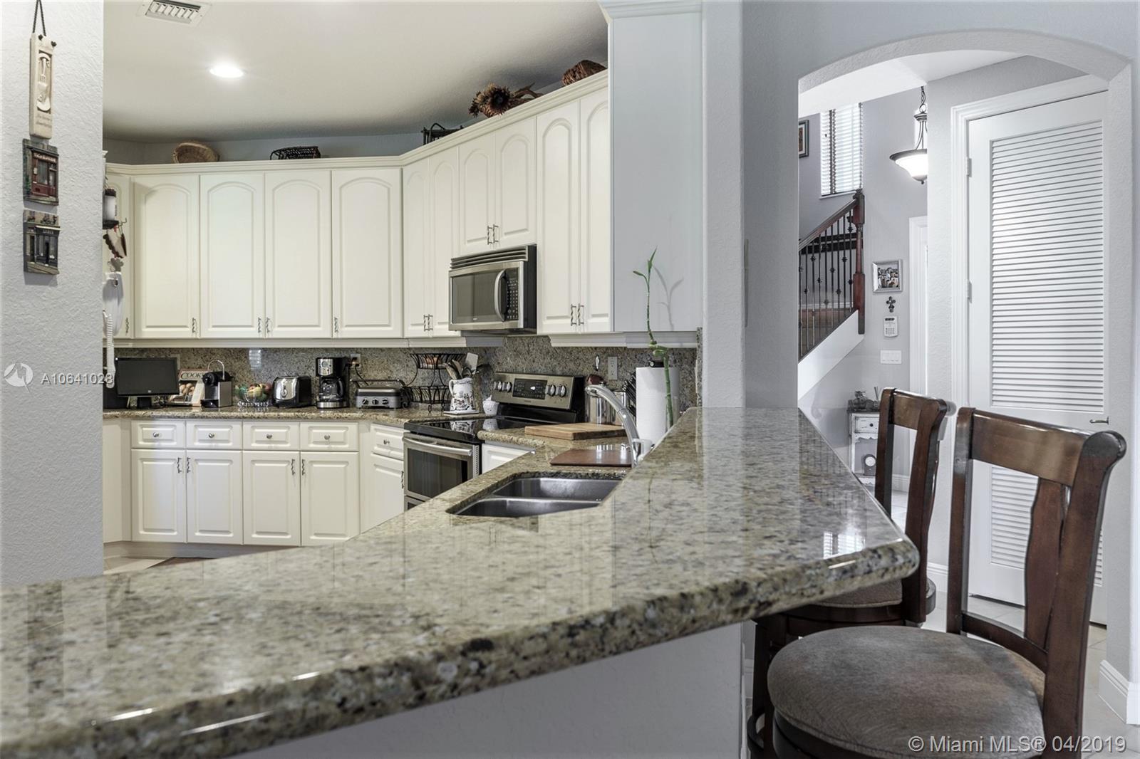 One of the best neighborhoods in Cooper City – Rock Creek. 4/3 with loft that provides separate downstairs bedroom and full bath for guests or in-laws. Interconnecting living room, dining room, kitchen and family room space. Ceramic tile floors throughout 1st floor; all hardwood on 2nd story. Jacuzzi tub in Master. Custom closets all bedrooms and pantry. Corner unit with large fenced yard and beautiful views of the lake. Original owner and very well kept. Large backyard for entertaining and room for a pool. Accordion shutters. Security alarm and special plug to set-up emergency generator. Located near A-rated schools, great parks, and small community feel. Offered with a one-year Home Shield Essential Warranty.
