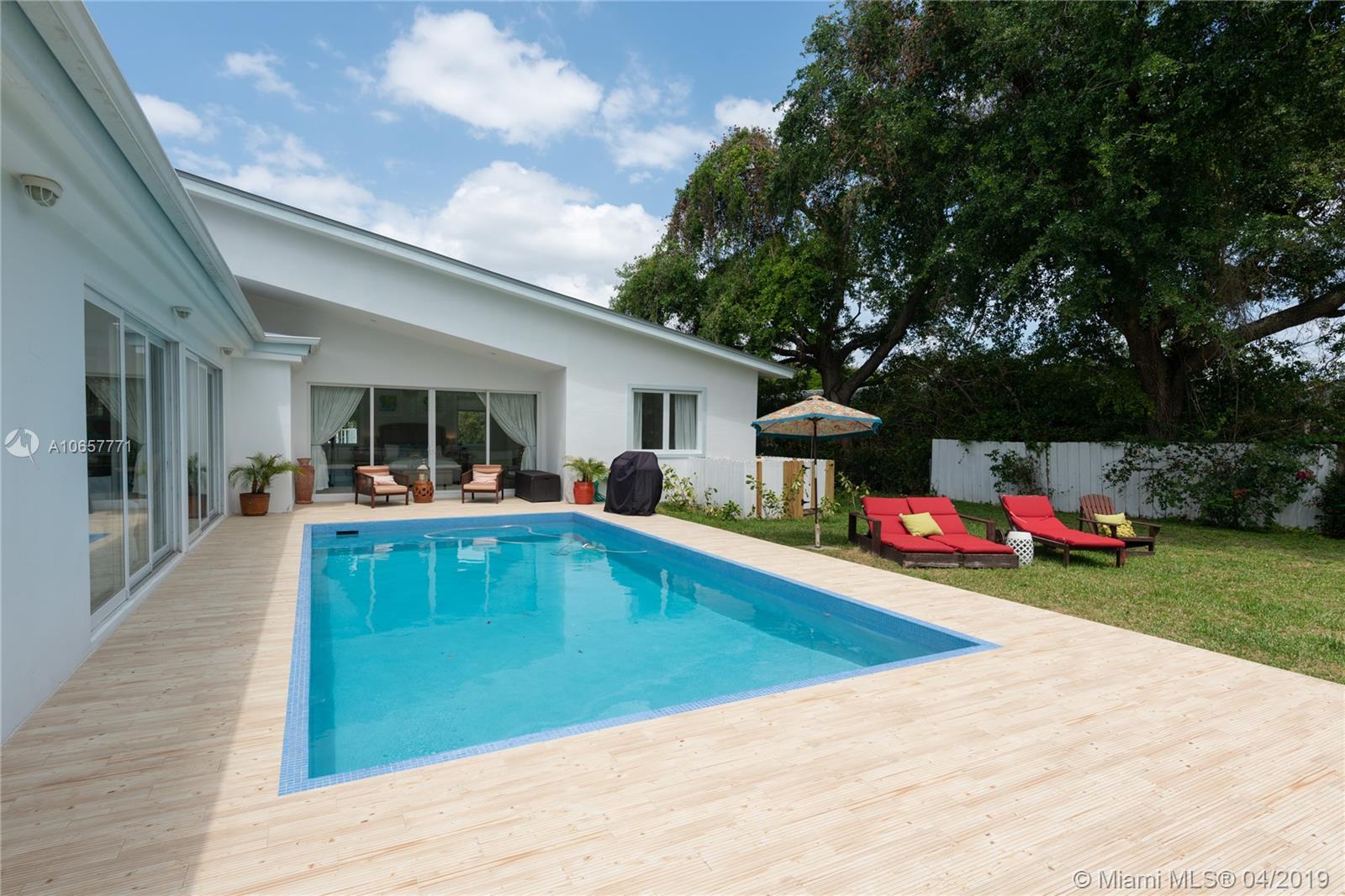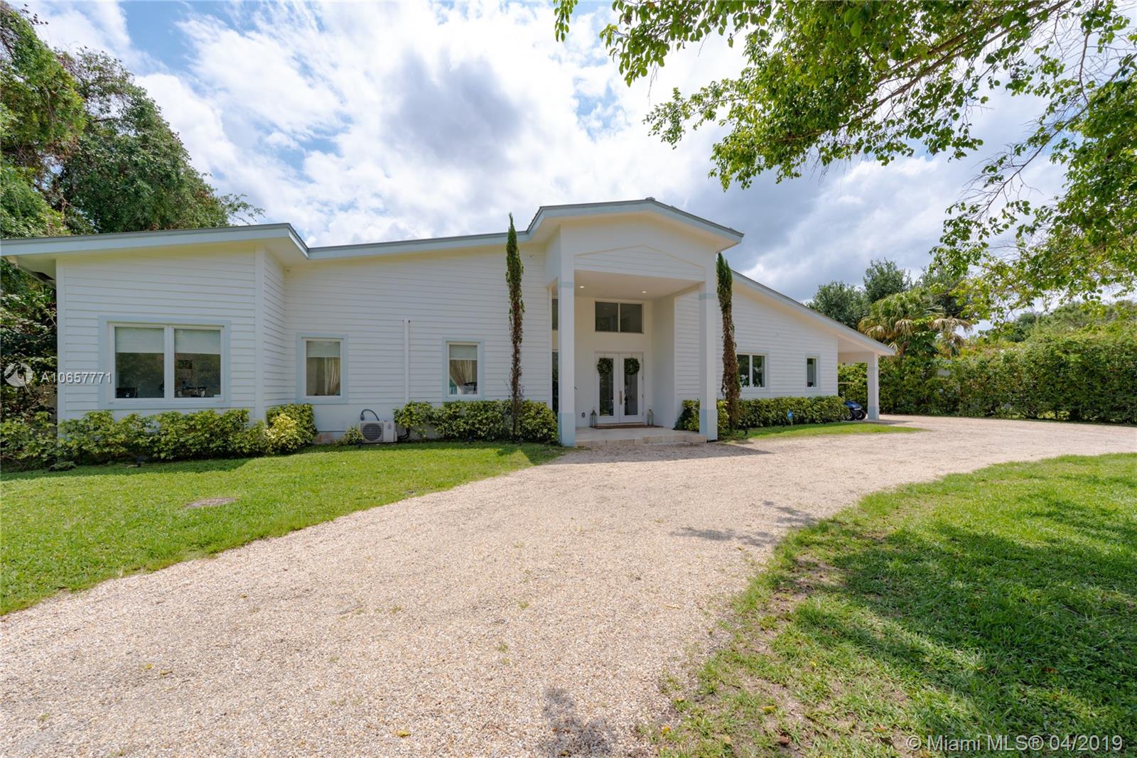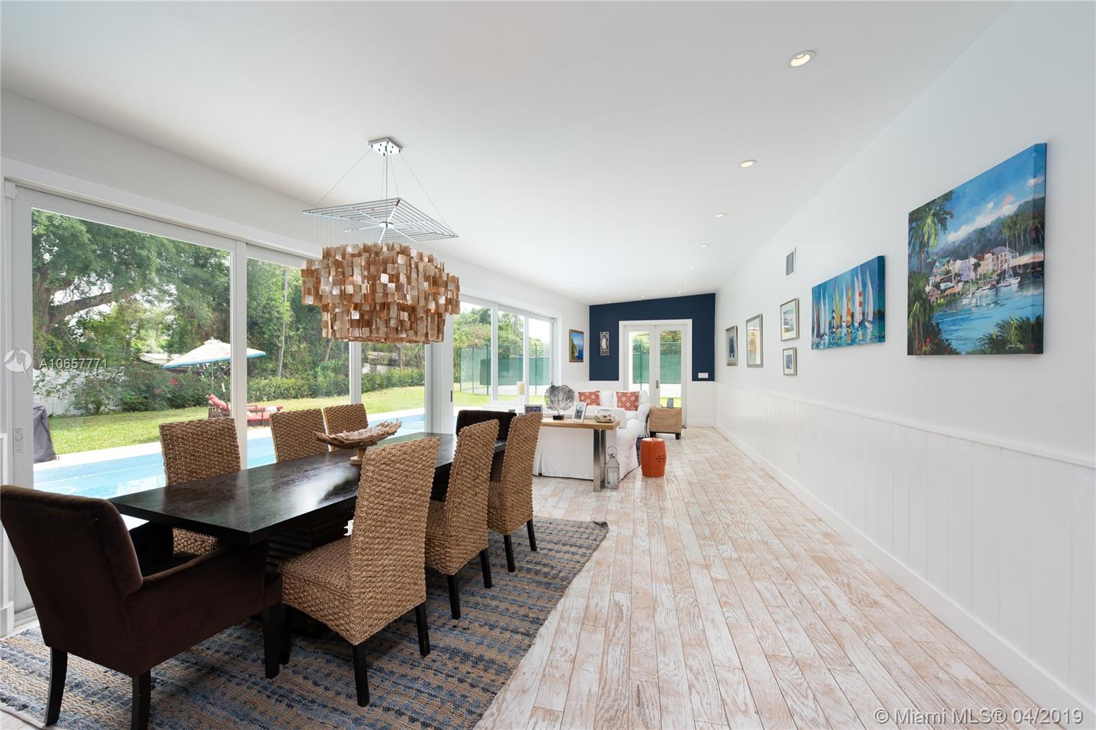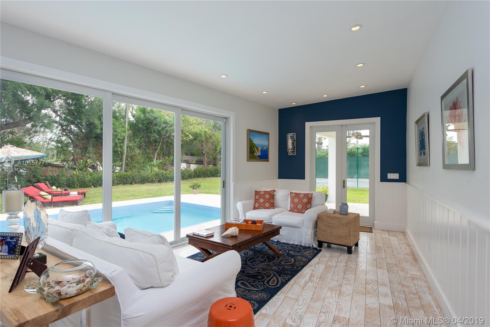 Imagine island resort living in the middle of Pinecrest. Nestled on a gated acre this Key West style home has been totally remodeled, offering a pool and state of the art clay tennis court. This charming home features high ceilings, impact windows and doors, gourmet kitchen with breakfast area, 4 bedrooms plus bonus/ bunk room and 4 bathrooms. The master suite with new bathroom and office overlook both pool and tennis court. The covered porch in the back is a great entertainment area. Watch while tennis is being played. This is a special listing which you shouldn't miss.
