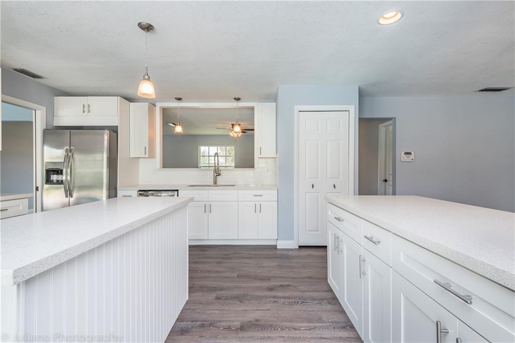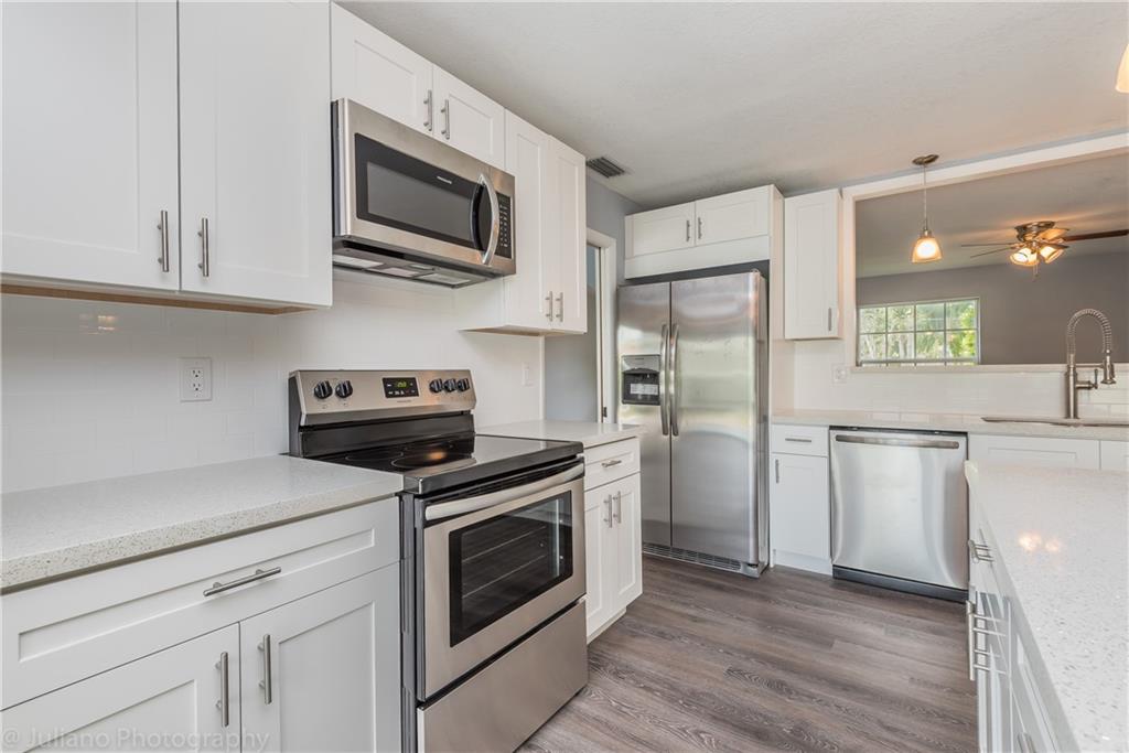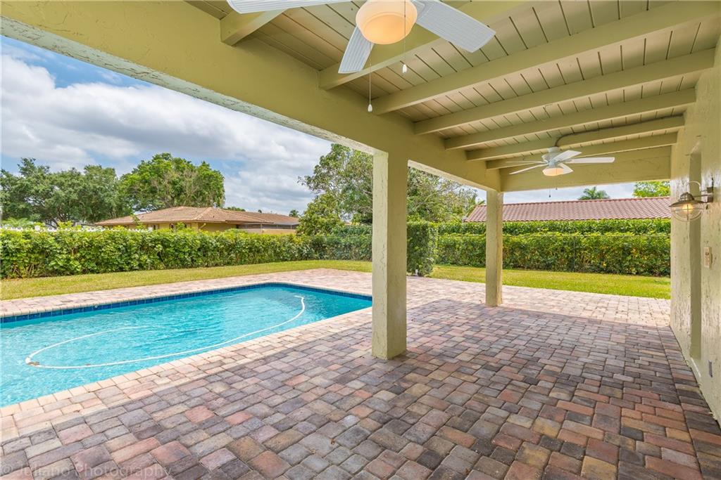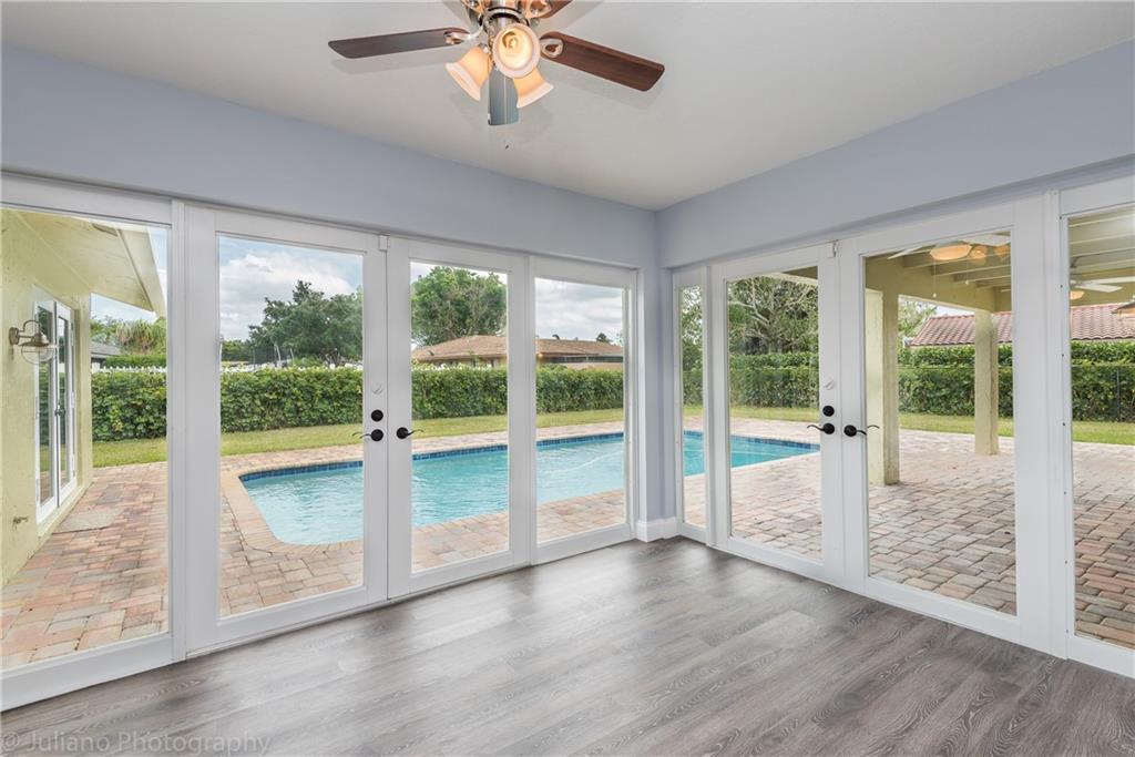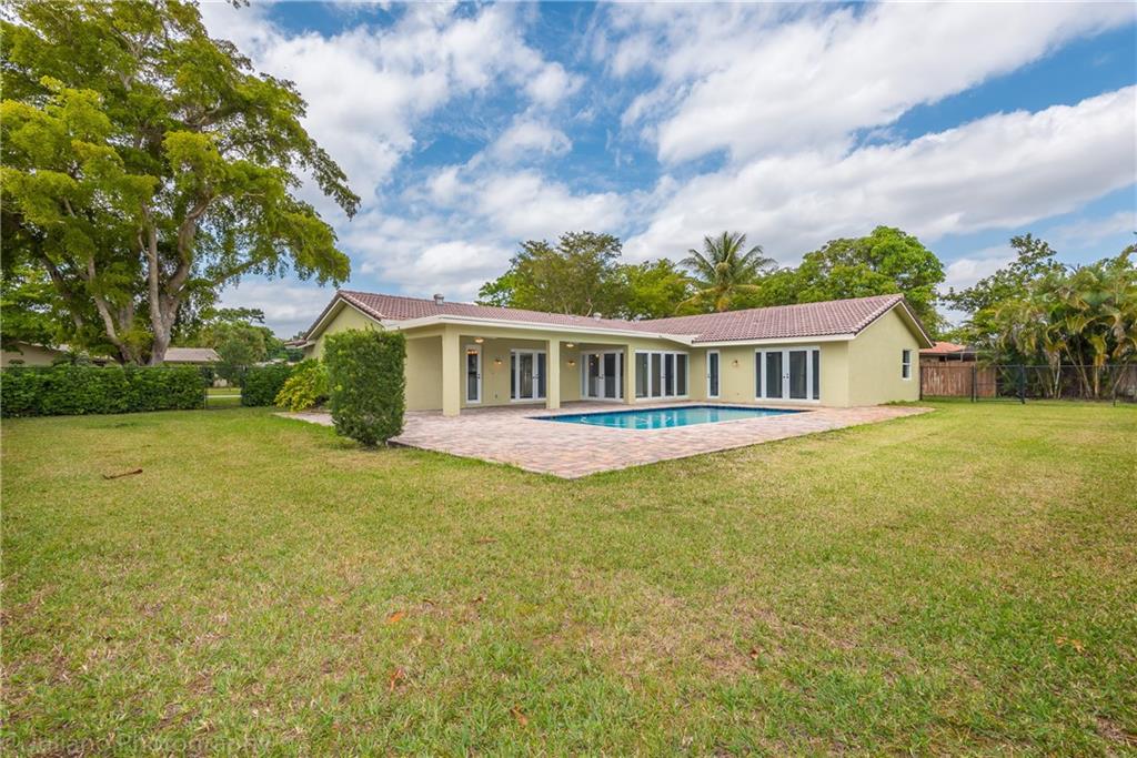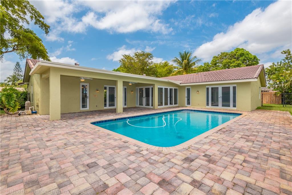 This is the most beautiful house in the neighborhood! 4/2.5 pool home that has hurricane impact windows, open floor plan, oversized lot, with the perfect backyard. Kitchen includes white shaker cabinets with quartz counter tops and stainless steel appliances. Beautiful wood look flooring throughout and tasteful modern touches. Both bathrooms include quartz counter tops and gorgeous tiled showers. Flat Roof is new and main roof in good condition. Ac in great condition and this house is move in ready! Go check it out today because it will not last at this price!