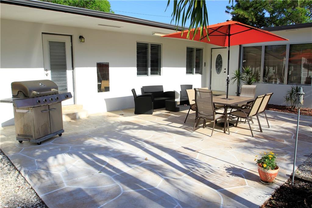 Modern renovated style 3/3 open and spacious house with exquisite German engineered flooring throughout. Big open kitchen w/center quartz center island and countertops ideal for entertaining. Stainless steel appliances, wine cooler, and wood cabinets. Formal dining with plenty of space (23’x13’). House has natural lighting and is freshly painted. Good size rooms, Master (18’x 15’), second and third bedrooms (15’x11’) with updated/modern bathrooms. Fenced private backyard with lovely landscape. Parking for up to five vehicles. Laundry room, 2016 A/C and 76-gallons gas water heater. GREAT INCOME OPPORTUNITY with 2 extra separated 1bed/1bath/kitchen guest rooms, ideal for Airbnb or in-laws quarters. Great location, short drive to the beach, casinos, Aventura Mall & more. Make it your home!