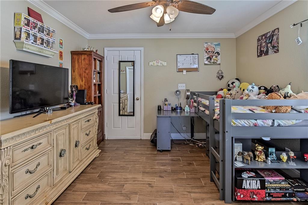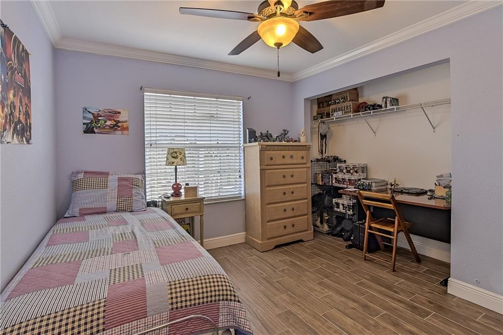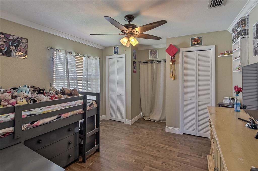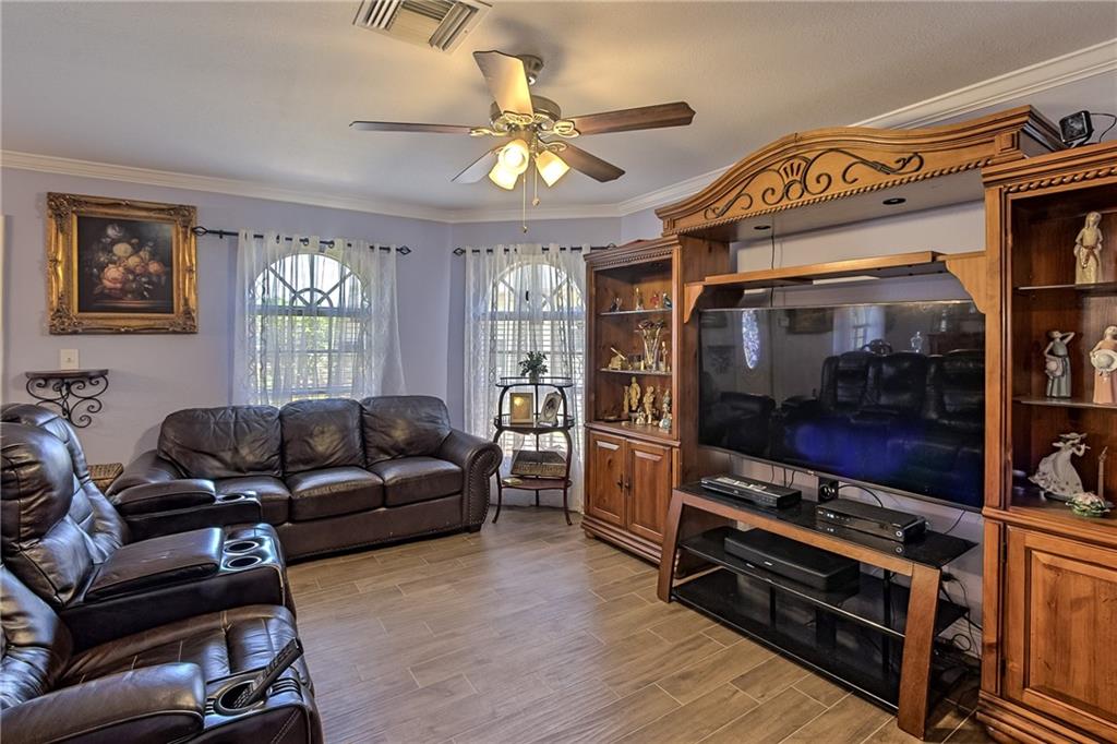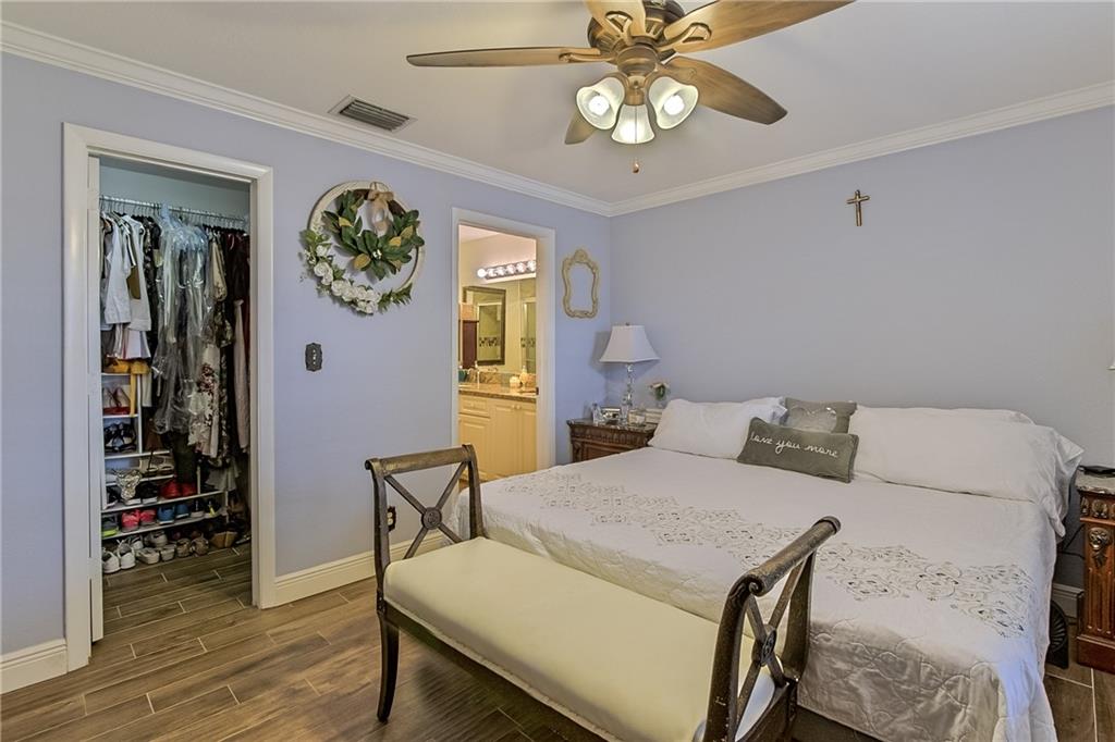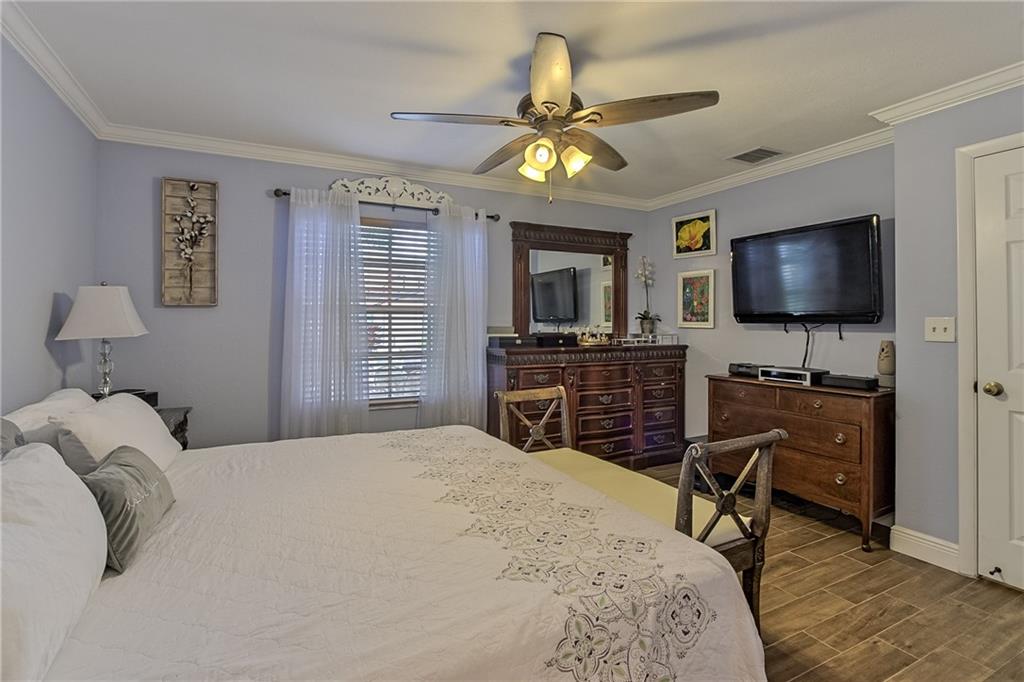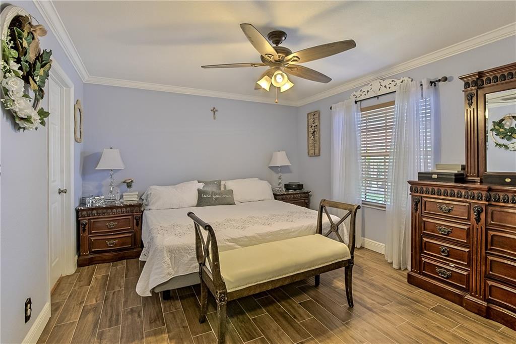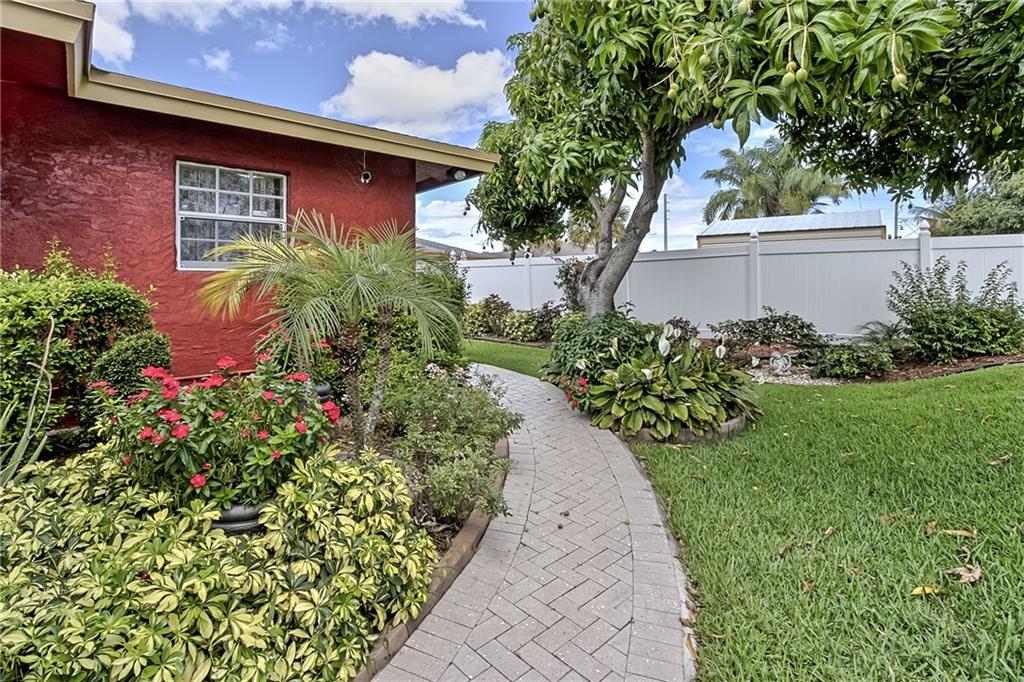 Lovely and meticulously maintained 04 bed/03 bath home located on cul-de-sac. Interior features tons of upgrades, porcelain tile, engineered wood flooring in bedrooms, crown molding throughout, dual sinks in master bathroom and guest bathroom, granite countertops in kitchen and bathrooms. Den converted into fourth bedroom en-suite/mother-in-law quarters efficiency with private entrance. Exterior features fantastic spacious paved patio with lots of elbow room and extra seating for entertaining around terrific built-in barbecue grill, all surrounded by luscious landscape and mature trees, plus paved driveway. It will not last long!!