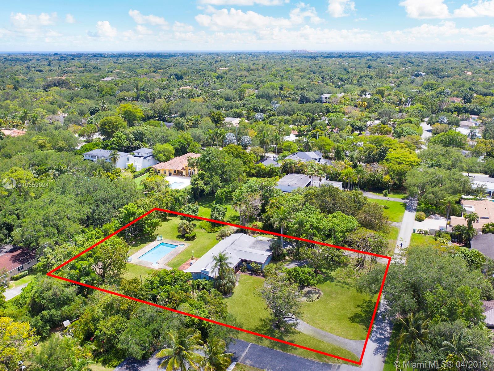 Exceptionally well located acre lot with great dimensions in the northern part of Pinecrest. Existing 50's blt 3/2 can be added to or build your dream home in a fabulous location surrounded by many acre and half acre multi-million dollar new mansions. Over sized deep (8.5 ft) pool far enough away from the house to accommodate any new construction. Truly a beautiful and inviting property.