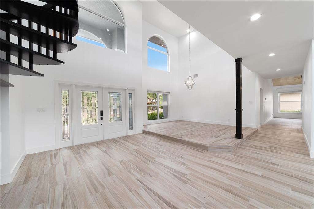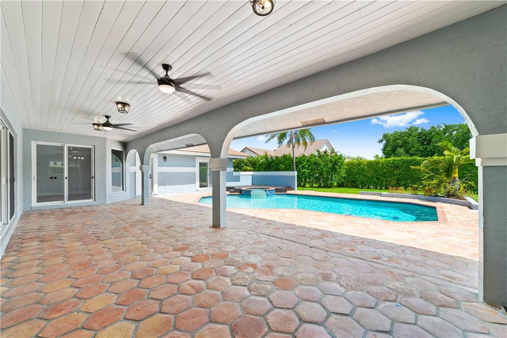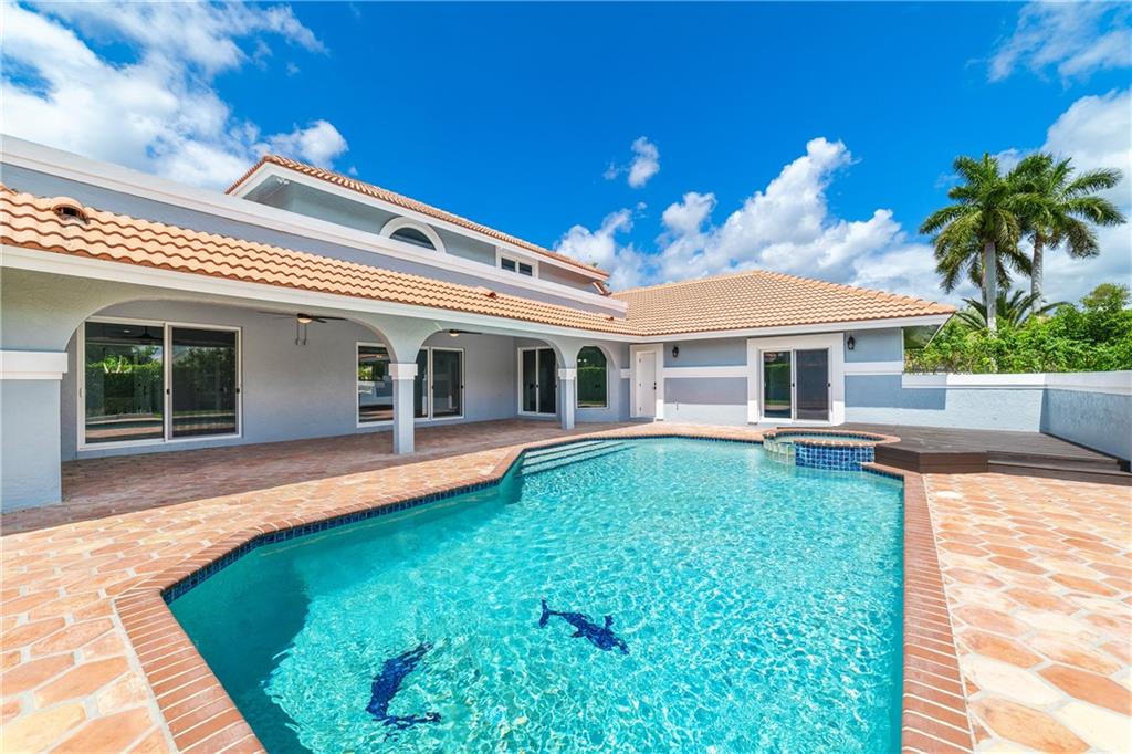 Rare opportunity to own a completely remodeled Eagle Trace residence with impact windows & doors throughout! This masterpiece boasts 4 bed, 4 full baths, 2 half baths, 2-car garage and pool with spa. Wood-look tile throughout and LED recessed lighting. Open layout offers formal living room, formal dining and family room plus a loft with wet bar and a rooftop terrace! Chef's kitchen offers maple cabinetry, peninsula and breakfast bar, quartz countertops, black granite undermount sink, sensor touch faucet and GE Profile appliances. First-floor master suite boasts his/her closets with barn doors, vaulted ceilings and a sliding glass door out to the pool deck. The en-suite features an oversized shower, marble tops, Thassos flooring and a free-standing tub. 4 Zoned AC unit and freshly painted.
