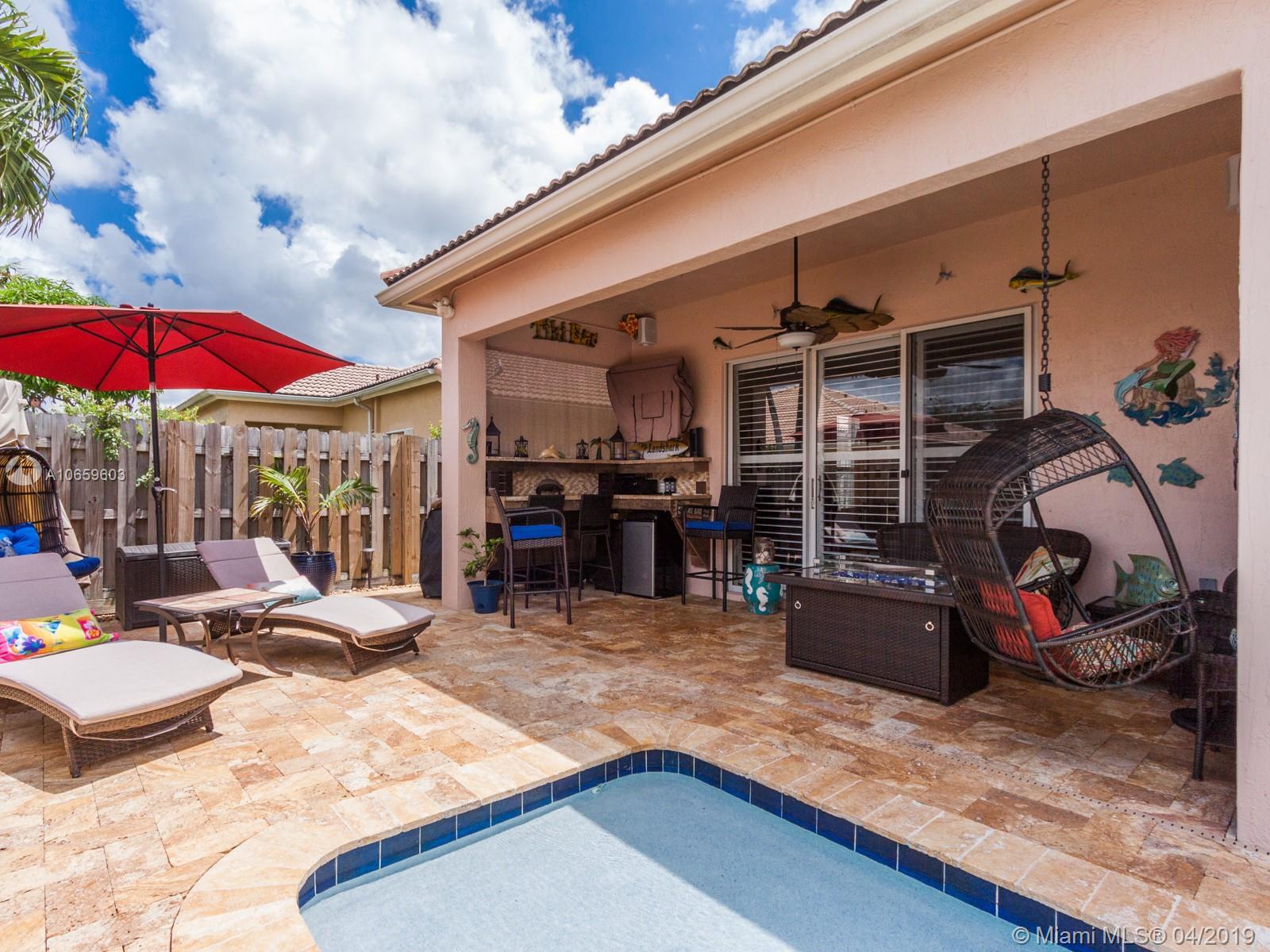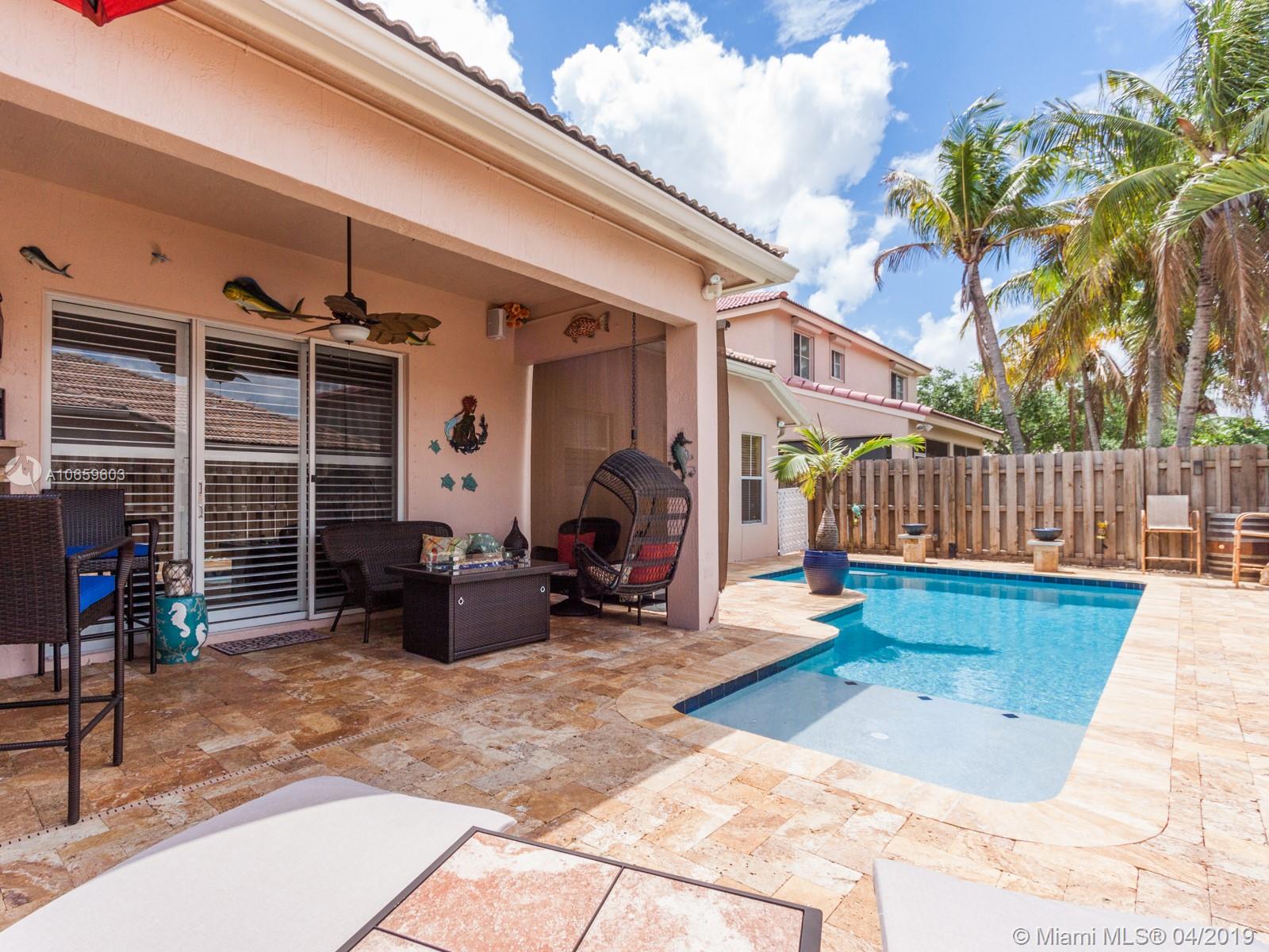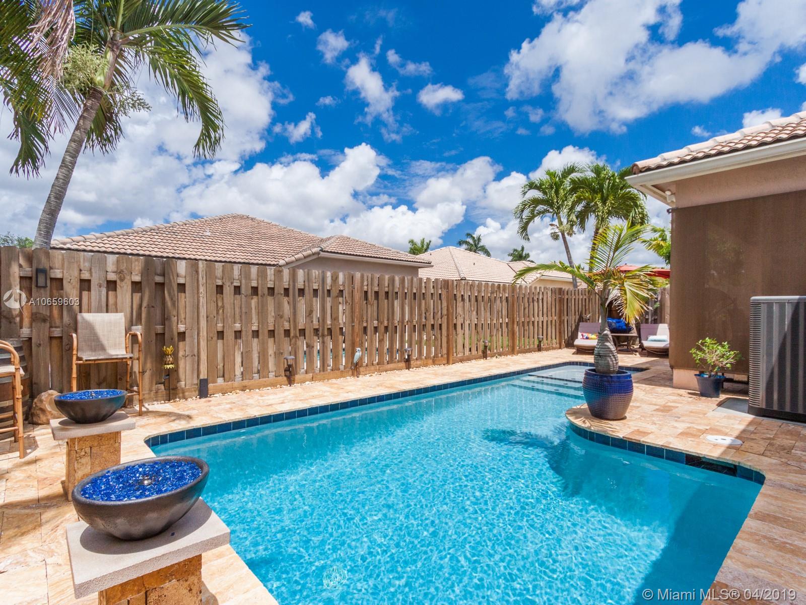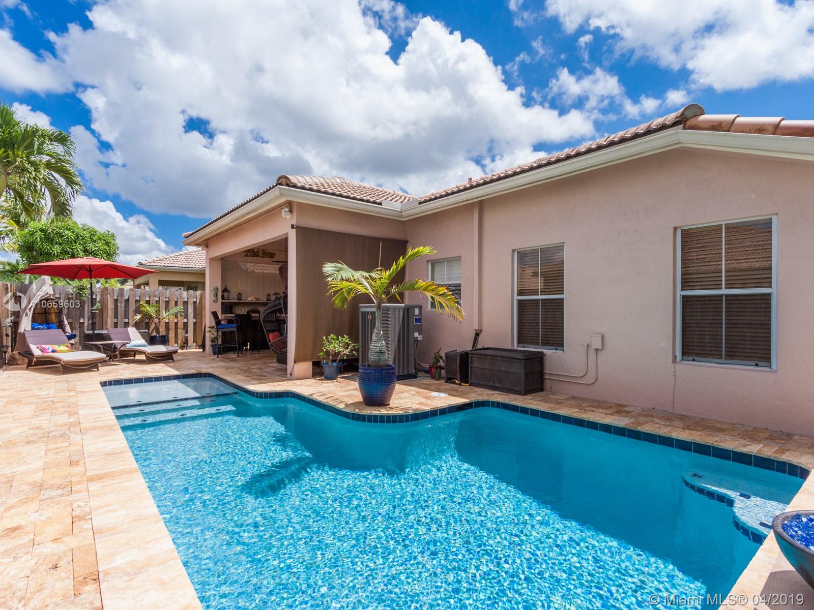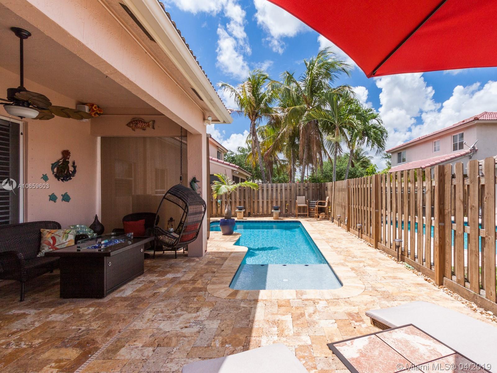 Beautiful and meticulous 3/2/1 in the gated community of Poinciana Parc in Davie. This home boasts tile floors throughout and interior Plantation shutters. The kitchen has upgraded cabinetry, Quartz countertops and glass tile backsplash with new appliances. (1yr old.) Outside patio has been redone completely in Travertine marble. The pool is new and has been resurfaced with Diamond Bright (2018). The pool has an upgraded pump and filter and LED lights as well as a sun shelf. The pool can be controlled wirelessly via smartphone app. The a/c is 2 months old inside/out, Water heater 3-5 yrs old and Nest Temperature system. This awesome home will not last long!