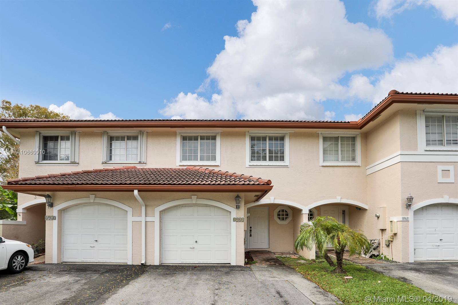 This one will not last!!! Great Opportunity for First Time Home Owner. Amazing 3/2/1 Townhouse with 1 car garage and drive way accommodates 1 additional car. This townhouse is located in the heart of Coral Springs. This townhouse is located on a quiet residential street perfect for a small family. Home features open floor plan on lower level with 1/2 bath on main level. New carpet and paint on second level. Large screen patio area great for cookouts. Second floor has 3 bedroom and 2 full baths. Master bedroom features vaulted ceilings, 2 walk-in closets and roman tub.