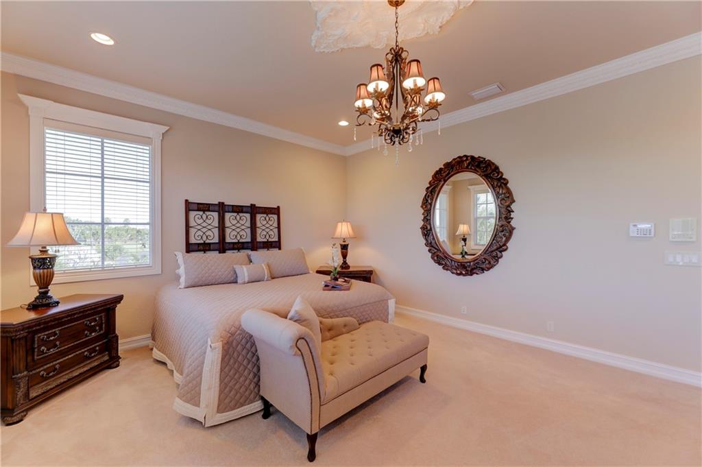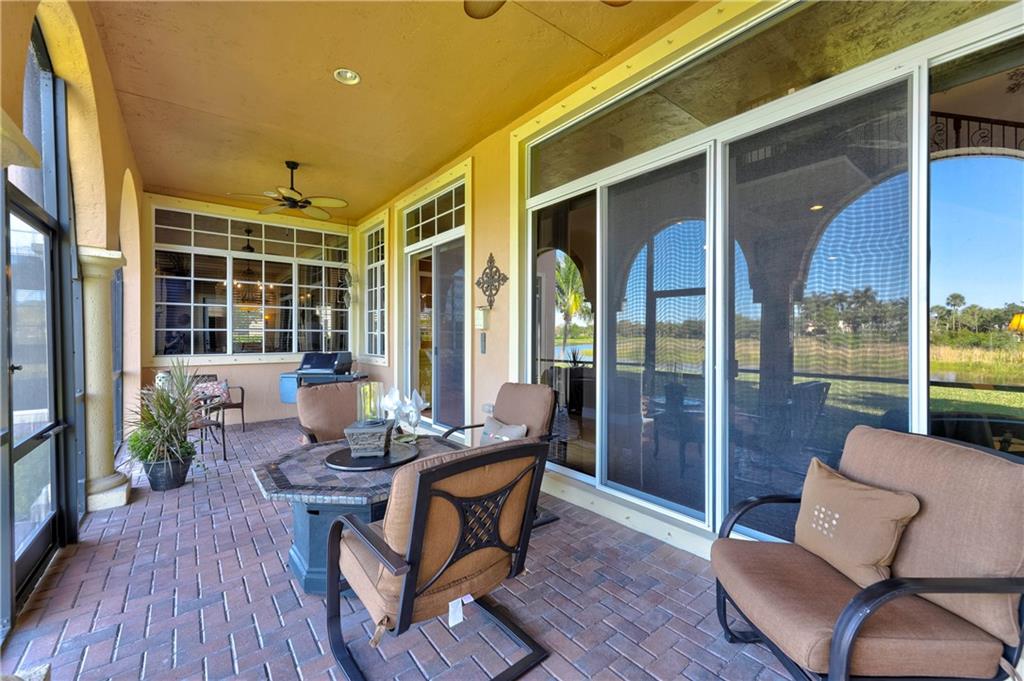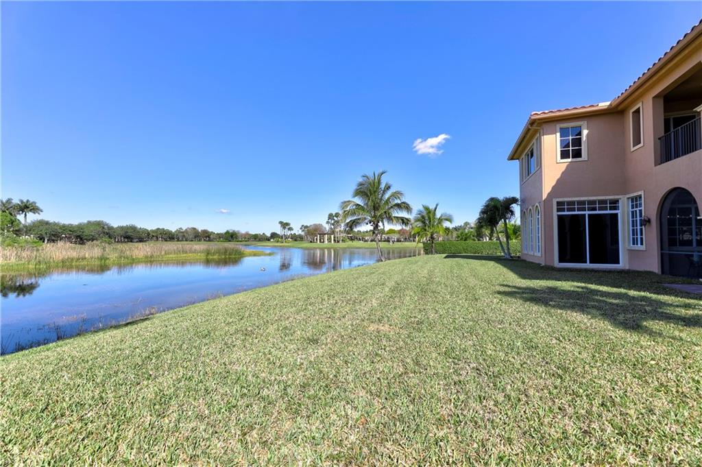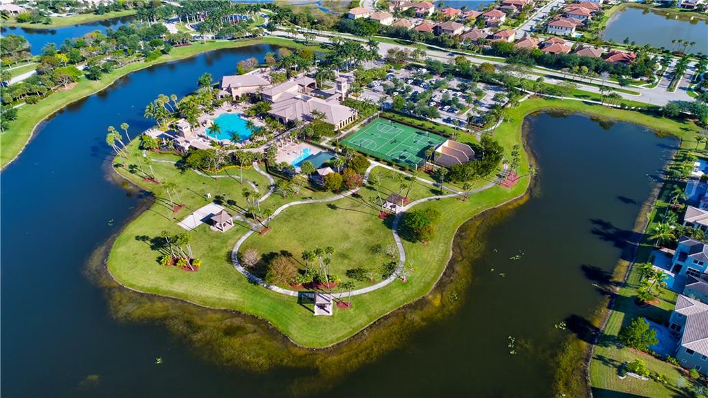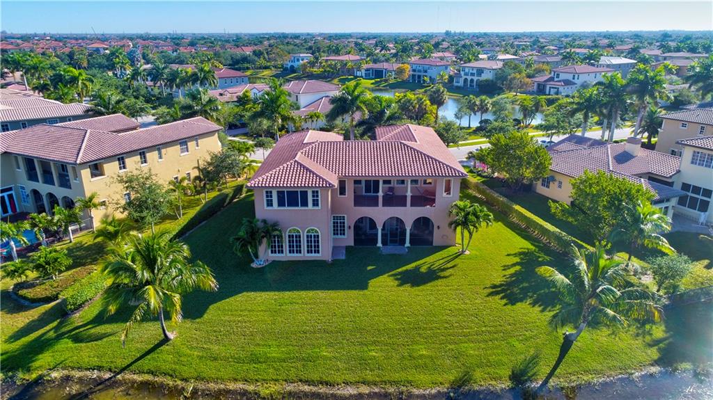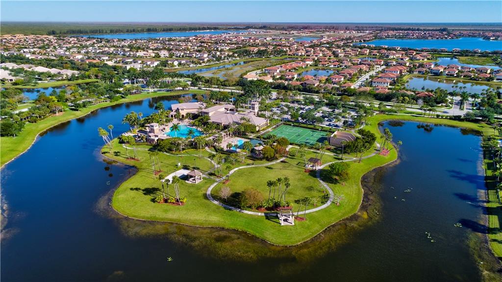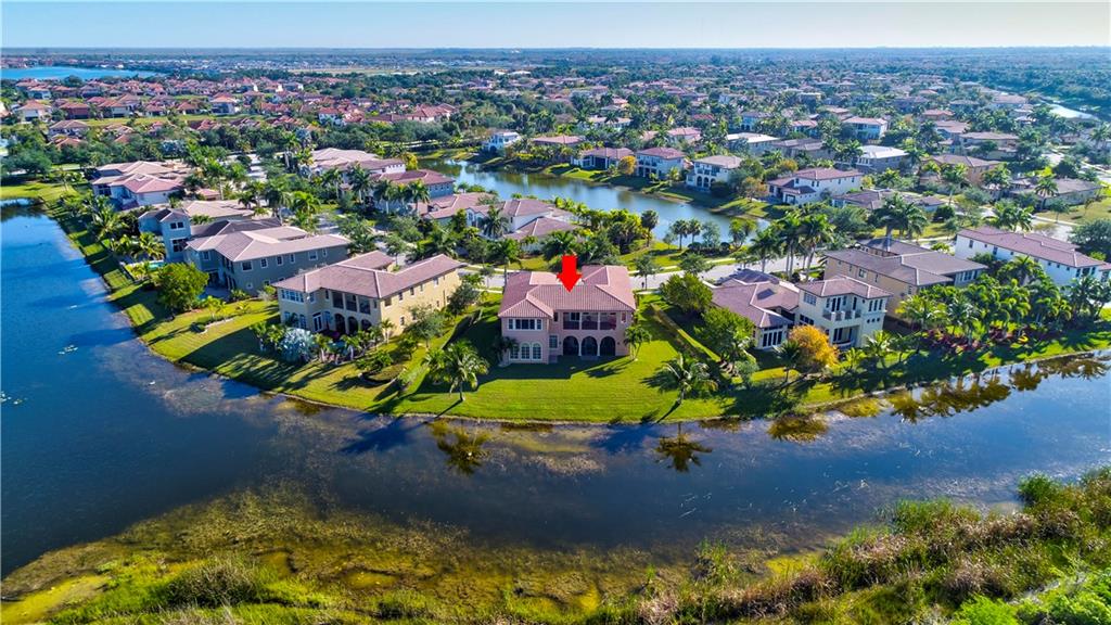 Exquisite Chesapeake Model Situated On A Premium Waterfront Pie-Shaped Lot w/5 Beds + Game Room, 4.5 Baths, & 3 Car Garage. This Grand Home Features Marble Floors Downstairs, Crown Molding Throughout, Newer Carpets In Beds, 2018 AC, Downstairs Guest Suite. Very Large Kitchen w/Granite Counters & Backsplash, Wood Cabinets, Stainless Steel Appliances, 2 Islands, Breakfast Nook & Family Room Overlooking Large Backyard & Screened In Patio w/Room For A Pool & Still Have Enough Yard For Kids & Pets To Enjoy! Upstairs Master Suite w/Large Custom Built-In His/Her Walk-In Closets, Dual Vanity Sinks w/Whirlpool Spa Tub & Glass Shower. Huge Bonus Room Perfect For Play Area/Game/Media Room or 6th Bedroom. Enjoy A-Rated Schools, Guard Gated Community, Walk To Resort Style Clubhouse w/Pool, Gym & More!