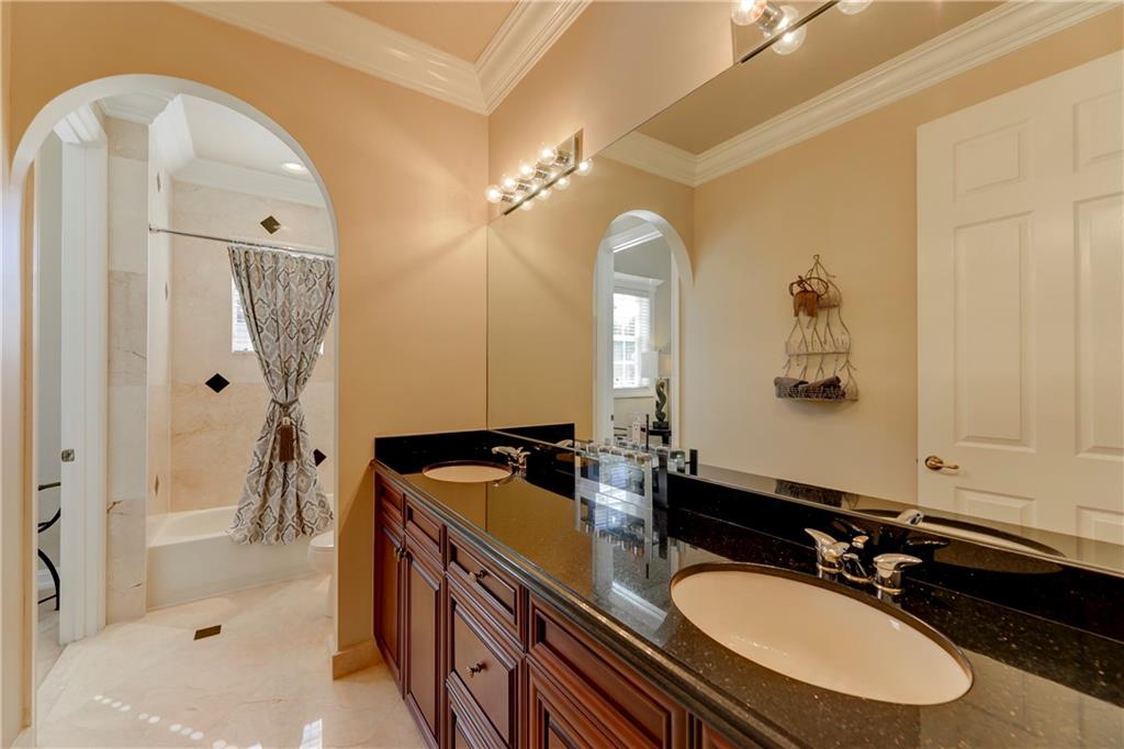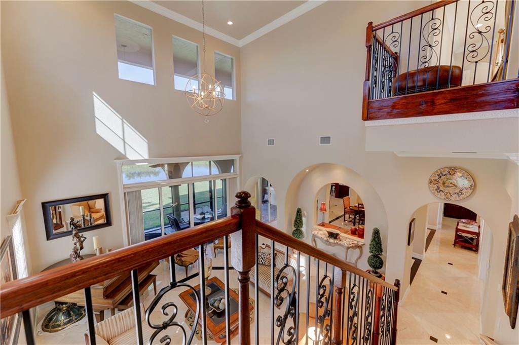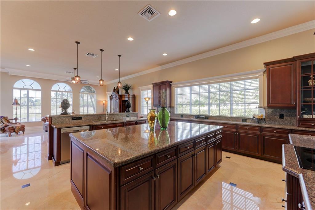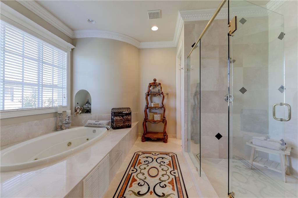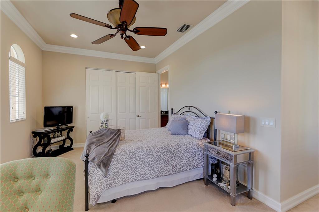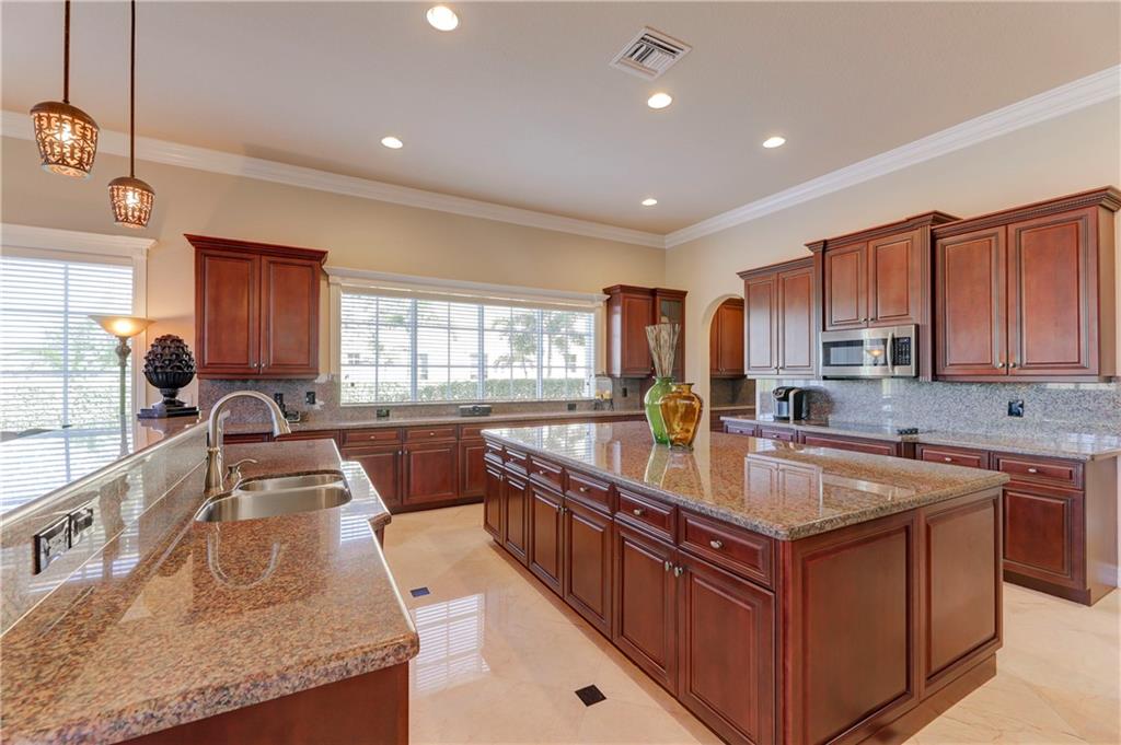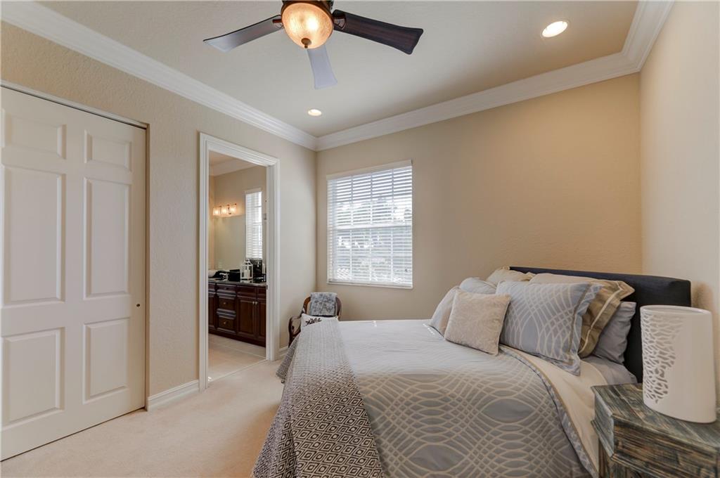 Exquisite Chesapeake Model Situated On A Premium Waterfront Pie-Shaped Lot w/5 Beds + Game Room, 4.5 Baths, & 3 Car Garage. This Grand Home Features Marble Floors Downstairs, Crown Molding Throughout, Newer Carpets In Beds, 2018 AC, Downstairs Guest Suite. Very Large Kitchen w/Granite Counters & Backsplash, Wood Cabinets, Stainless Steel Appliances, 2 Islands, Breakfast Nook & Family Room Overlooking Large Backyard & Screened In Patio w/Room For A Pool & Still Have Enough Yard For Kids & Pets To Enjoy! Upstairs Master Suite w/Large Custom Built-In His/Her Walk-In Closets, Dual Vanity Sinks w/Whirlpool Spa Tub & Glass Shower. Huge Bonus Room Perfect For Play Area/Game/Media Room or 6th Bedroom. Enjoy A-Rated Schools, Guard Gated Community, Walk To Resort Style Clubhouse w/Pool, Gym & More!