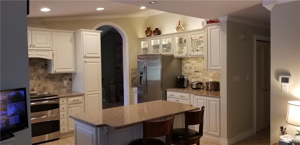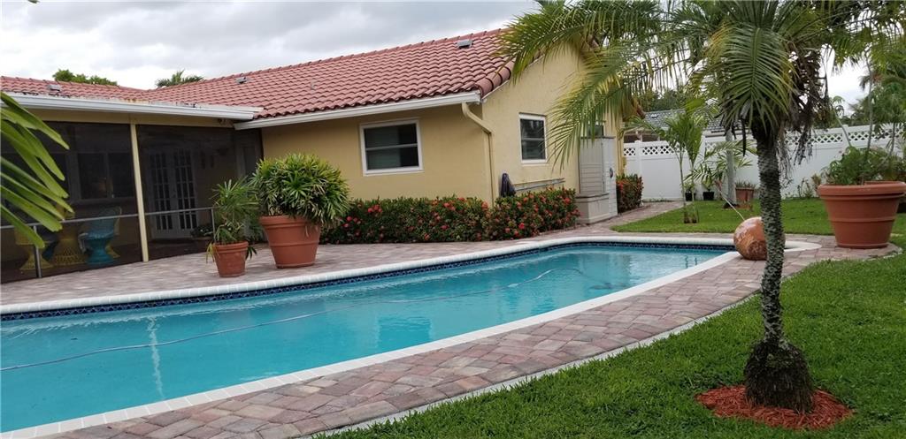 Beautifully landscaped waterfront, renovated 4/2 pool home w/den & 2 car garage. 24” Italian tile in high traffic area. Vaulted kitchen w/SS appliances, quartz countertops & pullout drawers cabinetry. Kitchen & island open to a family room leading to large Saltillo tiled enclosed porch through double French doors. A sunken vaulted living rm w/real brick fireplace & vaulted dining room leading to porch through double French doors. Master bdrm has a walk-in closet w/custom hunter window shades. Other bdrms & den have plantation shutters. Mast bath w/spacious roman shower. Home features alarm system, security cameras, hurricane impact windows & 20SEER efficient AC. Newly resurfaced diamond bright pool w/paver brick decking overlooking canal & fenced in yard. NO HOA FEES! BY APPOINTMENT ONLY!