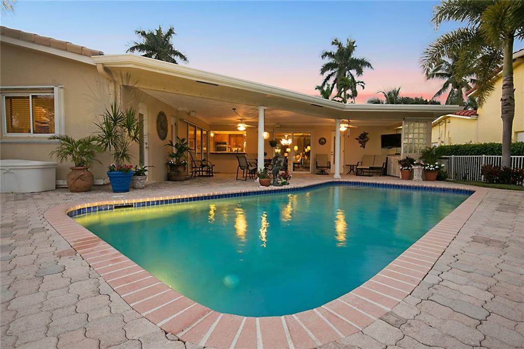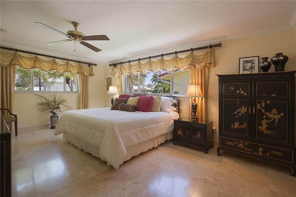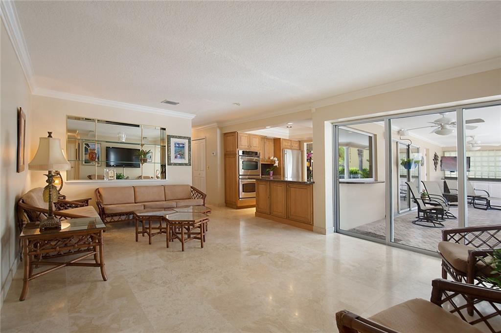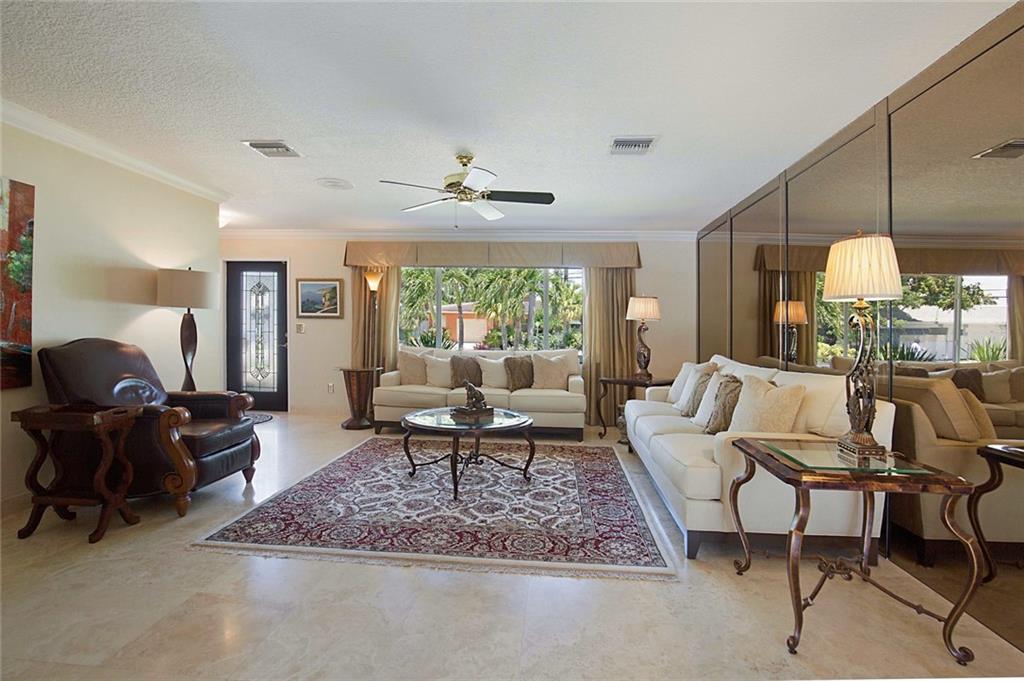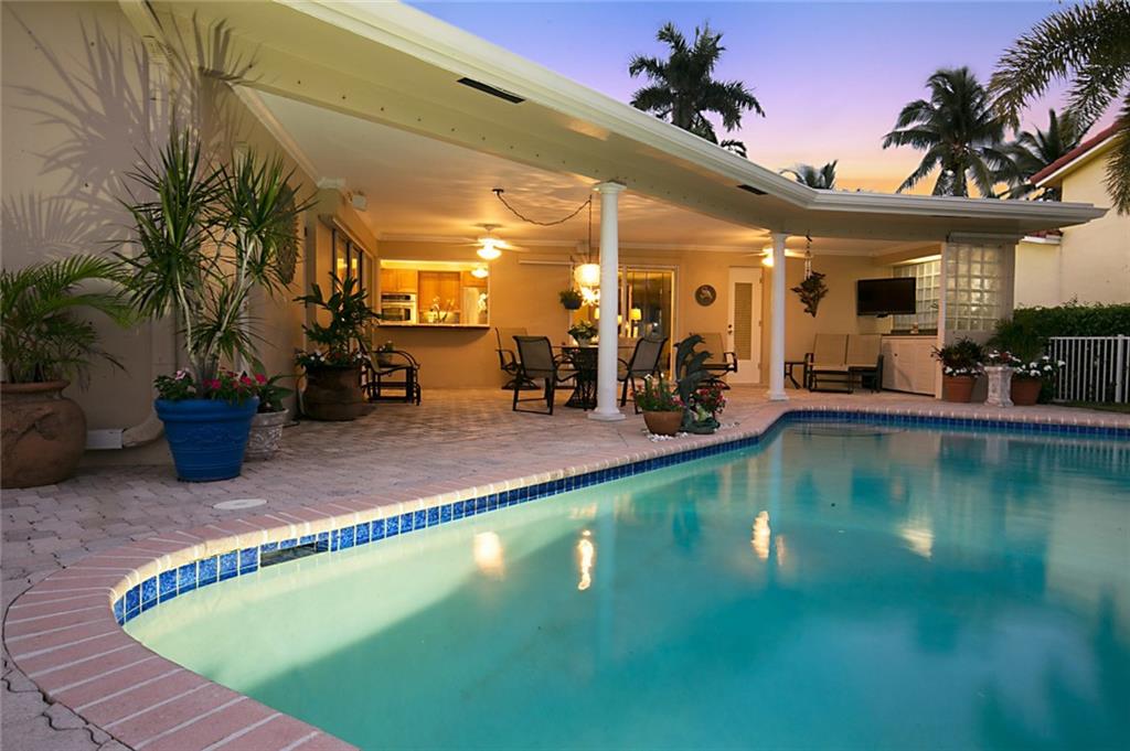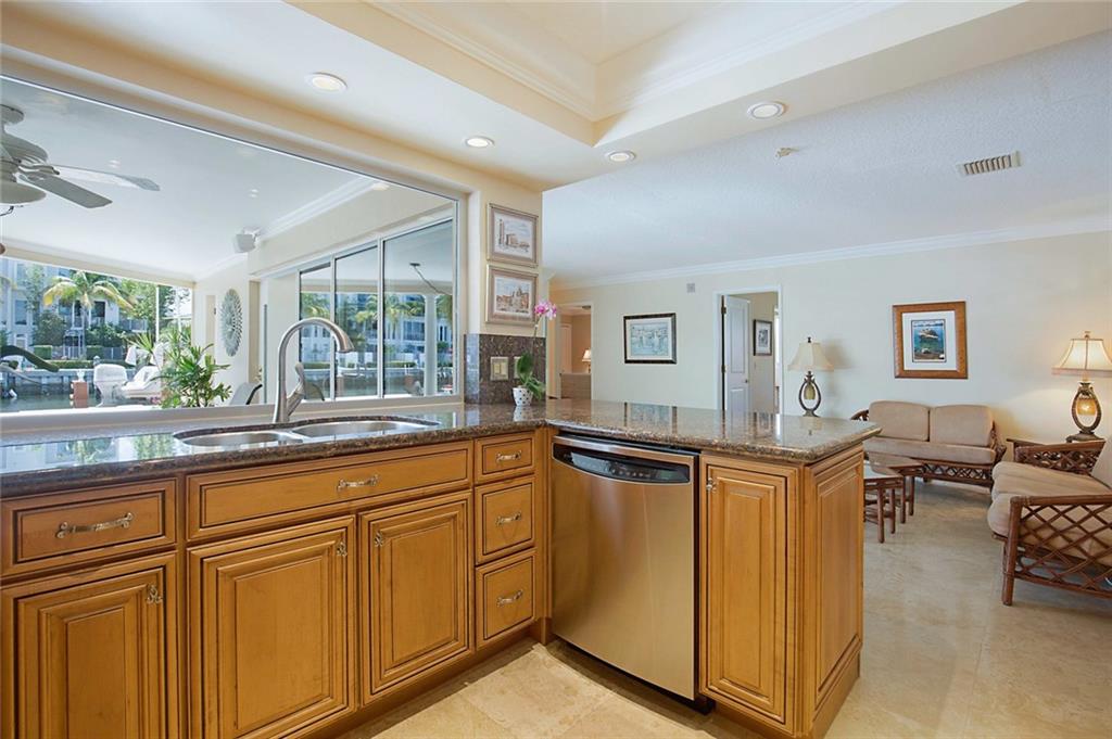 Superb Harbor Village home featuring 3 Bedrooms, 3 Baths and inviting heated pool overlooking an over 140 foot wide canal. There are marble floors throughout this freshly updated ranch with split bedroom plan. Completely redone kitchen with beautiful hard wood cabinets, granite counter tops, and new appliances, overlook the pool & waterway. Master BR has a cabana bath, and large windows for a bright open feel. Over-sized laundry room sports a new washer and dryer, and a farm sink. Lots of water views from the interior of this home for the perfect Florida feel. A newly refurbished dock is a generous 70' wide and includes water, power, and a 16 ton boat lift. A privacy fenced yard and meticulous landscaping, and amazing outside covered entertainment area are what Florida living is all about.