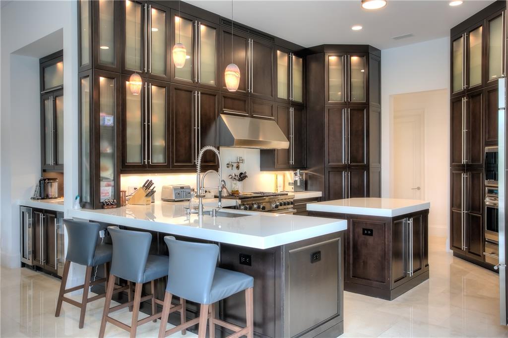 NO DETAIL HAS BEEN SPARED IN THIS LIKE NEW MAGNIFICENT CUSTOM BUILT TRANSITIONAL BEAUTY ON SOUGHT AFTER "INNER CIRCLE" WATERFRONT LOT! 2- STORY ELEGANCE W 6 BEDROOMS, 7 1/2 BATHROOMS, OFFICE & LOFT - HURRICANE IMPACT GLASS-GLEAMING MARBLE AND RICH HARDWOODS THROUGH OUT - CUSTOM KITCHEN W TOP OF THE LINE PROFESSIONAL STAINLESS STEEL SUB-ZERO & WOLF APPLIANCES INCLUDING GAS RANGE -FLOOR TO CEILING STONE AND WOOD GAS FIREPLACE- HUGE FAMILY ROOM W WET BAR - HIGH END DESIGNER TOUCHES THROUGH OUT INCLUDING BUILT-INS, MOTORIZED WINDOW TREATMENTS AND LIGHTING -OUTDOOR SUMMER KITCHEN COMPLETE W BBQ, SINK AND REFRIGERATOR-VANISHING EDGE HEATED SALT POOL & SPA WITH HUGE CUSTOM MARBLE DECK -MARBLE CIRCULAR DRIVEWAY-HUGE SIDE YARD FOR SPORT COURT, PETS OR PLAY! THIS HOME MUST BE SEEN TO BE APPRECIATED!