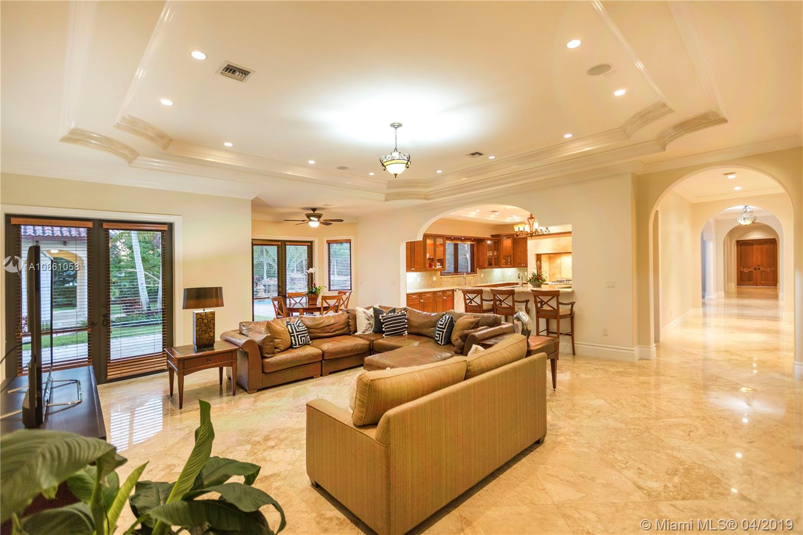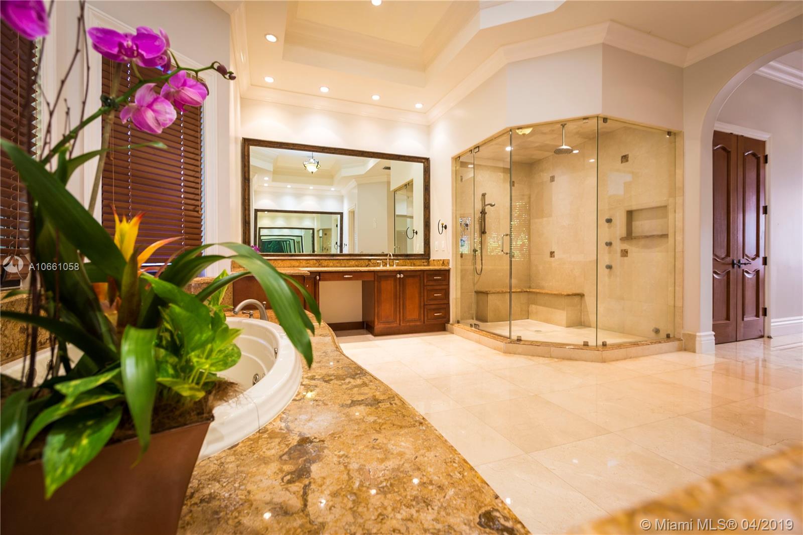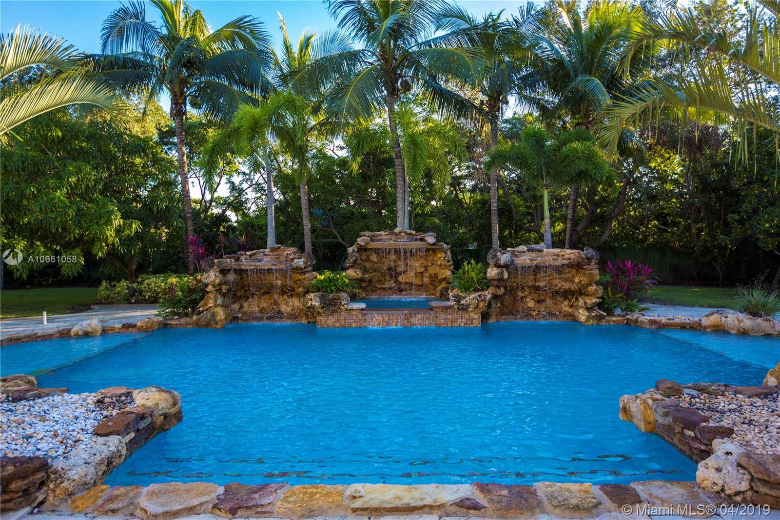 Impressive deep northern buildable acre exposure on quiet street In Pinecrest. 6-bed 8.5-bath + media/ library, Chicago brick driveway, 3 car garage and entire compound gated. Home protected by impact windows/doors, camera system, and generator. Stately foyer and living area with 25ft ceilings, grand staircase, marble & wood floors, fireplace, and an impressive chef kitchen equipt with high end appliances and gas. Oversized 1,250sqft master on first floor with steam shower/jaccuzzi spa and sitting area. Incredible outdoor entertaining boasting a heated 22x47 salt water pool, 3 waterfalls and large gazebo complete w/ summer kitchen and full bath. Take the day off and come see for yourself, THIS IS THE ONE!