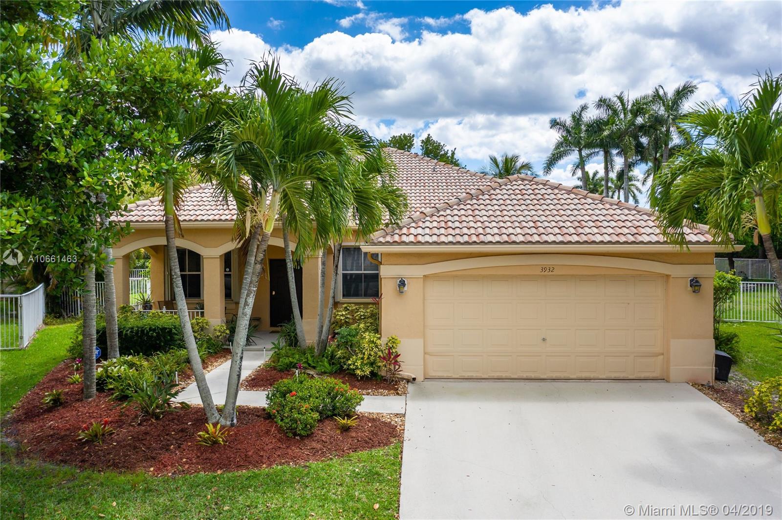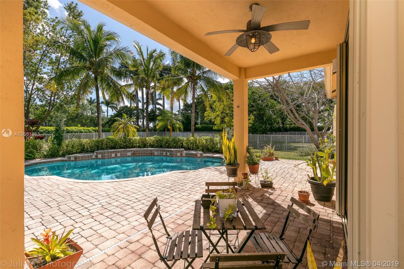 Weston-located in the Ridges. Pretty one story 4 bedroom home 2.5 bath home with a front porch and a 2 car garage. The house is sitting on a huge 14,000 sq ft. pie shaped lot with a privacy berm and no rear neighbors and is located on a quiet cul de sac street. Make the most of Florida living in your own backyard!! There is a large covered pavered patio with plenty of shady space to relax and entertain, cool off in the custom over sized pool. Just a short walk to the Ridges community playground, tot lot and resort style pool area. The interior features open space with a family room, dining room and living room. The eat in kitchen is open to the family room and has a spacious breakfast area. There are all wood cabinets and corian countertops. A+ rated schools!!