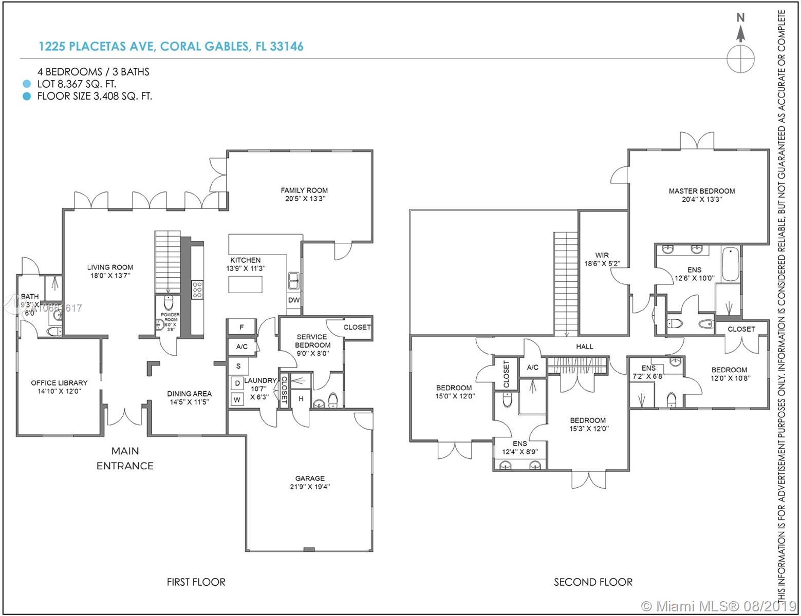Built in 2005 but feels like new. Check out this beautiful home in South Gables with high ceilings on first and second floor, impact windows and doors, lots of natural light. Large and open living spaces. As you walk in you will find the formal dining, formal living and big office with full bathroom which could easily be converted into a comfortable bedroom. Gorgeous kitchen opens to family room, laundry area and nanny's bedroom & bathroom. This home has master suite upstairs with 3 other bedrooms. High end finishes throughout. Located on a very quiet street. This is the perfect home. Very easy to show.