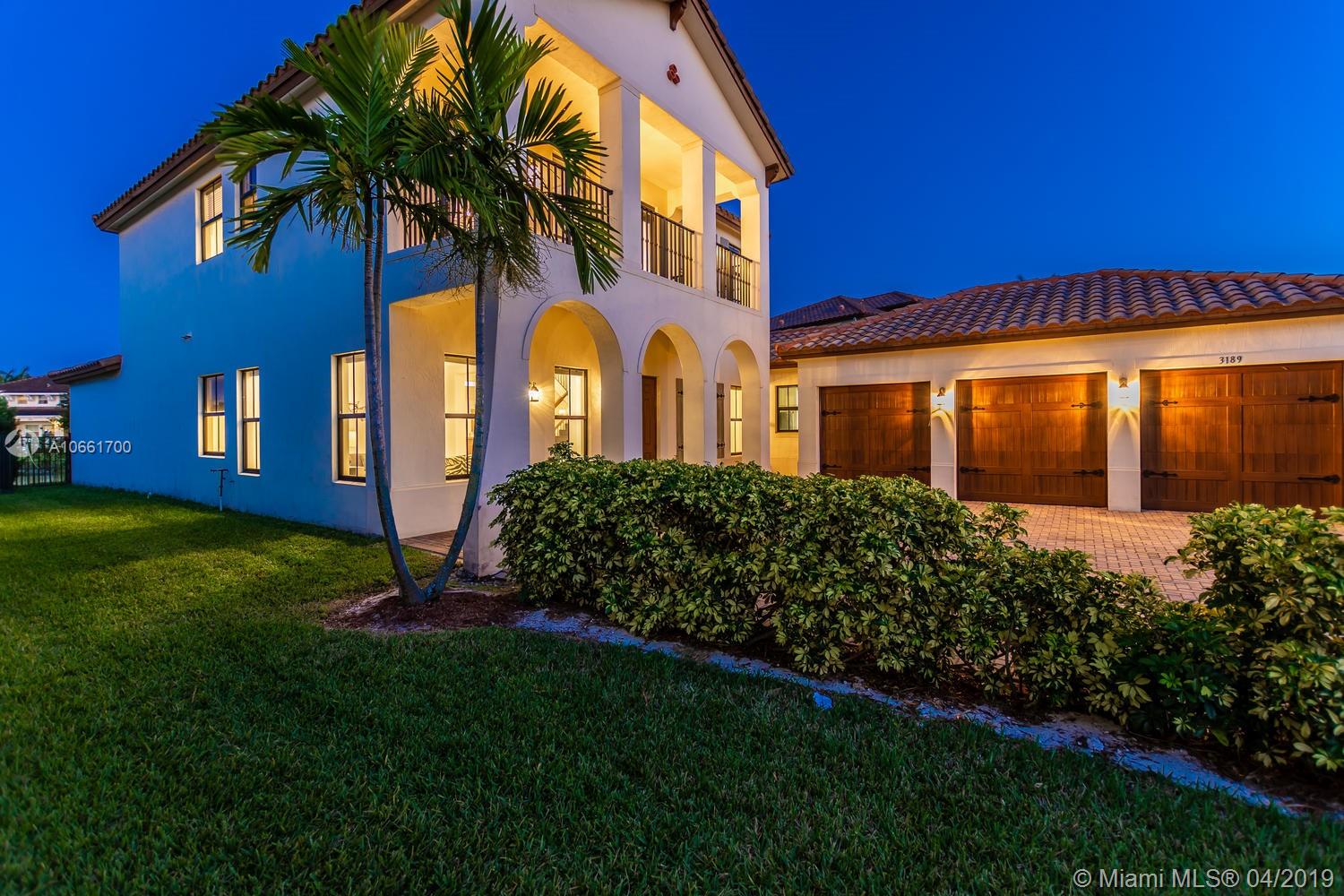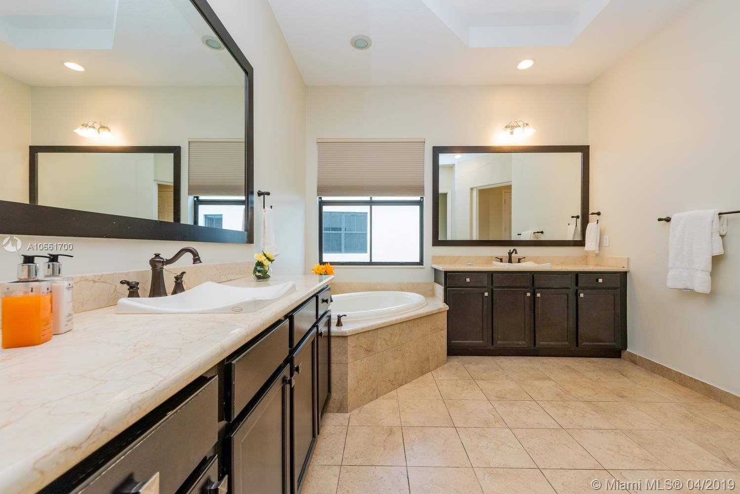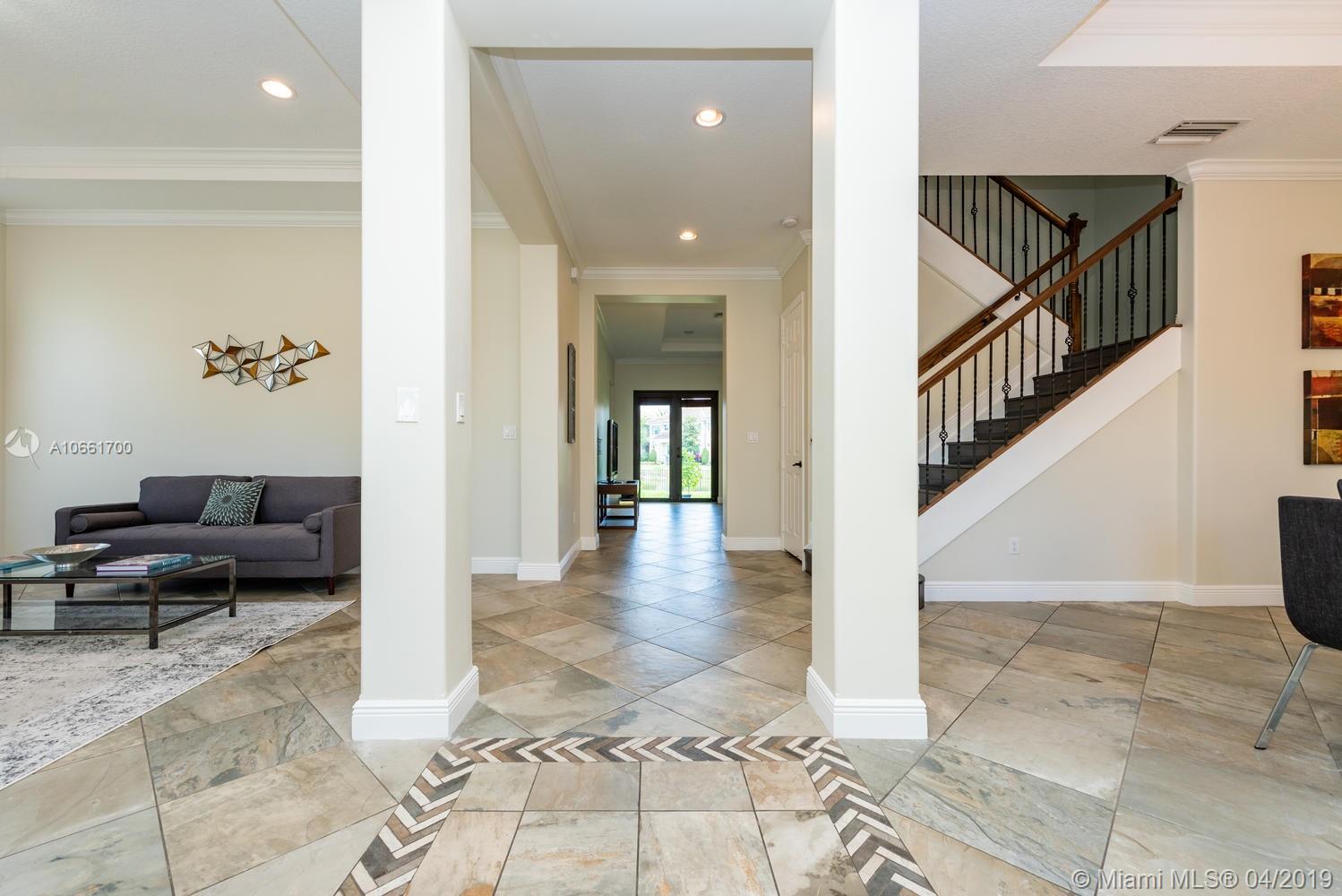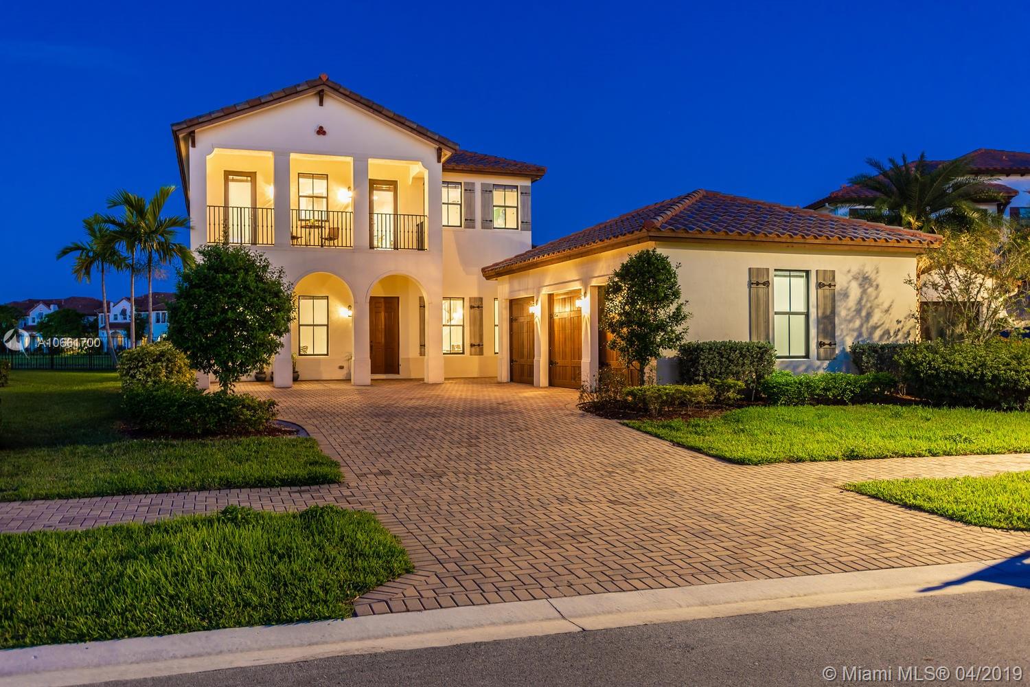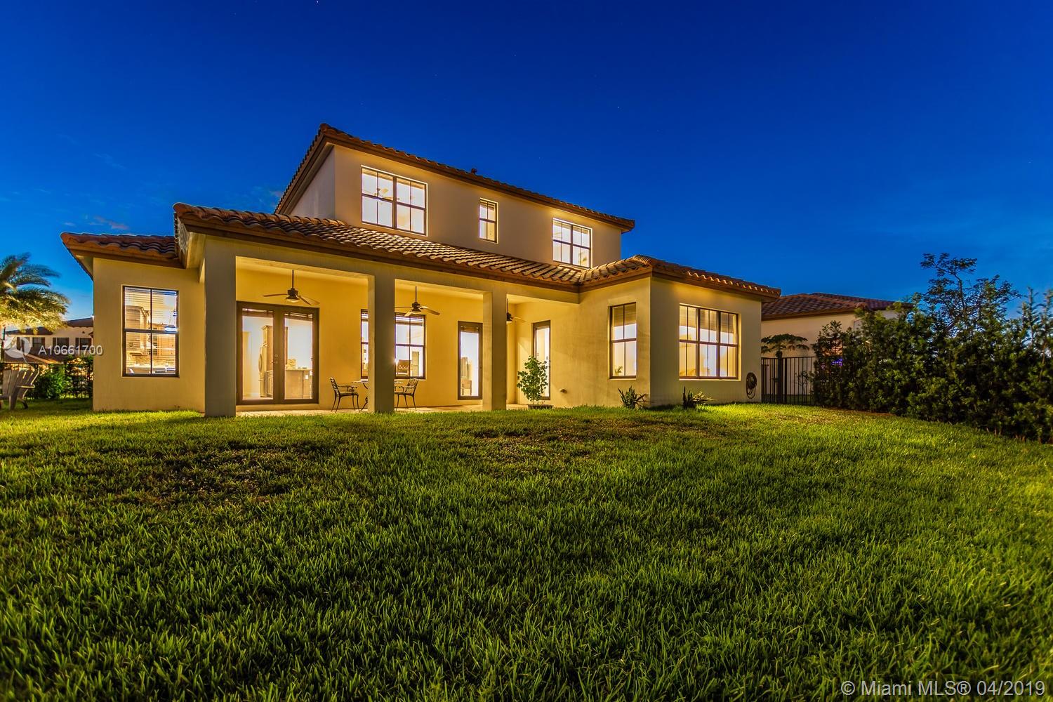 From the moment you enter the Monterra gates, you’ll breathe easy as you approach this spacious updated Grand Waterfront Estate Home. Desirable Cambria model with separate living and dining with high tray ceilings, large open-flow great room and spacious kitchen with peninsula, island, wine cooler and breakfast nook. Huge first-floor master suite retreat with double vanity, Roman tub, spacious shower and custom closets, opening onto backyard oasis with large entertainment deck and room for a pool. Great features: upstairs loft/media room with balcony, 4 upstairs bedrooms + two baths, impact glass, large laundry room, utility room with bonus refrigerator. Great amenities: clubhouse, fitness, pool, tennis, basketball & more. Convenient location near turnpike, I-95, airport, shopping.