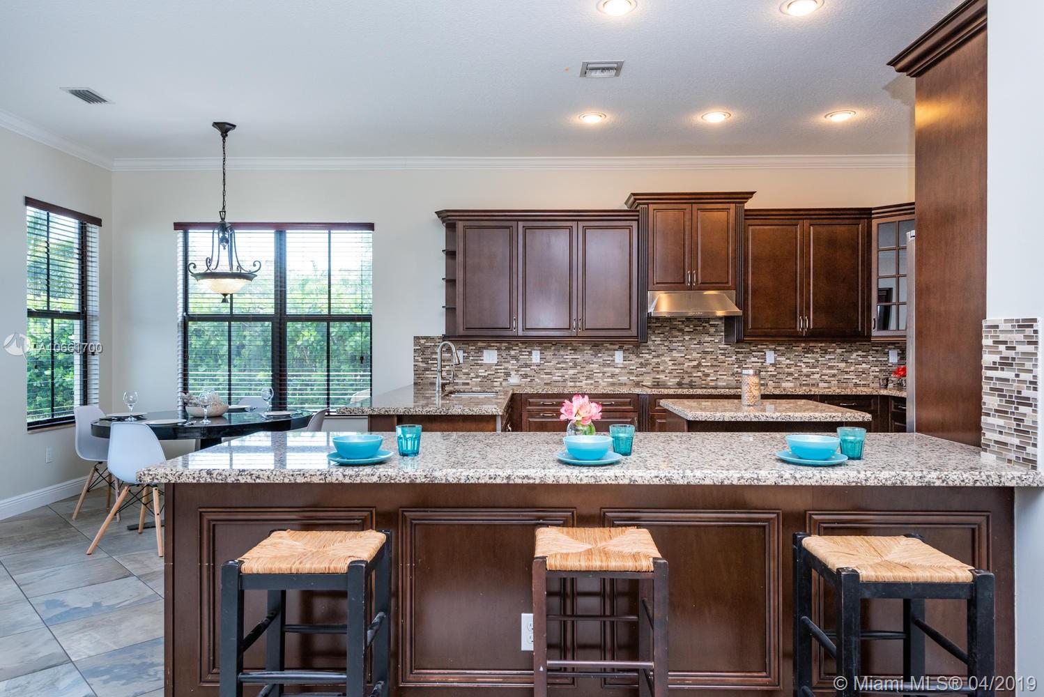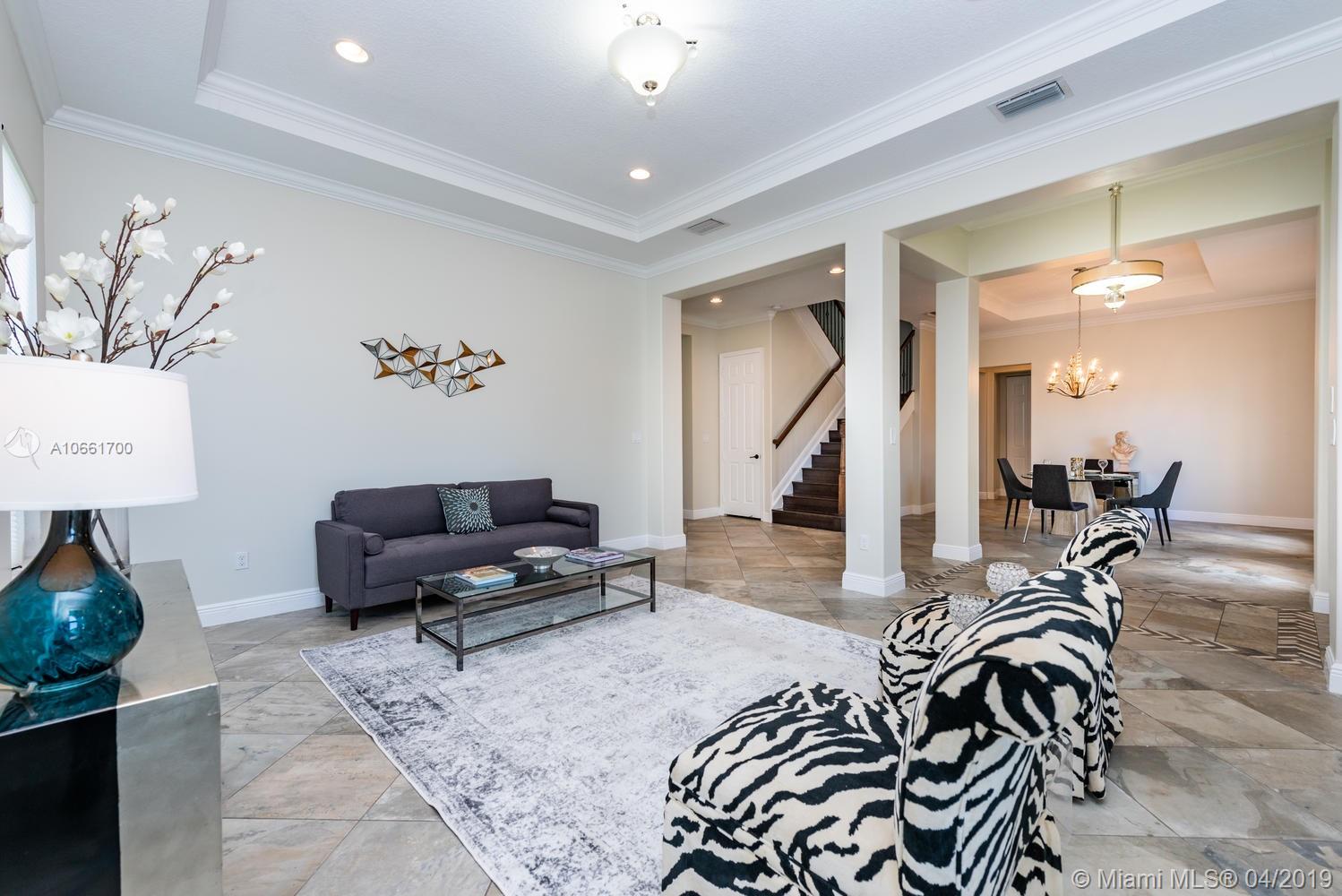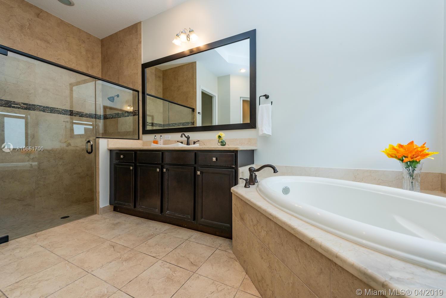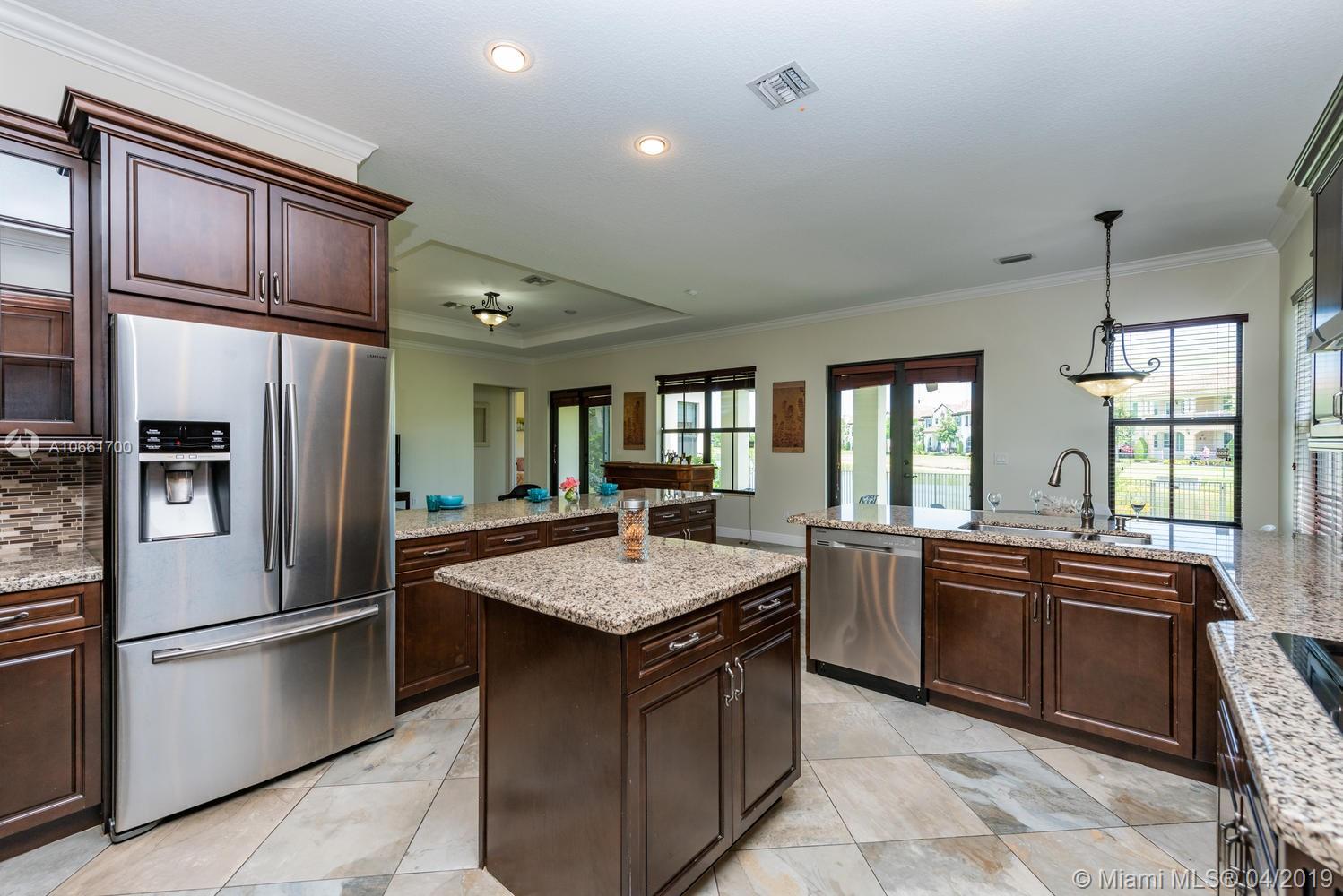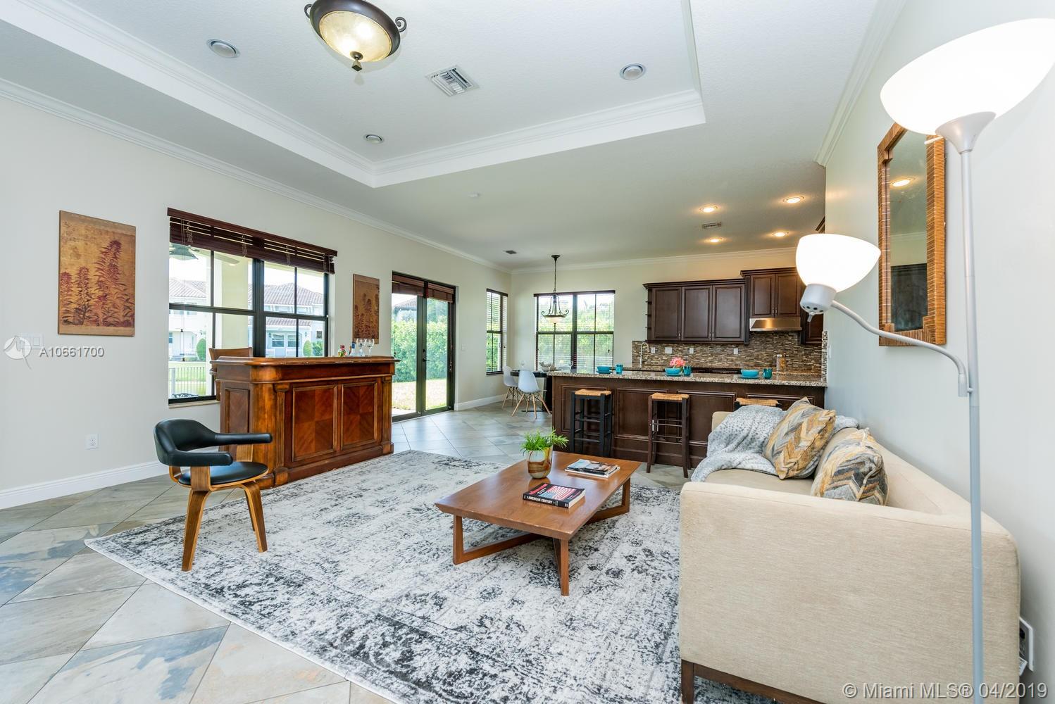 From the moment you enter the Monterra gates, you’ll breathe easy as you approach this spacious updated Grand Waterfront Estate Home. Desirable Cambria model with separate living and dining with high tray ceilings, large open-flow great room and spacious kitchen with peninsula, island, wine cooler and breakfast nook. Huge first-floor master suite retreat with double vanity, Roman tub, spacious shower and custom closets, opening onto backyard oasis with large entertainment deck and room for a pool. Great features: upstairs loft/media room with balcony, 4 upstairs bedrooms + two baths, impact glass, large laundry room, utility room with bonus refrigerator. Great amenities: clubhouse, fitness, pool, tennis, basketball & more. Convenient location near turnpike, I-95, airport, shopping.