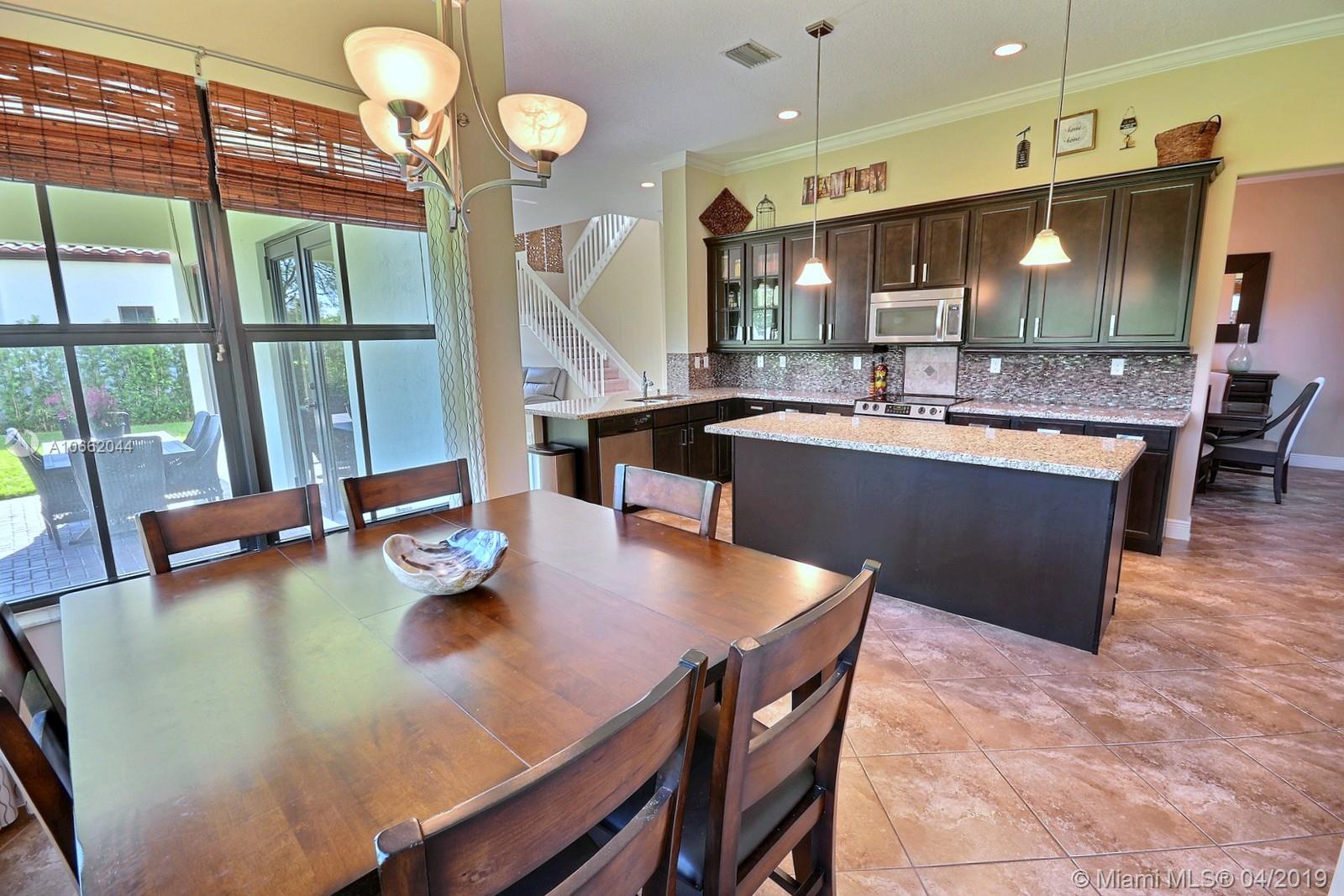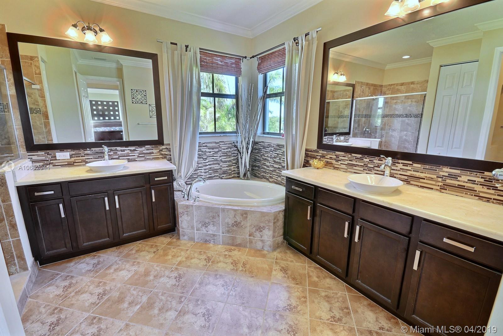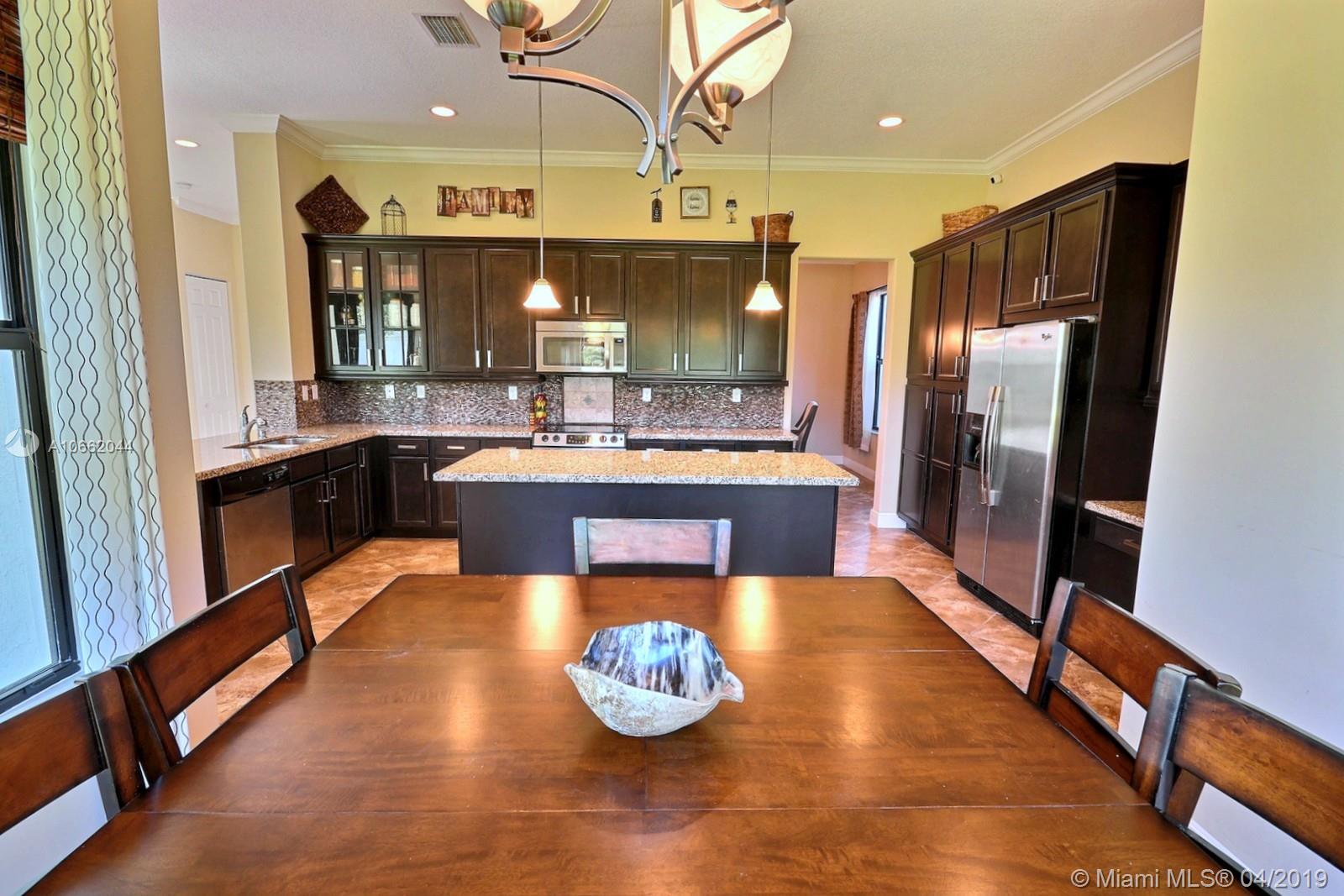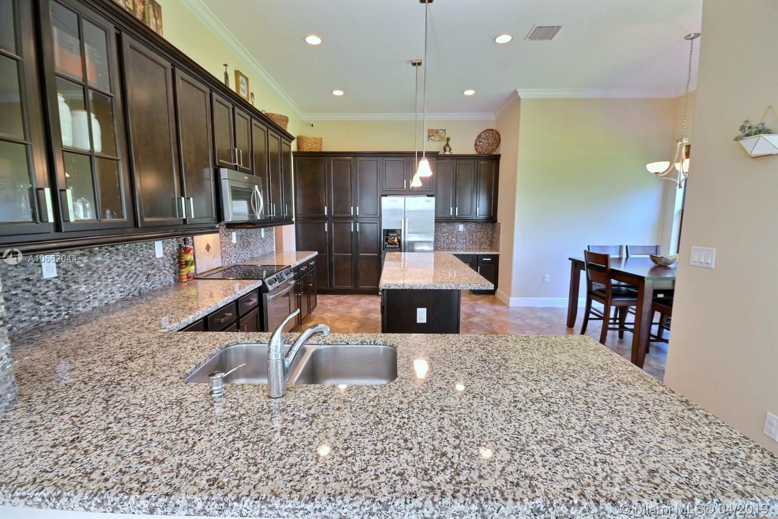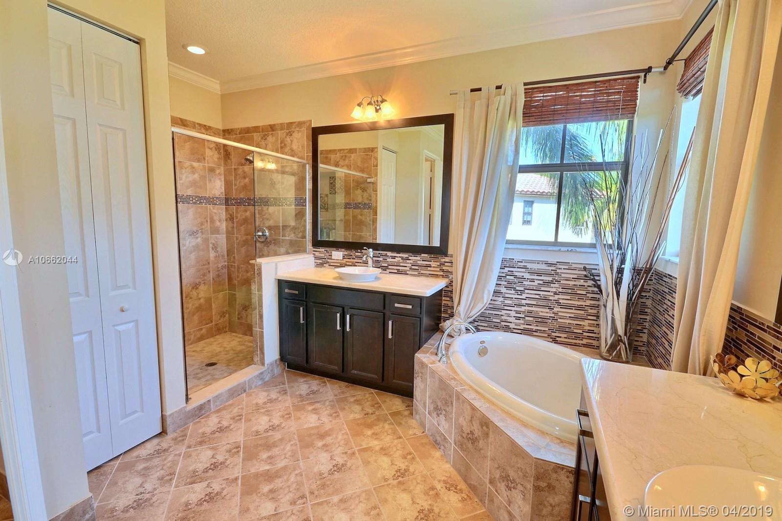 BEAUTIFUL 5 BED 4 BATH HOME IN MONTERRA FEATURES UPDATED KITCHEN WITH STAINLESS STEEL APPLIANCES, DECORATIVE BACKSPLASH & ISLAND; LIVING, FAMILY & DINING ROOMS, GREAT FLOOR PLAN W BEDROOM ON MAIN LEVEL. MASTER & 3 BEDS ON SECOND FLOOR. SPACIOUS MASTER SUITE W WALK-IN CLOSET, MASTER BATH W DOUBLE SINKS, SOAKER TUB & FRAMELESS SHOWER. DIAGONAL TILE & NEW CARPET, ELEGANT FIXTURES, CROWN MOLDING, FRESHLY PAINTED OUTSIDE & HURRICANE IMPACT WINDOWS ON BOTH FLOORS. PREMIUM LOT AT 8,353 SQ FEET, ZONED FOR EMBASSY CREEK ELEMENTARY. RESORT-LIKE AMENITIES INCLUDE SECURITY, MANNED GATE, AMAZING POOL, TENNIS & BASKETBALL COURTS, GYM & DOG PARK.