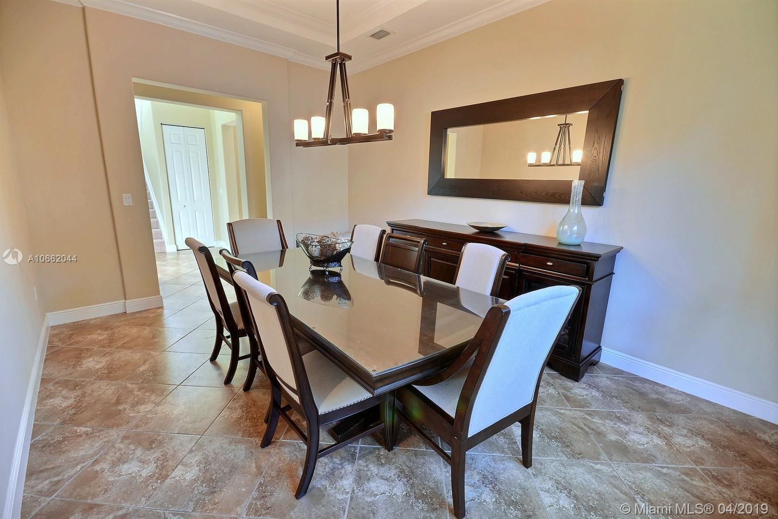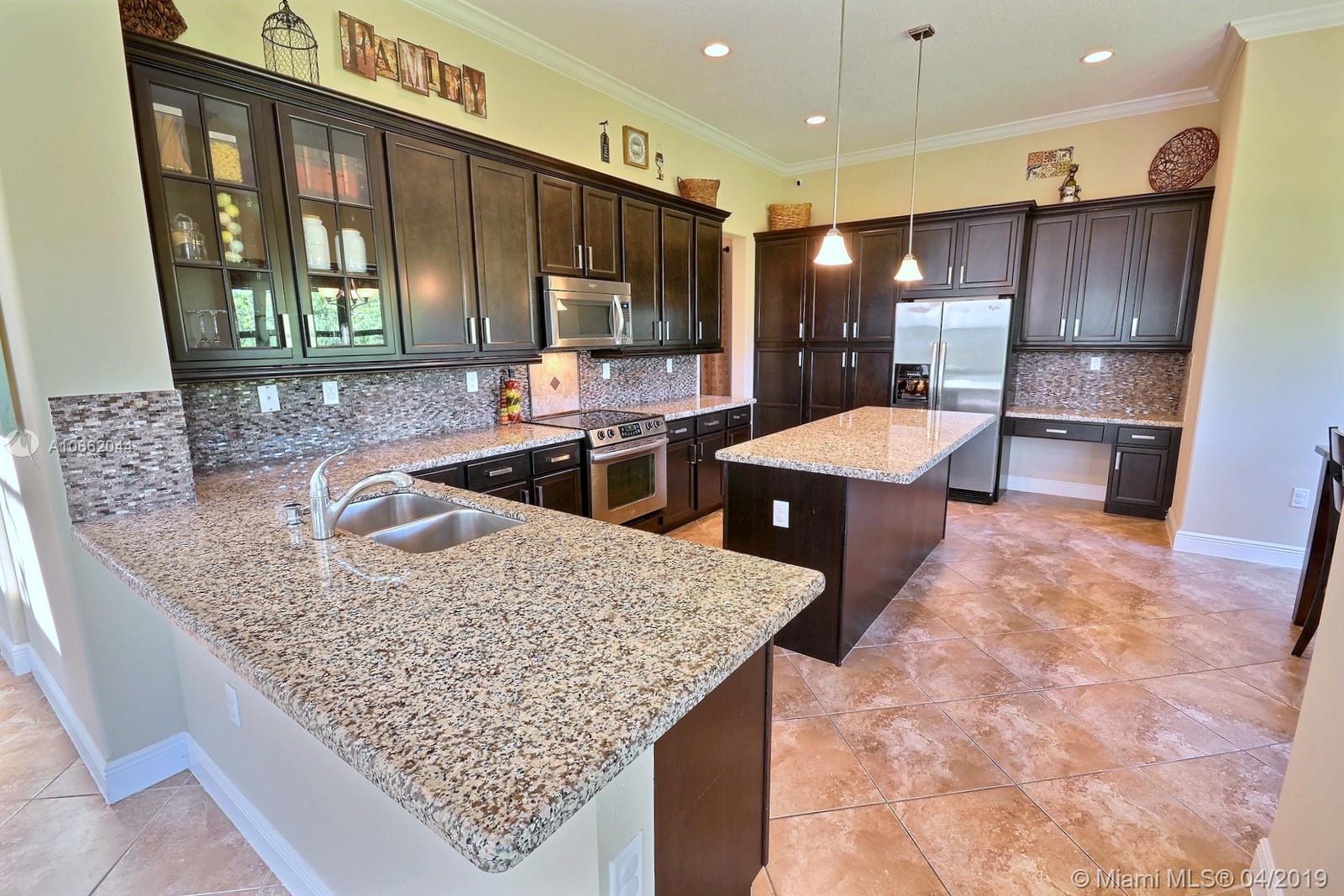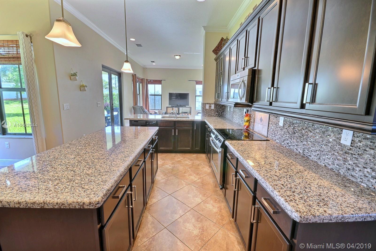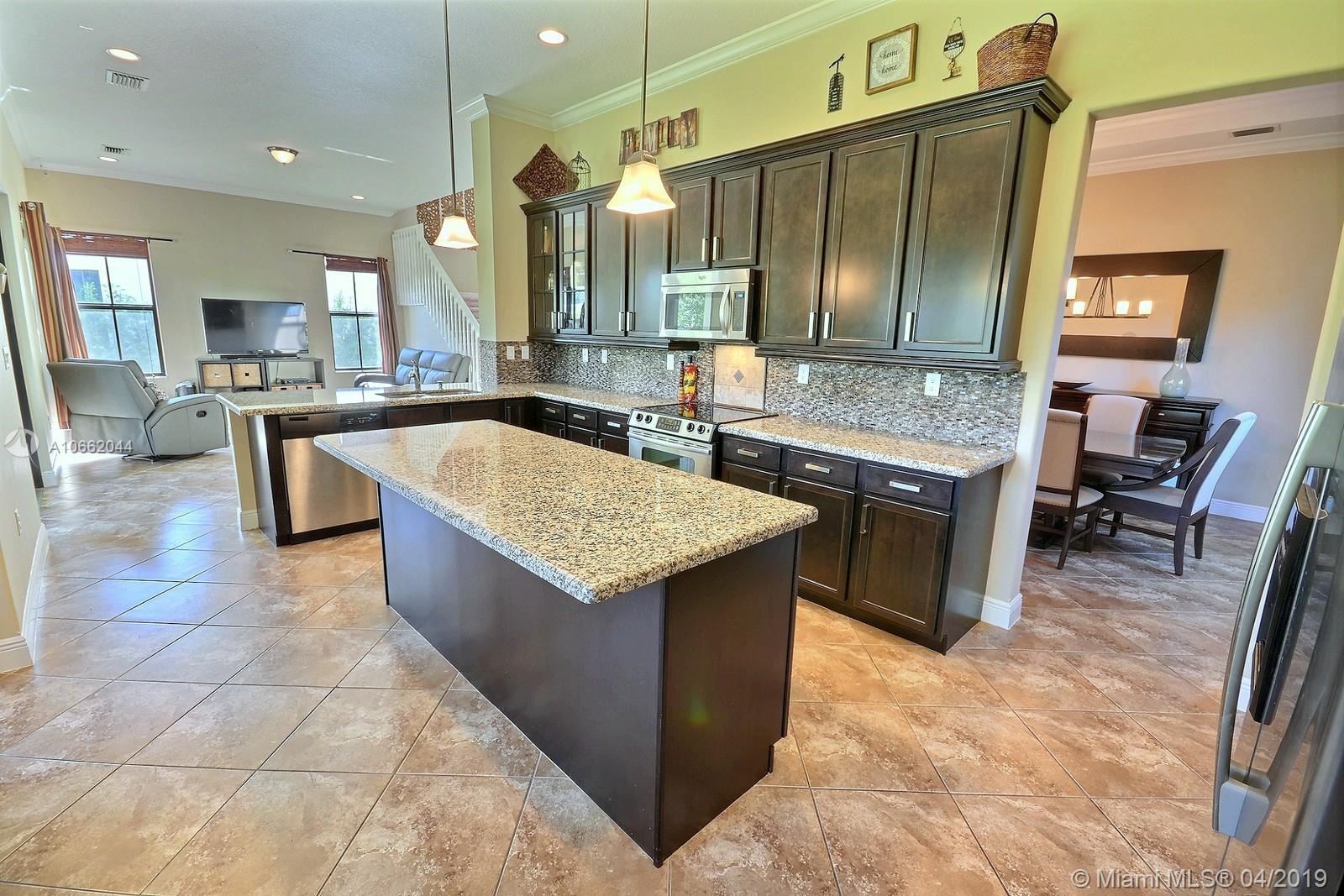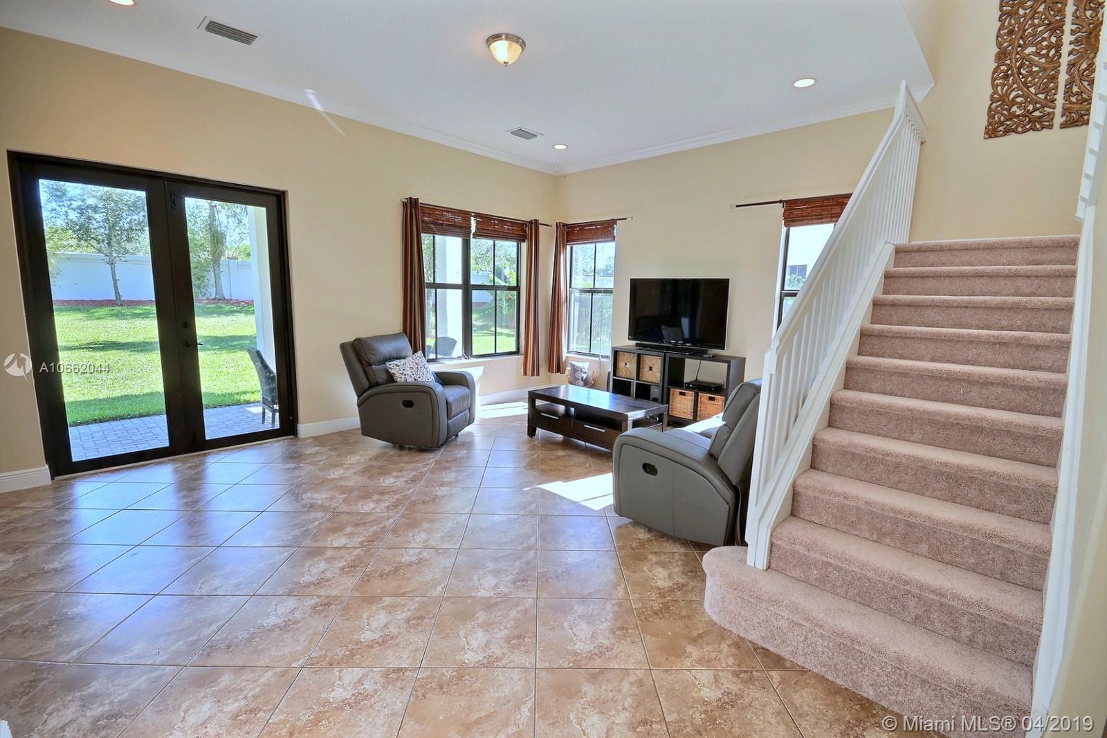 BEAUTIFUL 5 BED 4 BATH HOME IN MONTERRA FEATURES UPDATED KITCHEN WITH STAINLESS STEEL APPLIANCES, DECORATIVE BACKSPLASH & ISLAND; LIVING, FAMILY & DINING ROOMS, GREAT FLOOR PLAN W BEDROOM ON MAIN LEVEL. MASTER & 3 BEDS ON SECOND FLOOR. SPACIOUS MASTER SUITE W WALK-IN CLOSET, MASTER BATH W DOUBLE SINKS, SOAKER TUB & FRAMELESS SHOWER. DIAGONAL TILE & NEW CARPET, ELEGANT FIXTURES, CROWN MOLDING, FRESHLY PAINTED OUTSIDE & HURRICANE IMPACT WINDOWS ON BOTH FLOORS. PREMIUM LOT AT 8,353 SQ FEET, ZONED FOR EMBASSY CREEK ELEMENTARY. RESORT-LIKE AMENITIES INCLUDE SECURITY, MANNED GATE, AMAZING POOL, TENNIS & BASKETBALL COURTS, GYM & DOG PARK.