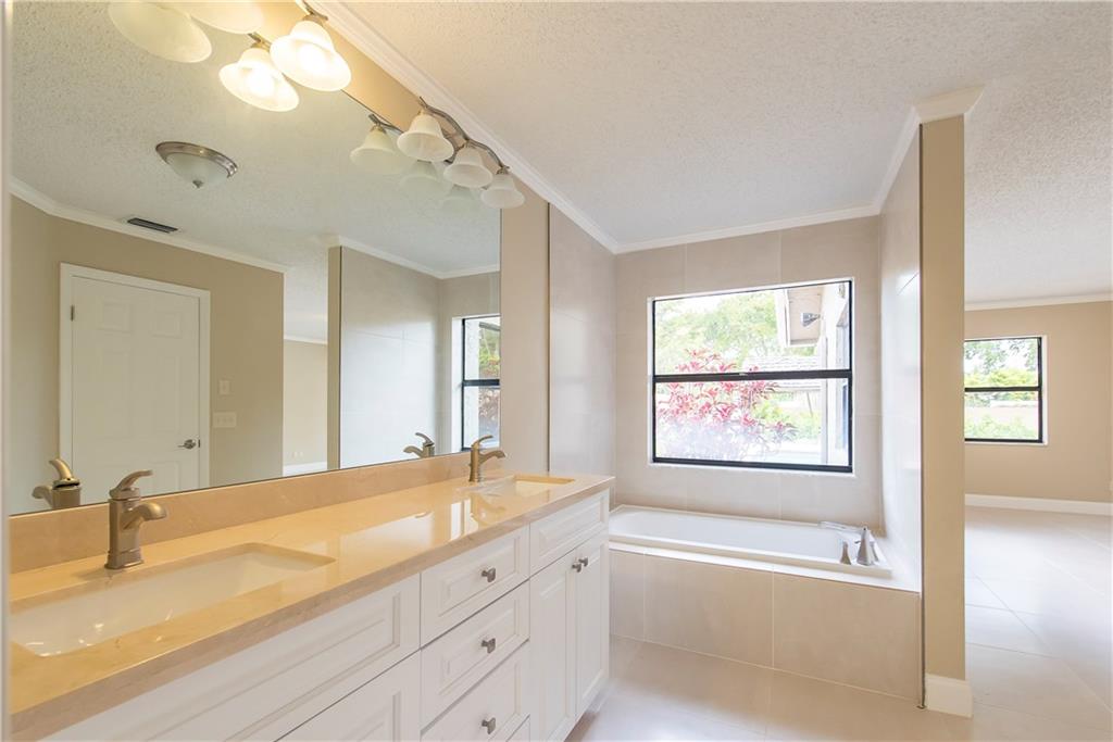 WOW!!!THIS HOME IS ESSENTIALLY NEW! COMPLETELTY RENOVATED INCLUDING A BRAND NEW BARREL TILE ROOF!!! LOVELY NEW KITCHEN* LIGHT AND BRIGHT! BRAND NEW BEAUTIFUL PORCELAIN FLOORS THROUGHOUT* COMPLETELY UPDATED BATHROOMS! NEW PAINT* VAULTED CEILINGS* I CAN GO ON AND ON!!!! IN CULDESAC *4 BEDROOMS PLUS A SEPARATE DEN WHICH COULD BE A 5TH BEDROOM...3 FULL BATHROOMS* PRIVATE LOT WITH LOVELY POOL AND OUTDOOR TIKI TYPE HUT* RARELY AVAILABLE LAGO MAR HOME* PRIVATE GOLF CLUB COMMUNITY WITH 24 HOUR MANNED GATE HOUSE