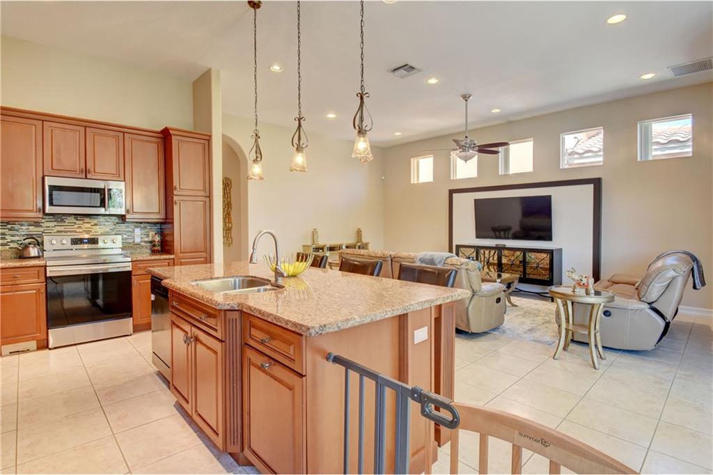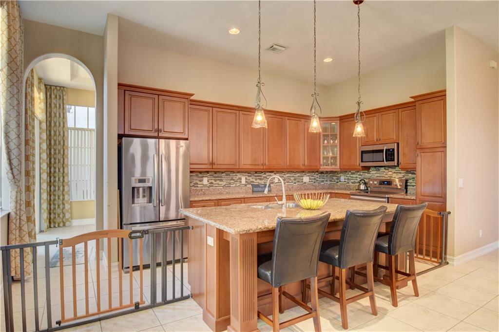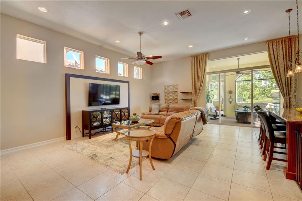 Move-In Ready 4 Bedroom, 3 Bathroom Myakka Model On Fenced-In Waterfront Lot w/Room For Pool! Accordion Shutters, Upgraded Baths, Tile Floor Throughout Living Areas, Laminate Flooring In All Bedrooms. Open Family Room w/Lots of Natural Light & High Ceilings, Wood Kitchen w/Granite Countertops, Stainless Steel Appliances, Tile Backsplash, Countertop Seating. Formal Dinning Room Tucked Away Perfect For Kids Play Area or Home Office As Well. Master Suite w/His & Hers Walk-In Closets, Dual Vanity Sinks, Tub & Glass Shower. Screened-In Patio Includes Entrance to 4th Bedroom & Cabana Bath - Perfect For In-Laws/Privacy. Waterfront View, Extended Pavers, Yard For Kids & Pets w/Room To Build A Pool. Enjoy Guard Gated Community, Resort Style Clubhouse Amenities & A-Rated Schools!