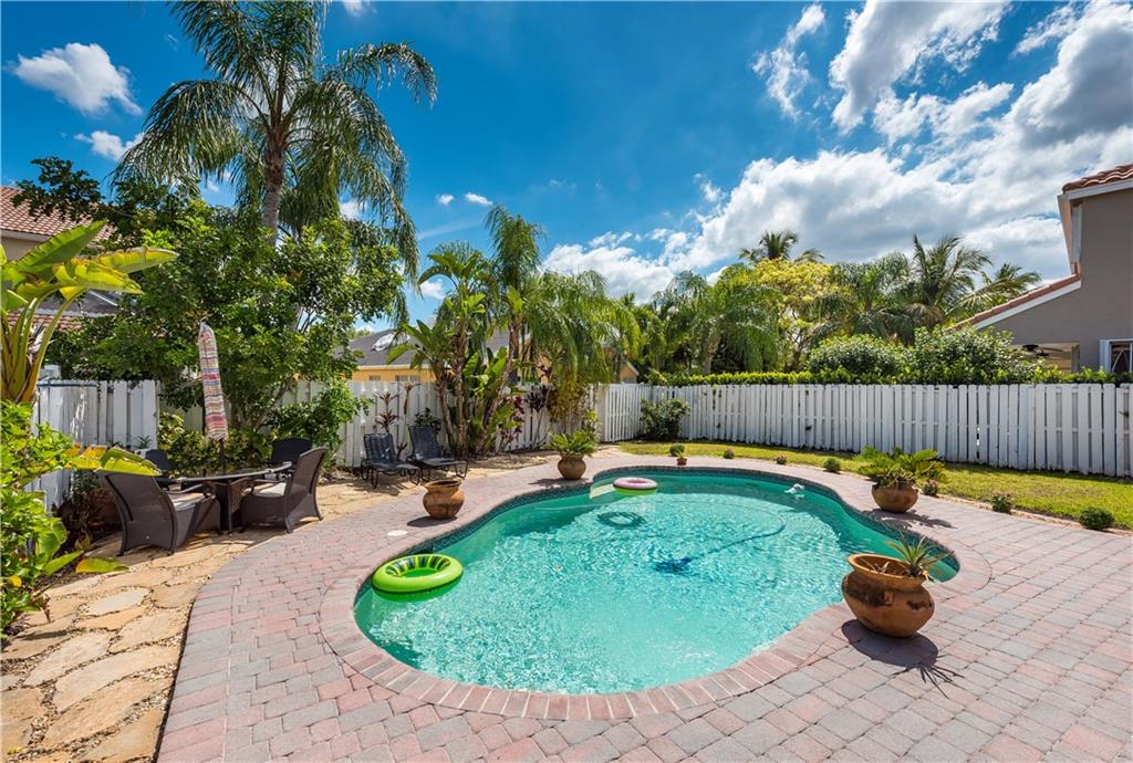 Brand New Barrel Tile Roof less than 9 months old. This home has a tropical paradise vibe that has been meticulous cared for and well upgraded. Step in backyard to a spacious screened in patio perfect for entertaining & bbqs. As you enter the pool area along the brick pavers you are surrounded by lush landscaping, privacy fence, sitting areas, green grass, and a custom pool that has several seating areas for taking it all in. The interior of the home was remodeled in Kitchen with granite tops & wood cabinetry. Modern floors were recently added as well as interior paint. Master and Kitchen showcase plantation shutters for the extra touch. California closets in all bedrooms, Pool motor less than 2 years old, Washer/dryer new, AC less than 5 years. A+schools. Walk to elementary & parks.