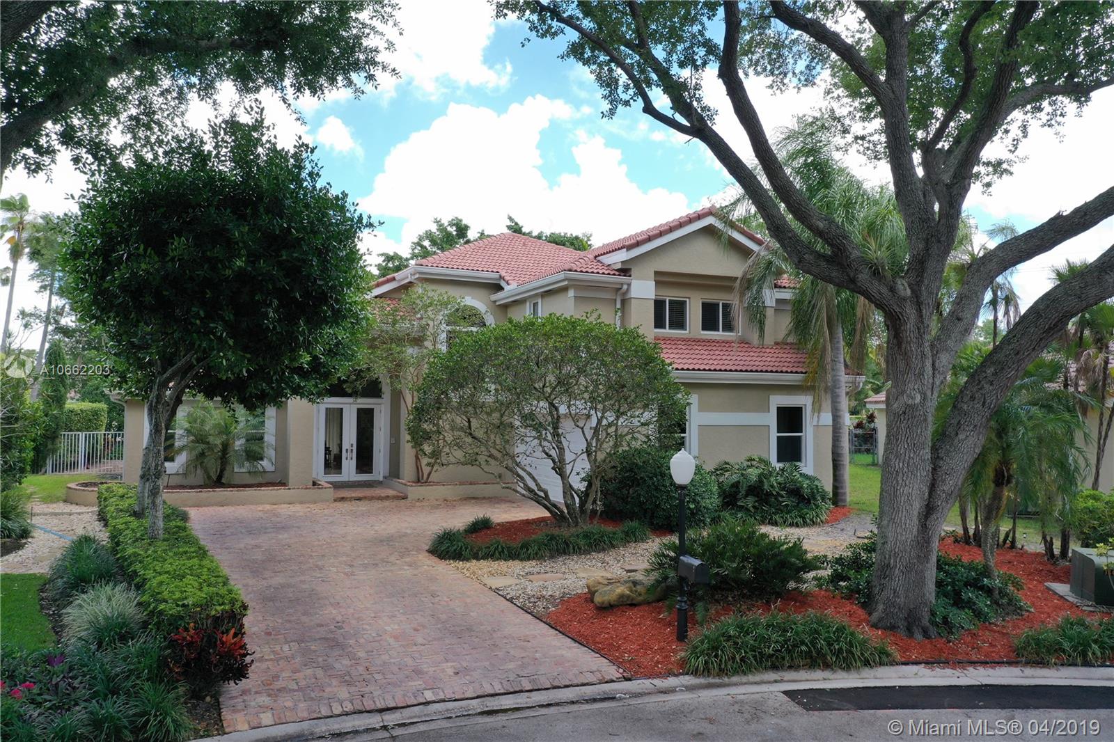 Mediterranean pool style home, remodeled and with several Smart Home features. Located at cul-de-sac inside gated, East Landing - Rock Creek. Unique and open layout. 5 bedrooms + office, Tons of storage, 2nd Master suite downstairs, Hurricane impact windows, travertine floors, granite countertops. Master suite with adjacent office, plus 3 more bedrooms upstairs. Huge back yard and an outside kitchen. Rated A schools. This home is a must see.