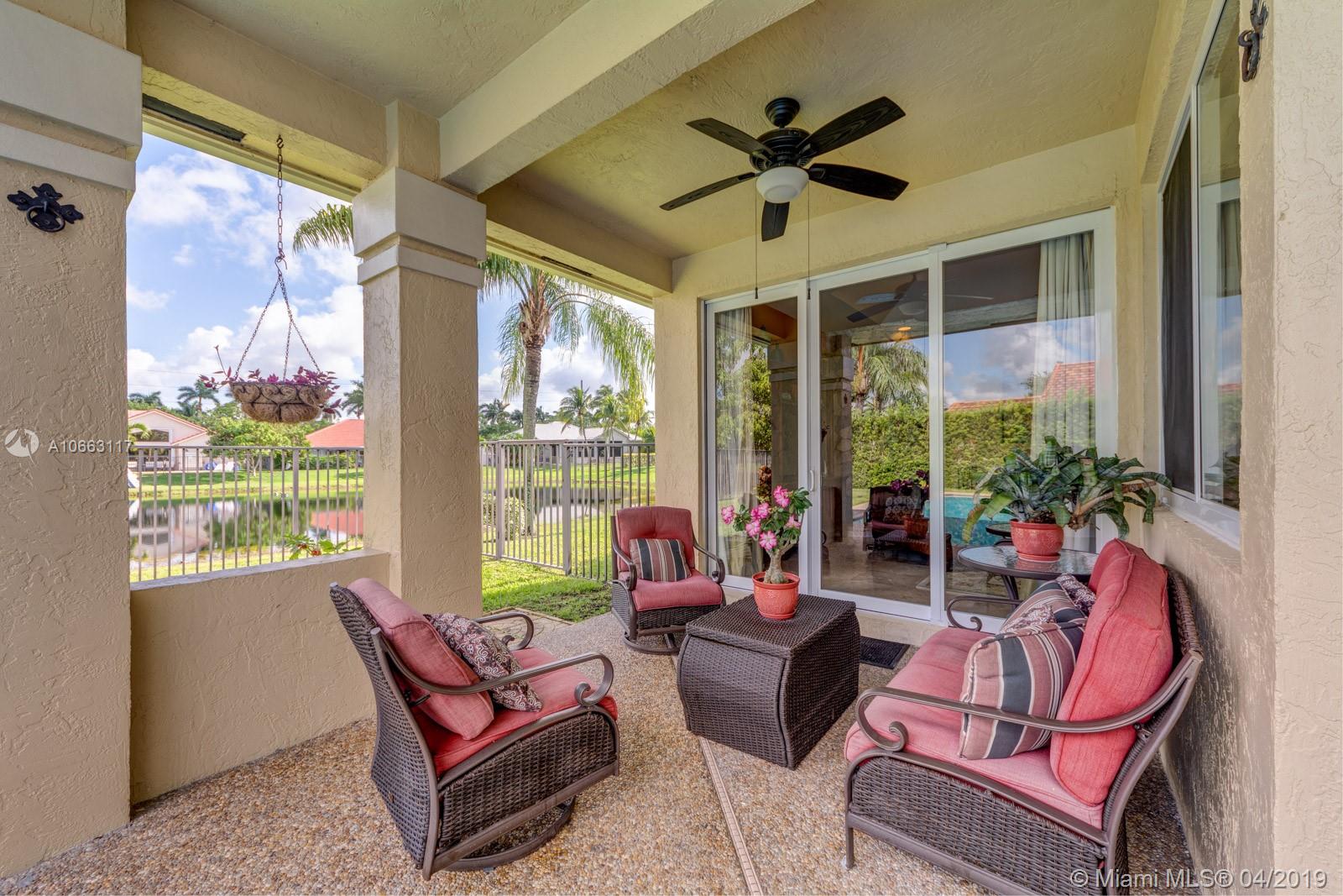 Masterfully renovated lakefront home in a gated community in Weston. This property sits on a private cul-de-sac lot and boasts 4 bedrooms, 3 full and 1 half bath plus a study with over 3,600 sq ft. f living space. Formal dining area and living room with double-volume ceilings, large family room with cozy fireplace and gourmet kitchen with casual dining area and breakfast bar. Kitchen features include custom 42" cherrywood Thomasville cabinets, granite countertops, and stainless steel appliances. Master bedroom located on the second floor with en-suite luxury bath with dual sinks, frameless shower & whirlpool soaking tub. All living areas have high impact windows and doors and all social areas have marble flooring. Additional features include a pool and covered patio. A+ Schools.