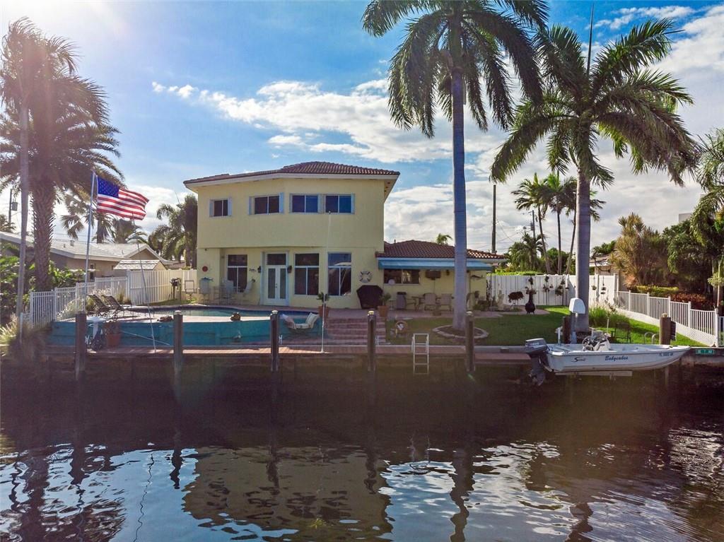 THIS IS TRUE FLORIDA LIVING! LOCATED ON A CUL SE SAC, ON A CANAL WITH A PRIVATE DOCK FACING EAST. THE LOT IS THE SECOND FROM INTERSECTING CANALS. THIS IS A BOATER'S DREAM AREA WITH ONLY ONE FIXED BRIDGE (WHICH IS THE FEDERAL HIGHWAY BRIDGE). THIS TWO STORY HOME HAS PLENTY OF SPACE TO ENTERTAIN INSIDE AND OUTSIDE. IT HAS AN OPEN CONCEPT FLOOR PLAN WITH A PRIVATE UPSTAIRS MASTER SUITE AND OVERSIZED MASTER BATH WITH WHIRLPOOL TUB AND LARGE OPEN SHOWER WITH SEPARATE DUAL VANITIES. TWO BEDROOMS DOWNSTAIRS EACH HAVE THEIR OWN BATHROOM. KITCHEN HAS NATURAL GAS STOVETOP, GRANITE COUNTERS AND WOOD CABINETS. ONE BEDROOM HAS MURPHY BED AND WALL UNIT. THERE IS A HALF BATH FOR YOUR GUESTS. HOUSE HAS BEAUTIFUL CURVE APPEAL. YOU DON'T WANT TO MISS THIS ONE!