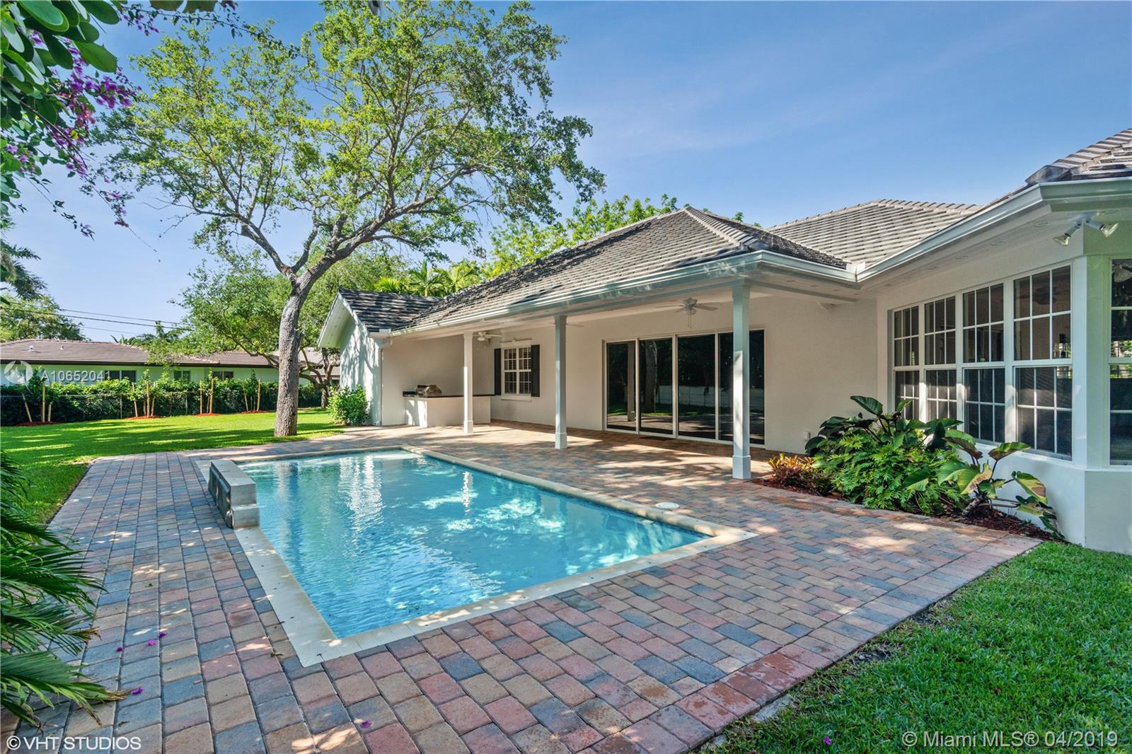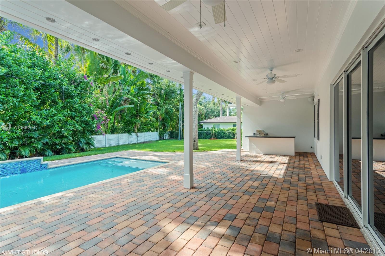 Beautiful 2017 custom home in coveted N. Pinecrest. This 4 bedroom/3.5 bath home features open floor plan, Gourmet Chef's Kitchen with quartz counters and stainless steel appliances. Large hurricane impact windows throughout lets in plenty of natural light. Spacious Master Bedroom with lavish bath. Abundance of walk-in closets and storage throughout. Located on quiet street, the layout is great for family living and entertaining. Huge covered patio with built-in grill over looks the sparkling pool and expansive yard (25,439 sf lot) with children's playground. Close to the best schools, and walking distance to Pinecrest Elementary, Pinecrest Community Park and farmer's market.