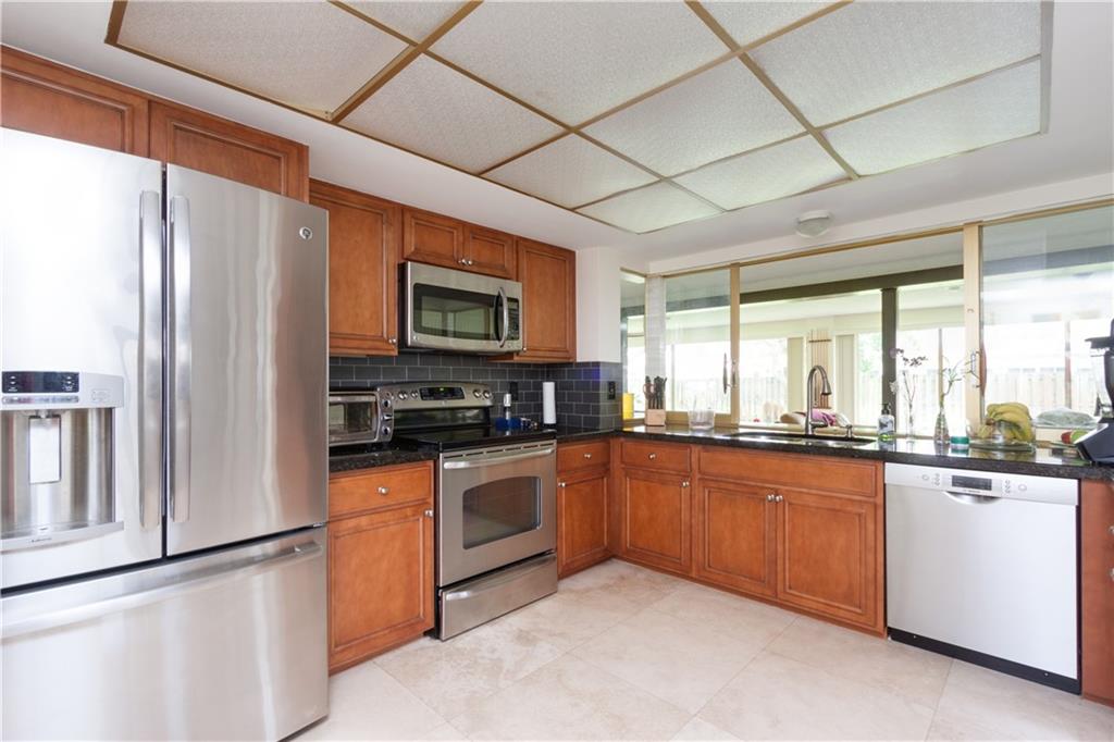 HUGE home, PRICE IMPROVED--get more bang for the buck!. 24x24 Travertine flooring in all rooms! Kitchen updated with wood cabinets, granite countertop, top-of-the-line stainless steel appliances, and pass through to game room. Upgraded baths with granite top vanities! Family room plus game room big enough for pool table and then some (appox. 800 sq feet)! Also has built in barbeque and its own separate new style a/c unit! A perfect spot to entertain. Wood fence! Hurricane shutters--no hurricane worries here! Walk to Plantation Park Elementary school! A super neighborhood in which to live!