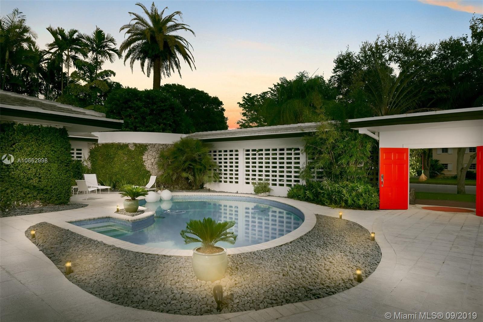 MID CENTURY MODERN 4 BD 5.5 BTH. FEATURED IN ELLE DÉCOR FOR ITS CLEAN ARCHITECTUAL LINES & INTEGRATION WITH NATURE, MOST INTERIOR ROOMS HAVE VIEWS & ACCESS TO COURTYARD BRINGING THE OUTDOORS IN. DOUBLE SIZED LIV RM & DIN RM FOR GRACIOUS ENTERTAINING. BIG EAT-IN KITCHEN WITH CATERING KITCHEN AND NEW APPLIANCES. ALL BEDROOMS WITH ENSUITE BATHS. 2 CAR GARAGE, POOL AREA HAS 2 CHANGING ROOMS & FULL BATH + COVERED ENTERTAINING AREA. ROSEWOOD FLOORS, NEWER ROOF, IMPACT WINDOWS, ALARM SYSTEM. TRUE SOUTH FLORDIA LIVING WITH A PALM SPRINGS AESTHETIC. ARCHITECT IS MARCUS J. PINSKER.