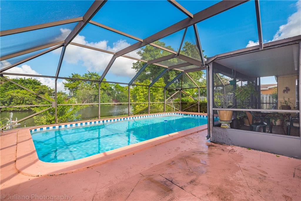 Centrally located Sunrise single family home. Large screened in pool and adjacent waterway.Enjoy the beautiful view especially at sunset. Sprinkler irrigation system, accordian and other hurricane shutters.Fenced yard. Security outside lights, security system throughout home.
