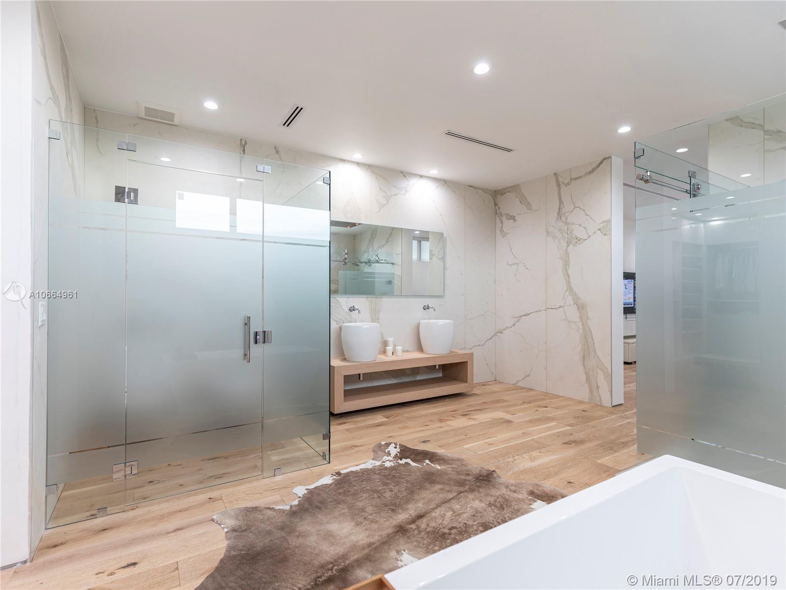 Situated in one of Coral Gables most privileged locations, this ultra-modern home is designed by Calil Architects, Coral Gables premier modern home architects. Comprised of 3 levels & feat. stunning Biscay Bay views from its unique 800 sq ft. approved rooftop loft. This home is equipped with floor-to-ceiling impact sliding doors that span across the width of the house. High ceilings, white glass floors, impact windows & doors, glass elevator, heated pool, full gourmet kitchens, entertainment area with fire pit, 80x13.5 ft dock with space for a 100 ft boat complete this modern residence. Roof loft is being enclosed by 1 inch glass railings. Sq ft includes possible bonus room, ideal for guest/maids quarters with added game room (1,200 sq ft). Home is scheduled to be completed in 2019.