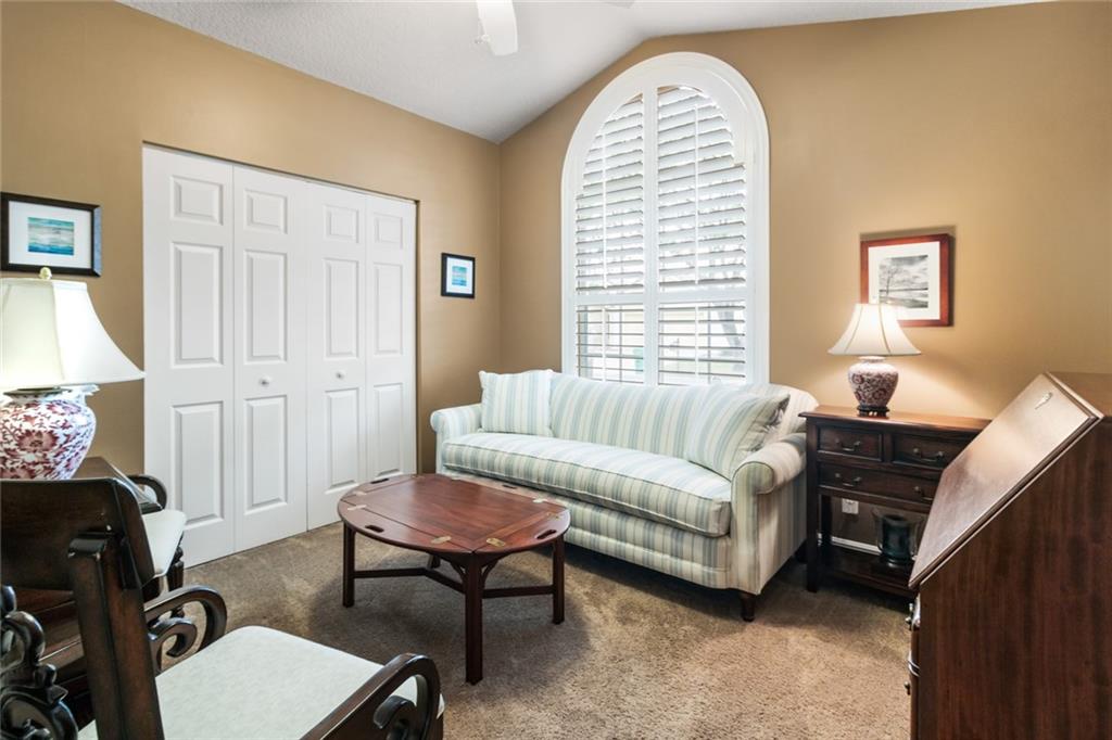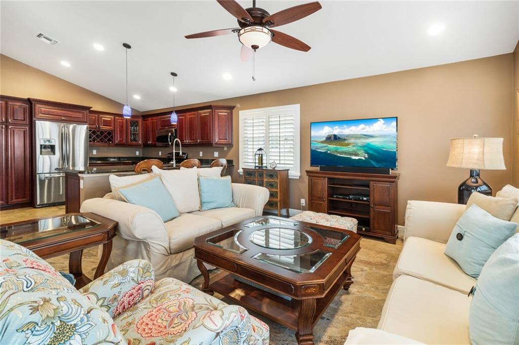 HIGHLY DESIRABLE LINKS PUBLIC GOLF COMMUNITY OF EAGLE TRACE! UPDATED AND UPGRADED HOME FEATURES VAULTED CEILINGS, 2012 ROOF, NEWER KITCHEN & STAINLESS STEEL APPLIANCES,NEWER MASTER BATH & GUEST BATHROOM, NEWER OUT SIDE LIGHTING & LANDSCAPING TO ENHANCE THE PRIVACY, SPLIT PLAN WITH HIGH CEILINGS. ALL OPEN & AIRY ON AN OVER-SIZED CORNER LOT. TILE THROUGHOUT MAIN AREAS OF HOME. PRIVATE PORCH & VERY LARGE LAUNDRY ROOM. FORMAL DINING ROOM W/SEPARATE FAMILY ROOM. THE COMMUNITY FEATURES 3 MAN GATED 24 HOUR SECURITY ALONG W/COMMUNITY POOL & CLUB HOUSE, & TENNIS AND KIDS PLAY GROUND ARE A PART OF THE EAGLE TRACE. ENJOY THIS MAINTAINED COMMUNITY INSIDE EAGLE TRACE.EXCLUDE WASHER & DRYER AND FRONT HALL AND DINING ROOM CHANDELIER.