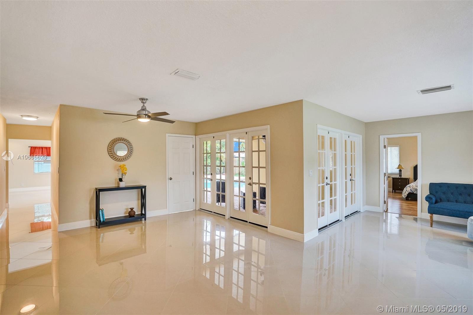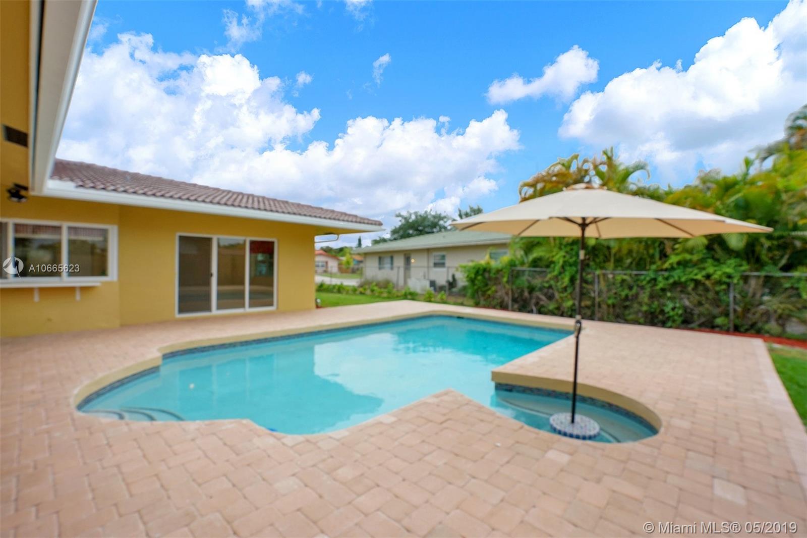 This stunning pool home will delight you! Brand new renovation. As you approach the driveway you know you are home. Open floor plan with lots of natural light. House features brand new flooring, large porcelain tiles in main areas and hard wood flooring in the bedrooms. Kitchen features brand new kitchen cabinets with soft close, new S/S Appliances, quartz counter tops and deep sink. Brand new hurricane impact windows thru out. new french doors, renovated pool etc. This home sits on a large fenced corner lot on a cul de sac. Entertaining is a breeze with easy access to the pool area and pass thru window to patio from kitchen. No HOA. Great schools! Forest Hills Elementary is within walking distance. Home is approved for FHA, Conventional and VA loans but not limited to same