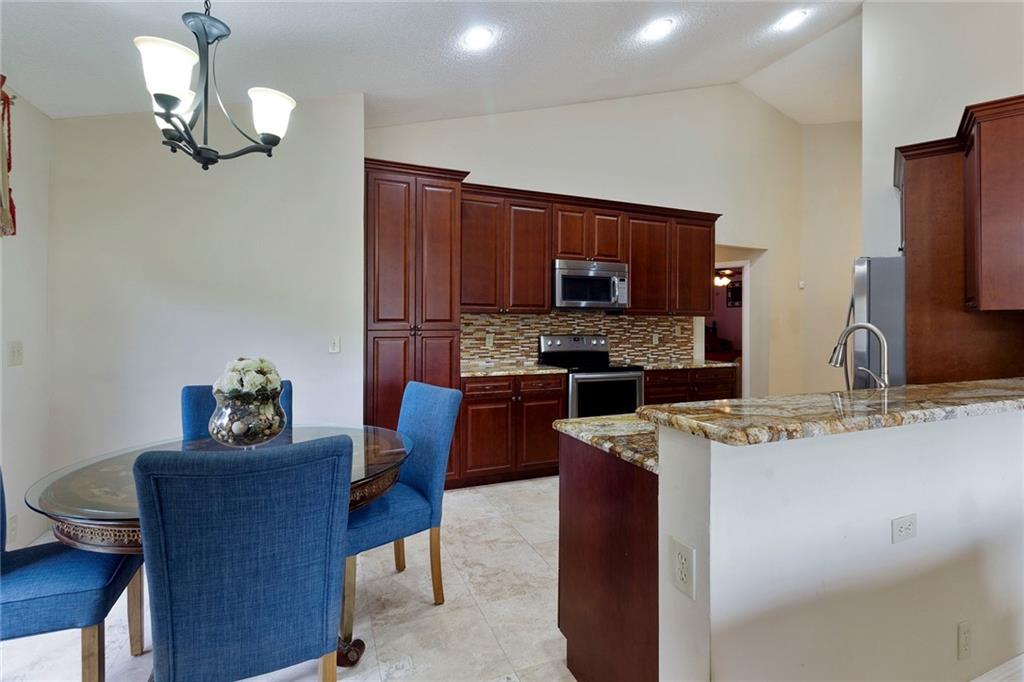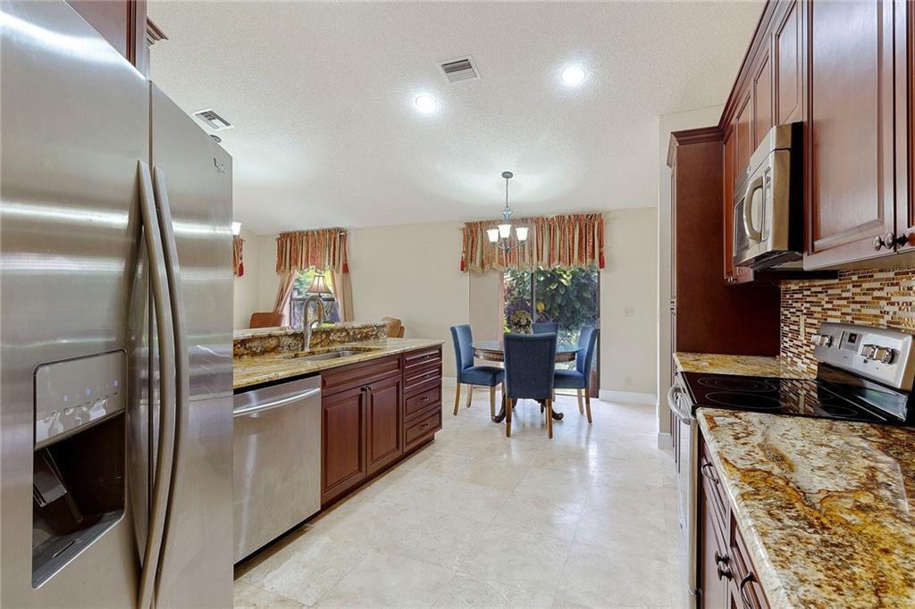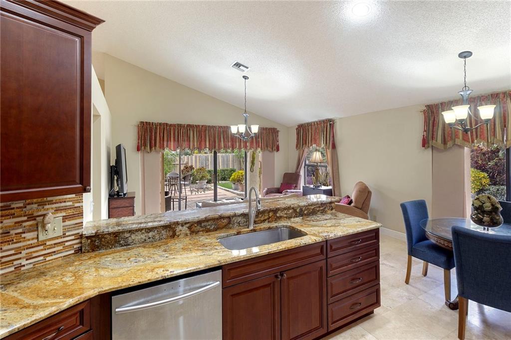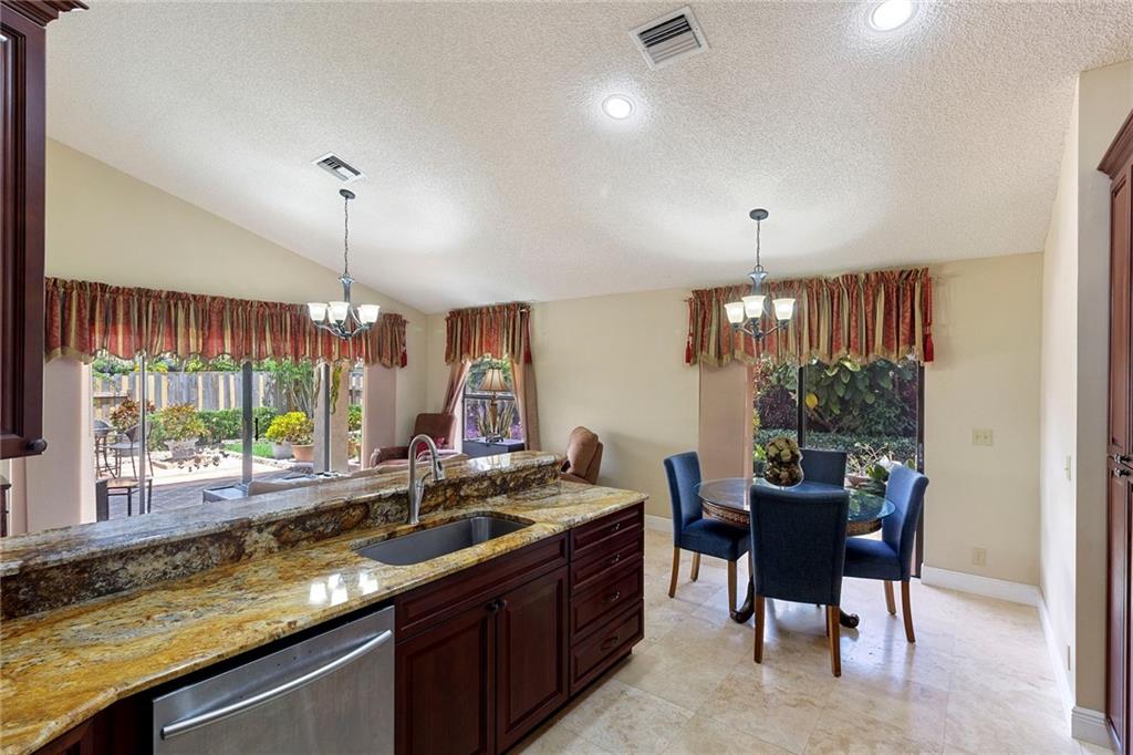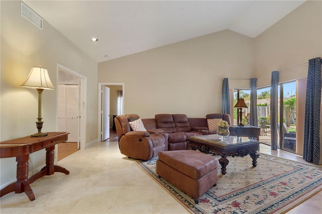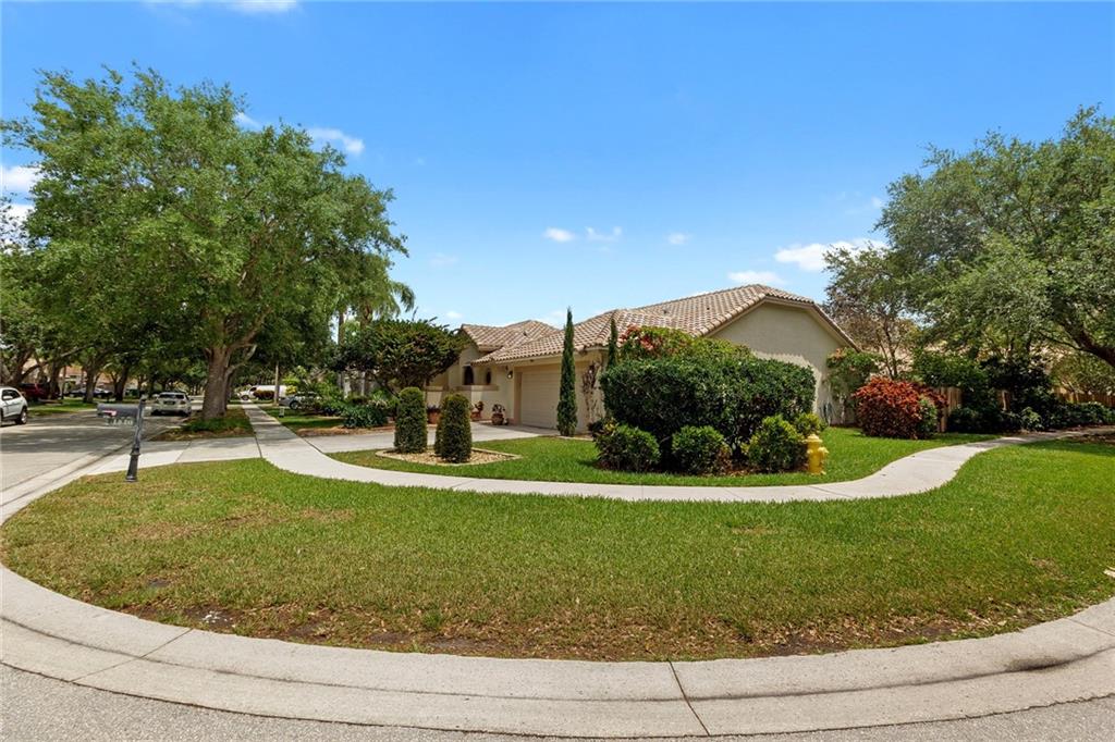 Magnificent describes this 4/3 home, in Fox Run at Jacaranda. Located on an almost 9,000 sq. ft. private corner lot, lushly landscaped and Fenced back yard. ROOF - 2010, A/C - 2012, GARAGE DOOR - 2013. LOW HOA FEES. Open floor plan with soaring vaulted ceilings. Gorgeous Travertine flooring throughout all living areas, bedrooms feature upgraded laminate flooring. Fall in love with the beautifully updated kitchen: Custom Maple Cabinets with soft close doors & drawers, European Granite Counter Tops with Glass Mosaic back splash. Split bedroom plan. Master suite: Vaulted ceilings, walk in closet, sliding doors open to exterior patio. Updated master bath W/Travertine shower, upgraded vanity & fixture. Fabulous private backyard is fully fenced & beautifully lushly landscaped. A MUST SEE!!!