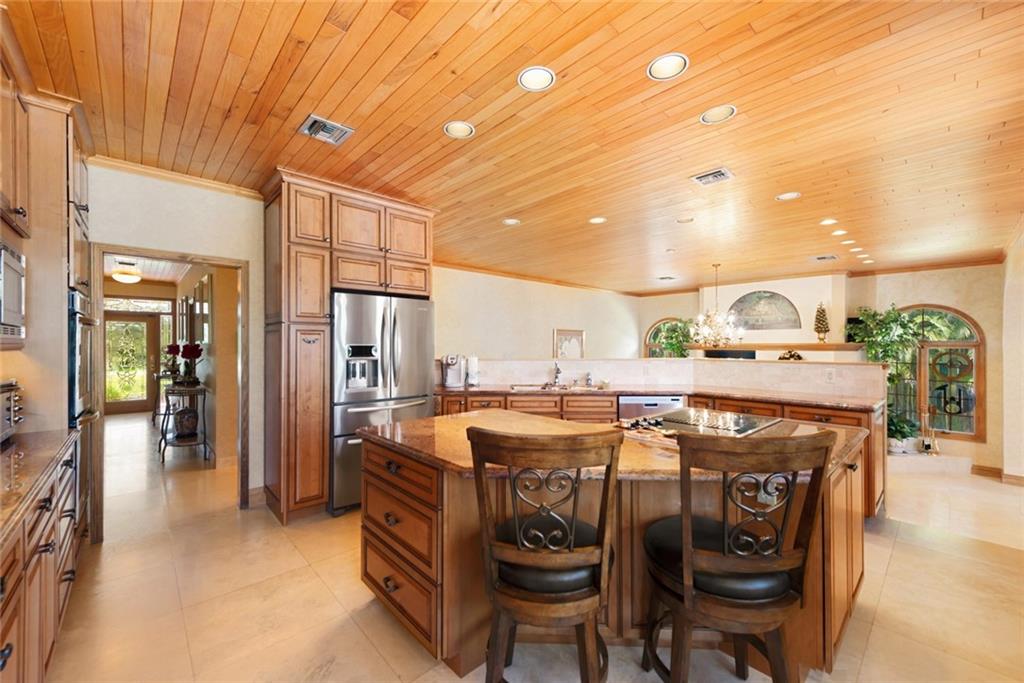 Welcome home to this well designed expansive residence! 5 bedrooms/4.5 baths inlcuding a mother in law suite with separate kitchen and bath (2007 addition). Marble and wood floors, soaring ceilings and one of the coolest floor plans in the Acres. Updated centrally located kitchen (2012 remodel) with Kitchen-Aid appliances, built-in wood cabinetry and granite countertops, 2 master suites, great room, living room, intimate formal dining as well as family open dining concept. Full wet-bar with icemaker, a/c pool room/gym area and expansive partially covered outdoor patio. French doors and windows in addition are impact glass, new roof for original home was replaced in 2018. Great curb appeal reminiscent of an Italian villa perched on a hill. Something for everyone and only $169 SF!