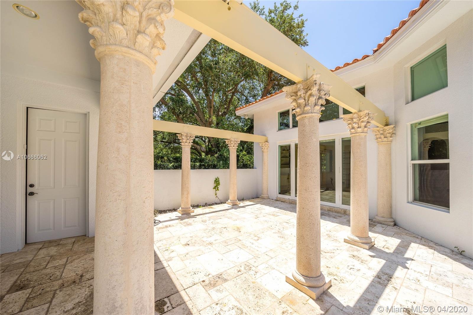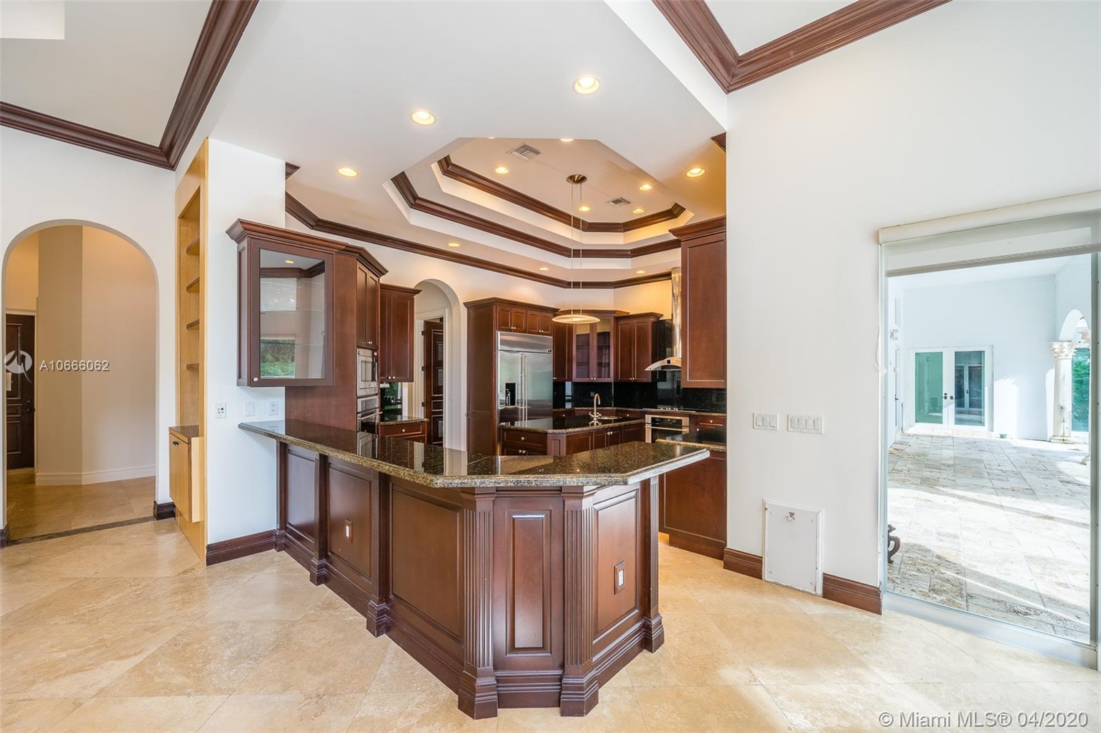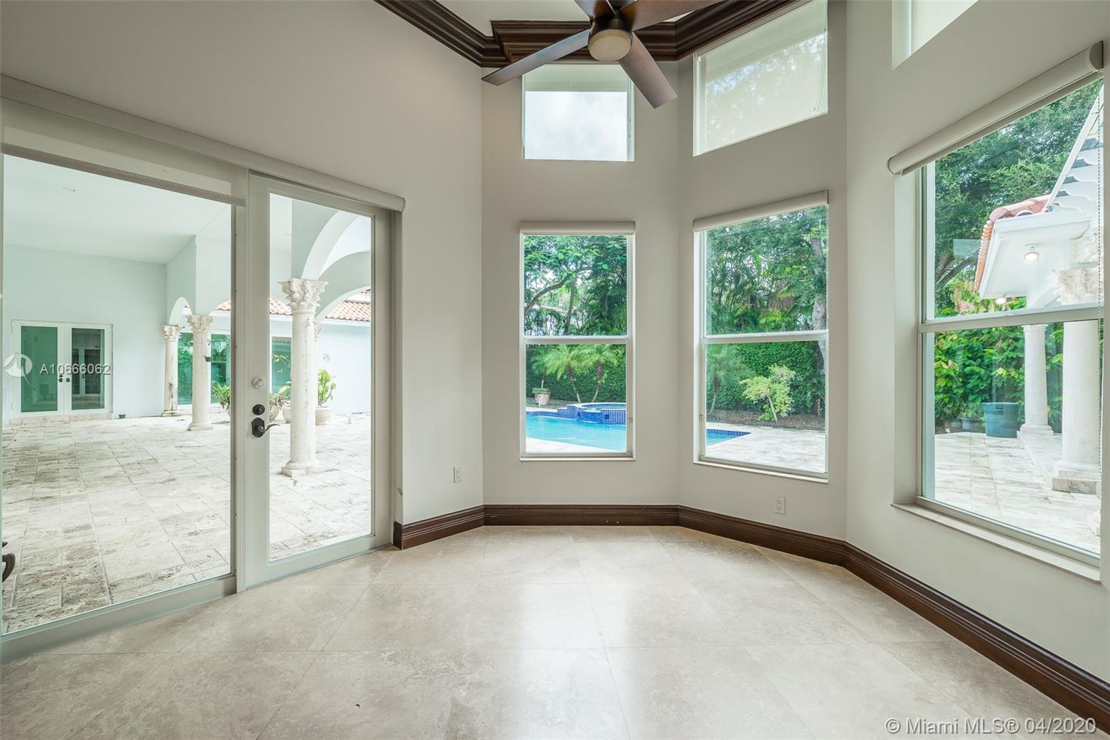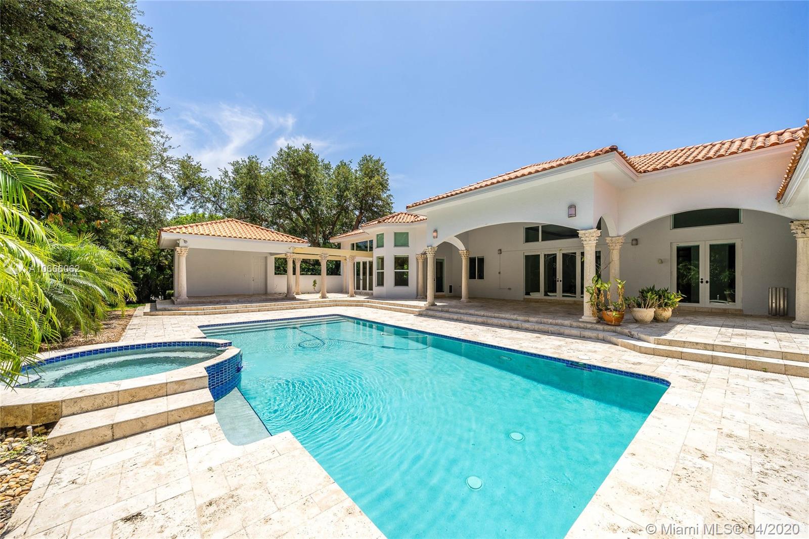 Tucked away in the Village of Pinecrest, this gated 6 bdrm/7.5 bath Mediterranean estate built in 2007 is ready for move-in. Grand living & dining rms w/plenty of natural light. Volume ceilings, marble floors, white & bright, freshly painted walls. Beautifully updated kitchen w/ dark wood cabinetry, granite counter tops, stainless appliances & breakfast area that opens to the family rm. Spacious master has luxurious bath w/ rain shower, Jacuzzi tub. Large suites. Impact windows/ doors. In this expansive 30,492 sq ft lot you will find impeccable outdoor entertaining areas, partially covered patio, pool, spa and dedicated cabana bath. 3 car garage. Prime north Pinecrest location, near the best schools. To view the virtual floor plan visit https://my.matterport.com/show/?m=uoysbEnQMyx&brand=0