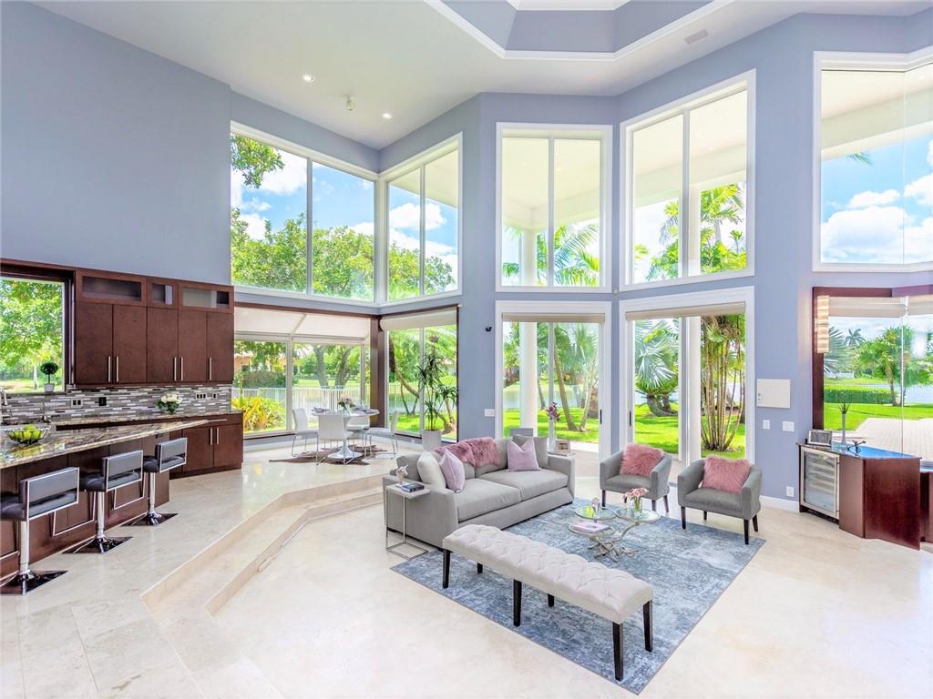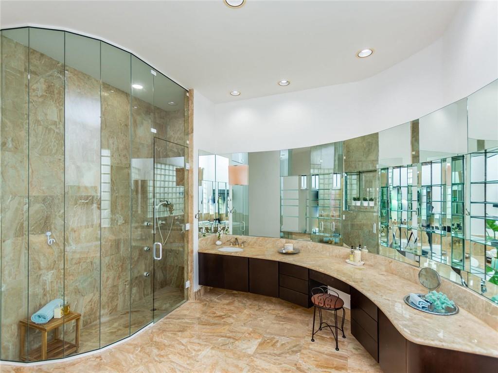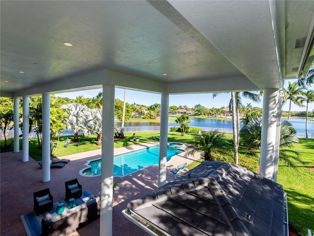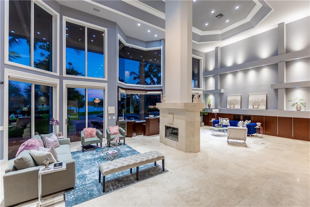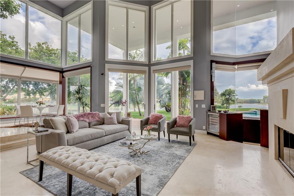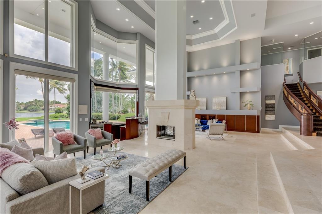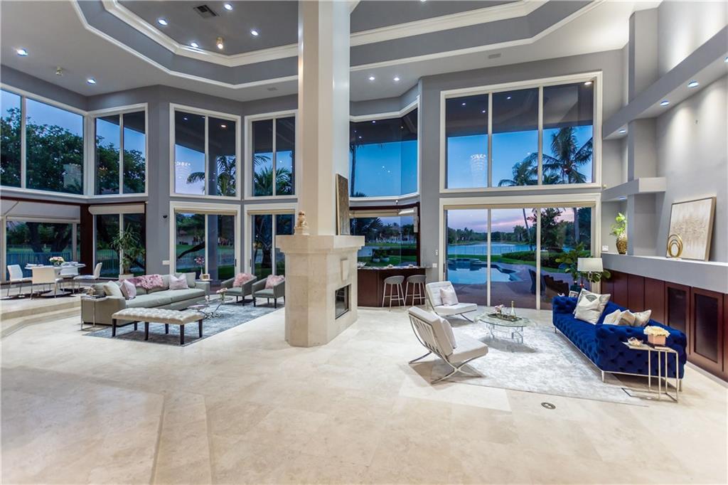 Stunning 5BD+DEN/8BA/3CG residence on spectacular 1.38 acre fully fenced lakefront lot with panoramic water views from everywhere! Over 5500 sq ft with soaring 30ft double-coffered ceilings, dramatic floor-to-ceiling walls of glass, 40ft heated pool/spa! New roof 2019! Expansive open floor plan, modern chandeliers, 24" saturnia marble floors, double-sided marble fireplace, mahogany & onyx wet bar & dining buffet. Newer Chefs kitchen w/Miele appliances. Downstairs Master w/Sitting Room, His/Her Marble Master Bath, 3 walk-in closets, plus 2BD/2BA perfect for guest/maid. Upstairs is the 3/3 kids wing, 2nd family/media & unique glass-enclosed office. Sep outdoor Cabana bath, Newly redone driveway, exterior painted 2019. Price reflects concession for impact. Showings per CDC Covid19 guidelines.