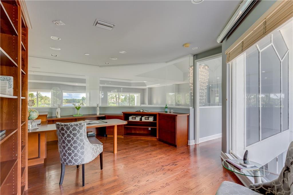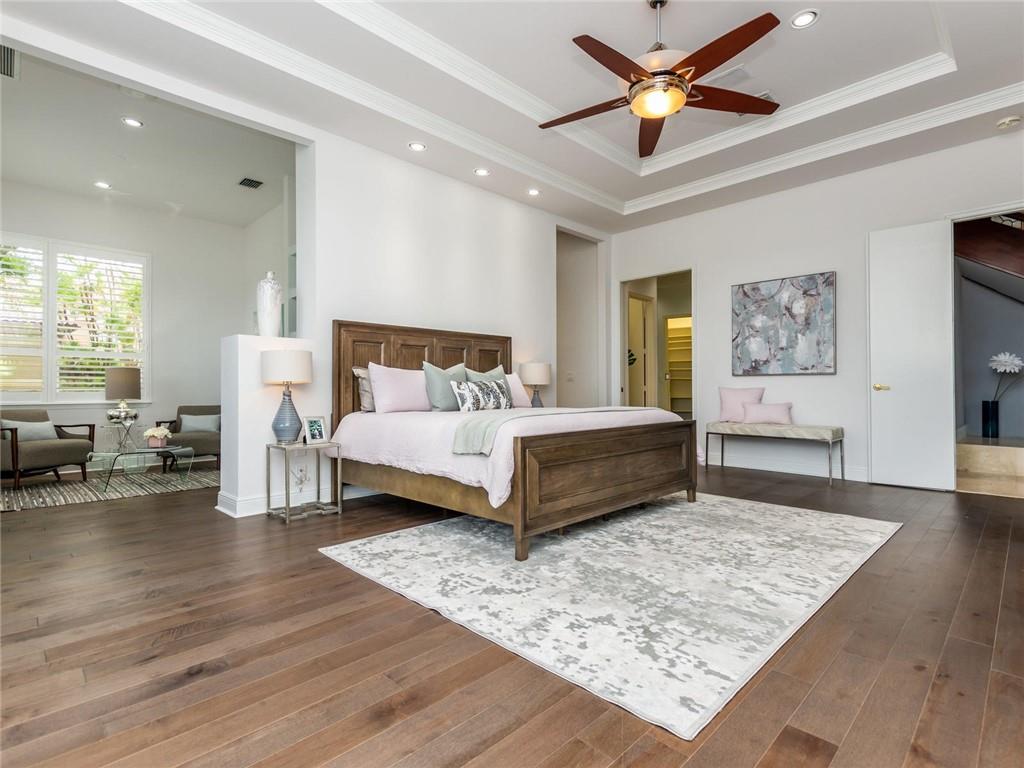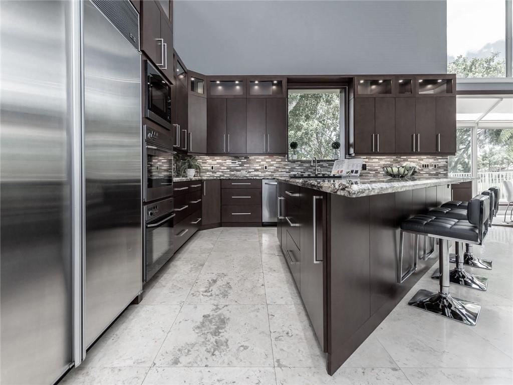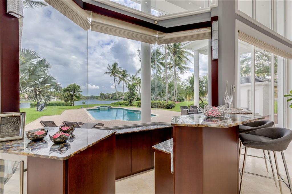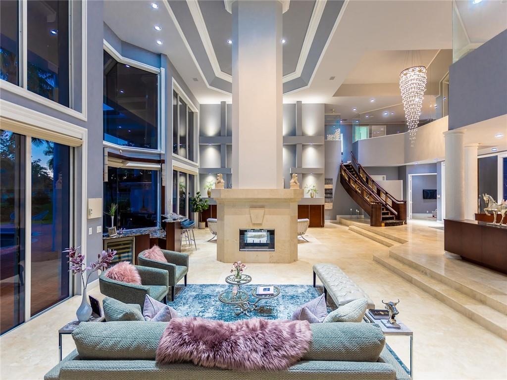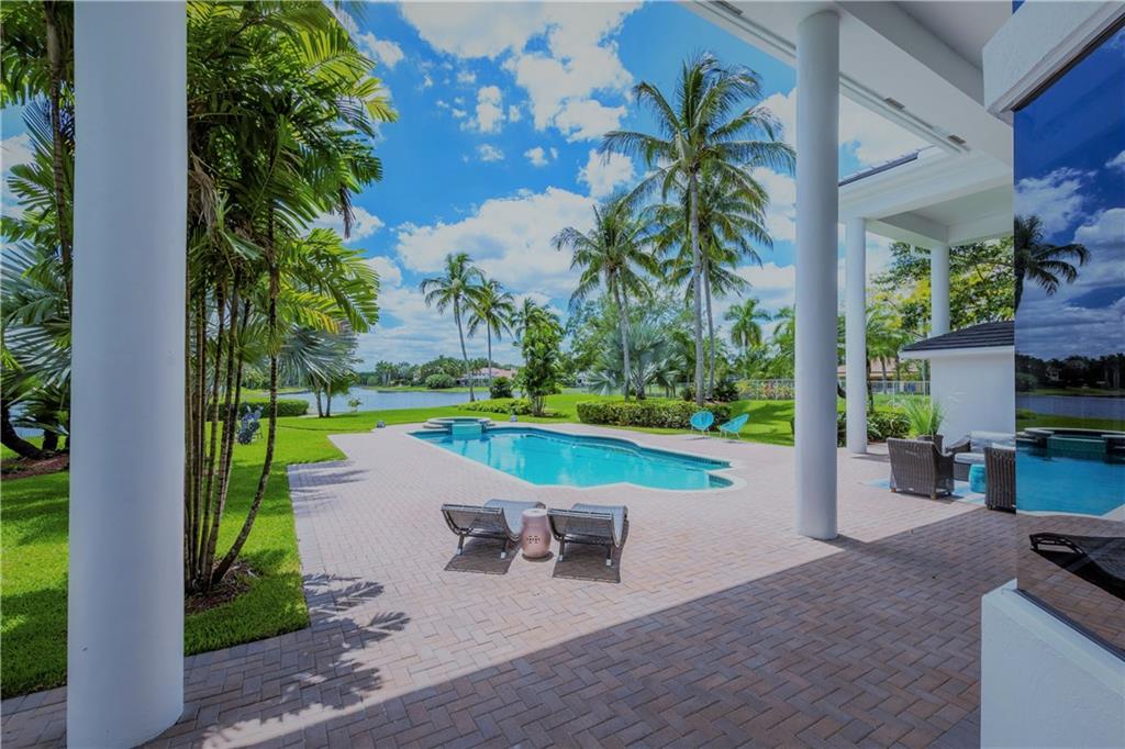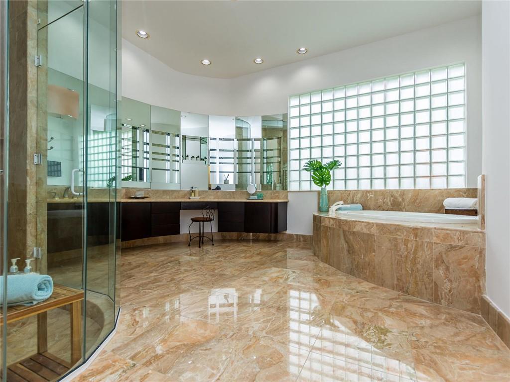 Stunning 5BD+DEN/8BA/3CG residence on spectacular 1.38 acre fully fenced lakefront lot with panoramic water views from everywhere! Over 5500 sq ft with soaring 30ft double-coffered ceilings, dramatic floor-to-ceiling walls of glass, 40ft heated pool/spa! New roof 2019! Expansive open floor plan, modern chandeliers, 24" saturnia marble floors, double-sided marble fireplace, mahogany & onyx wet bar & dining buffet. Newer Chefs kitchen w/Miele appliances. Downstairs Master w/Sitting Room, His/Her Marble Master Bath, 3 walk-in closets, plus 2BD/2BA perfect for guest/maid. Upstairs is the 3/3 kids wing, 2nd family/media & unique glass-enclosed office. Sep outdoor Cabana bath, Newly redone driveway, exterior painted 2019. Price reflects concession for impact. Showings per CDC Covid19 guidelines.