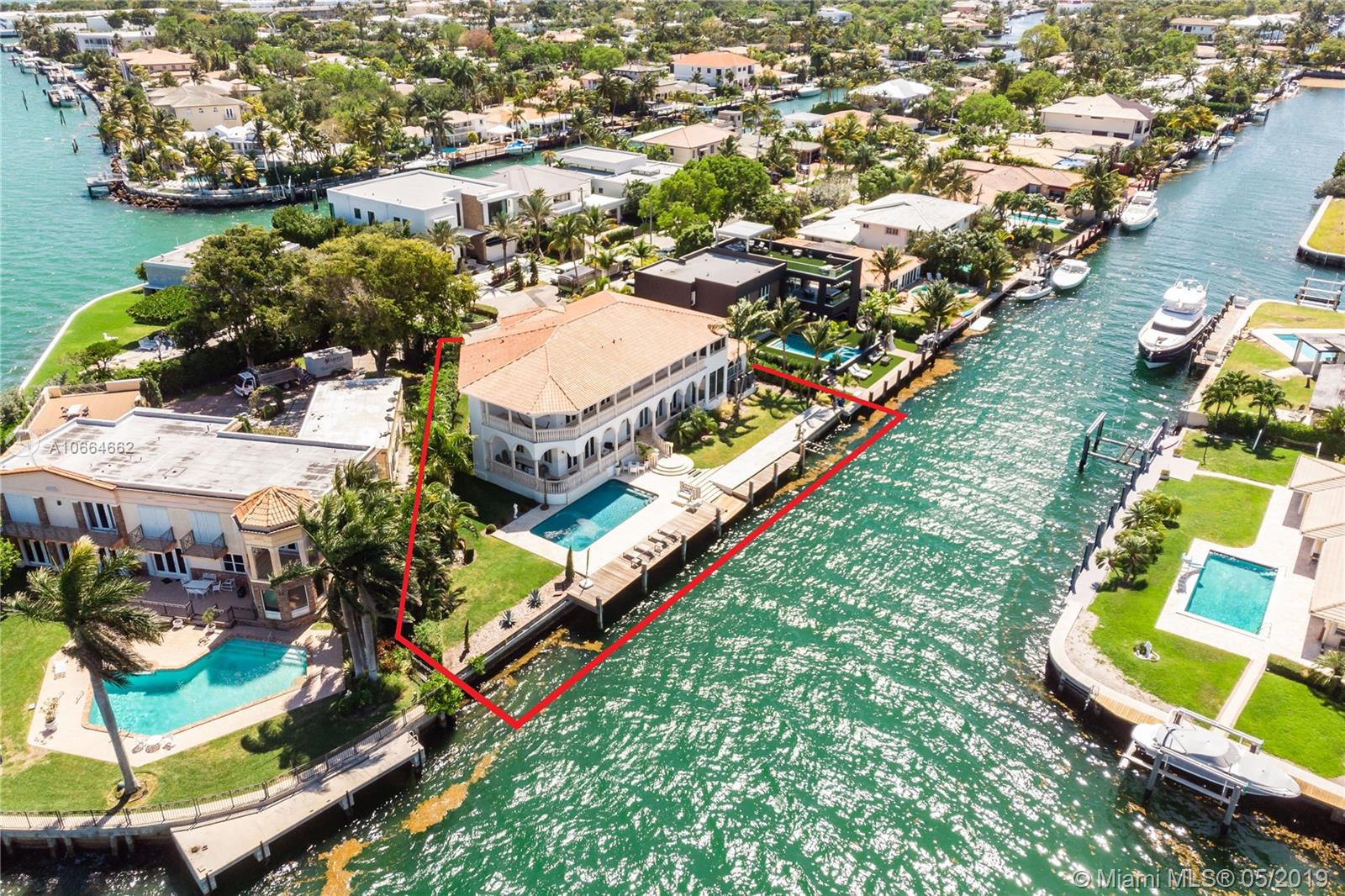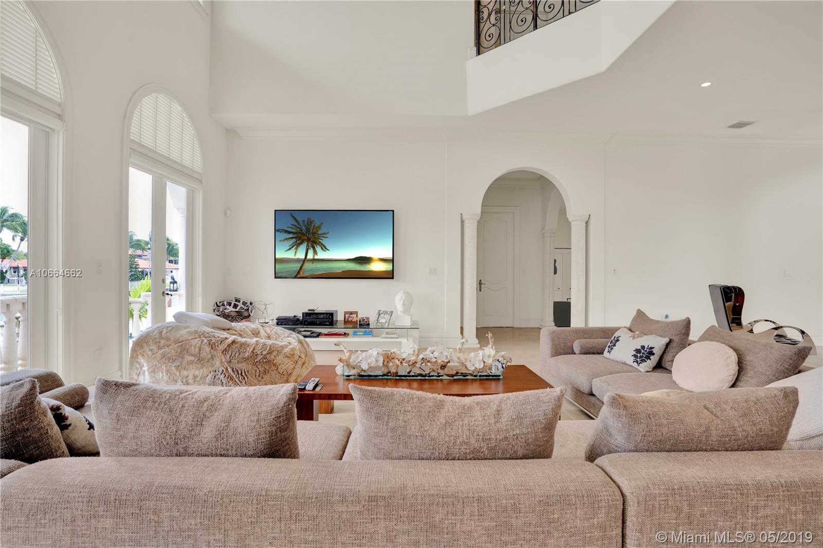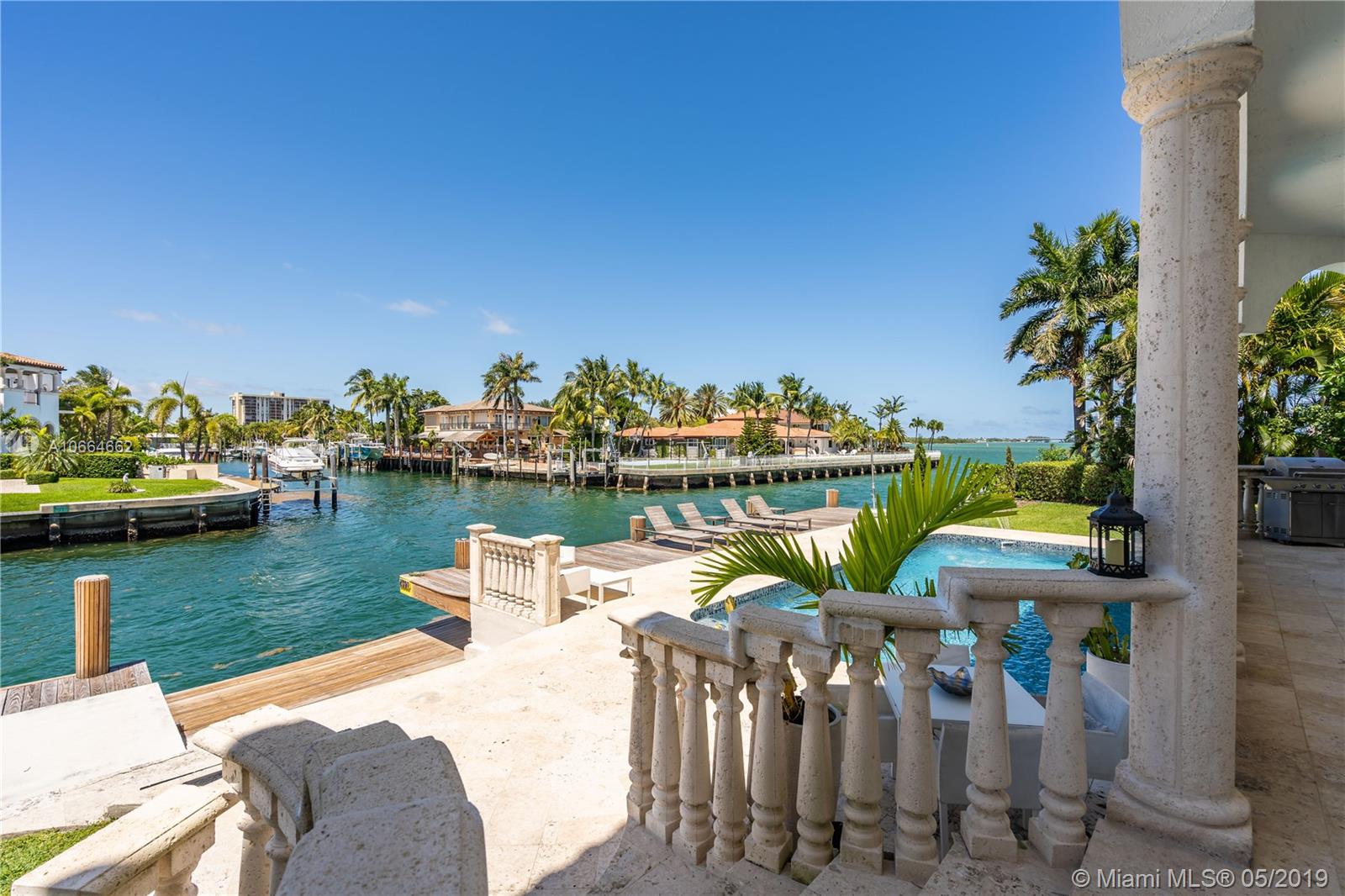 Waterfront Mediterranean Estate in the heart of Key Stone Island positioned 50 feet from the Open Bay, which boasts 190ft of dockage that can accommodate a Yacht over 100 feet. This home features a gourmet kitchen, top of the line appliances w/ gas stove, marble floors, & 30' ceilings with high impact windows & doors throughout, which provide this home with beautiful natural light. Master Bedroom faces the Bay, which features a private balcony with serene views, and two walk-in closets. Also, features a maids room, laundry room, & 2 car garage. Key Stone is a Gated, high-end community which is near top-rated schools, Bal Harbour Shops, Aventura Mall, Miami Beach, & many major dining & entertainment centers. This is a true lifestyle home for the affluent waterfront & boat enthusiast!
