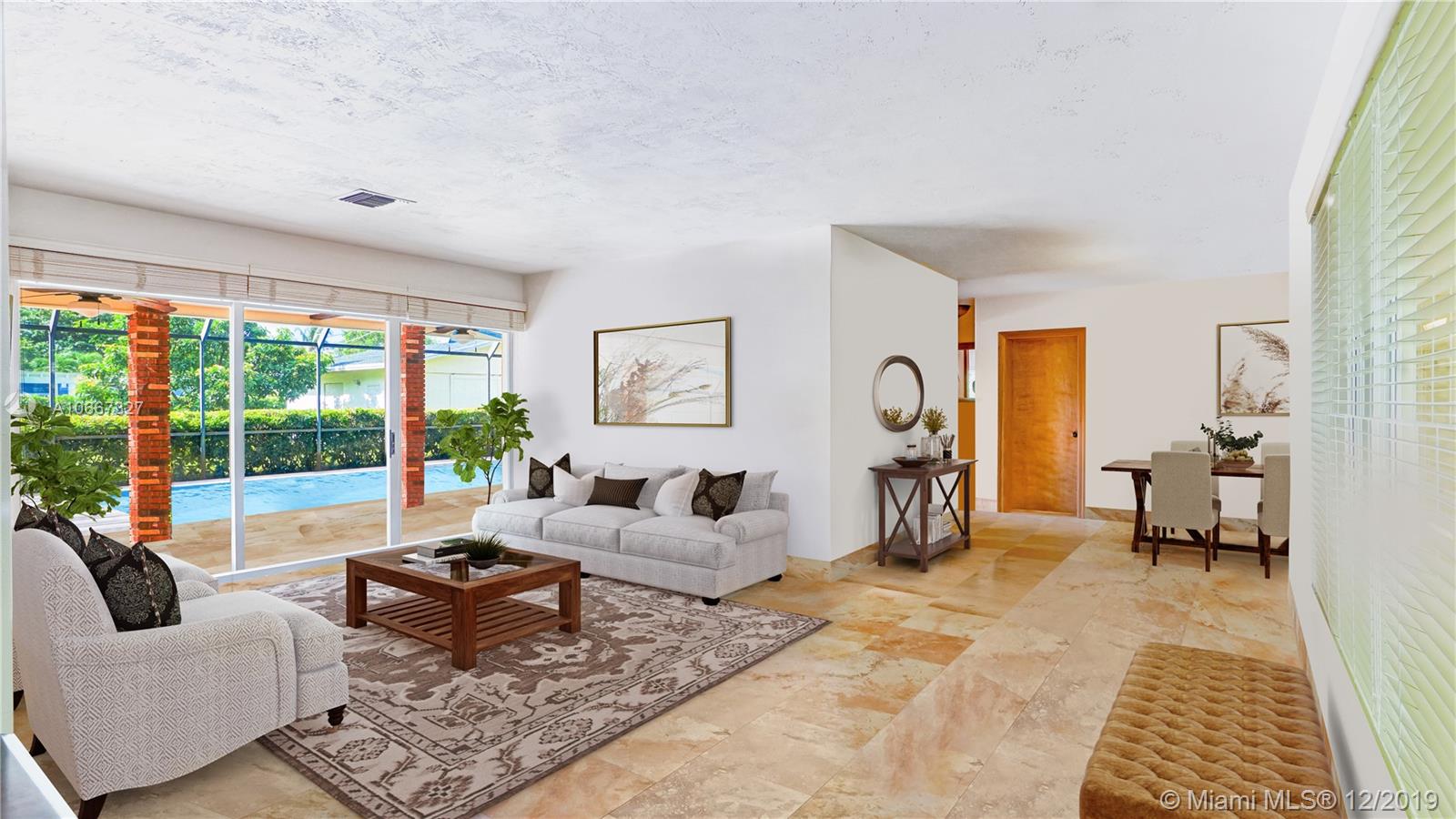 In the heart of PINECREST, just one minute walk to Pinecrest's best "A" schools. Home features brand new marble floors, split bedroom plan, 500 Sqft family room with fireplace (could be converted to bedroom), covered carport, screened pool area including huge wooden sundeck & covered patio. Enjoy your hobbies in the 625 sq.ft. detached work shop/two car garage (25'x25'). Brand new roof (May 2019) and Brand new A/C (Sept 2019). New impact hurricane windows installed 3 years ago. New marble floors, bathrooms (with twin sinks) and kitchen!! Just a short drive to The Falls Shopping Center, Fresh Market, PF Chang's, Pinecrest Gardens, Library, and Community Center with new Fitness Center, Target Super Store, and Whole Foods. Midway between Miami Beach and The Florida Keys, welcome to Pinecrest!