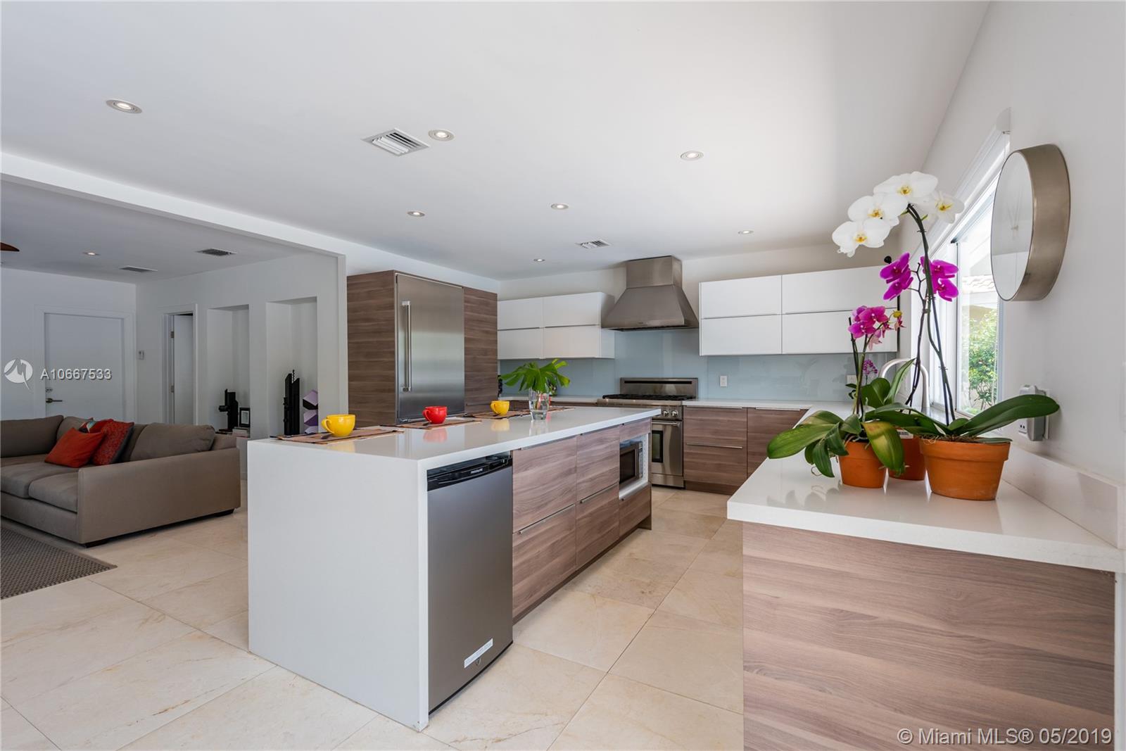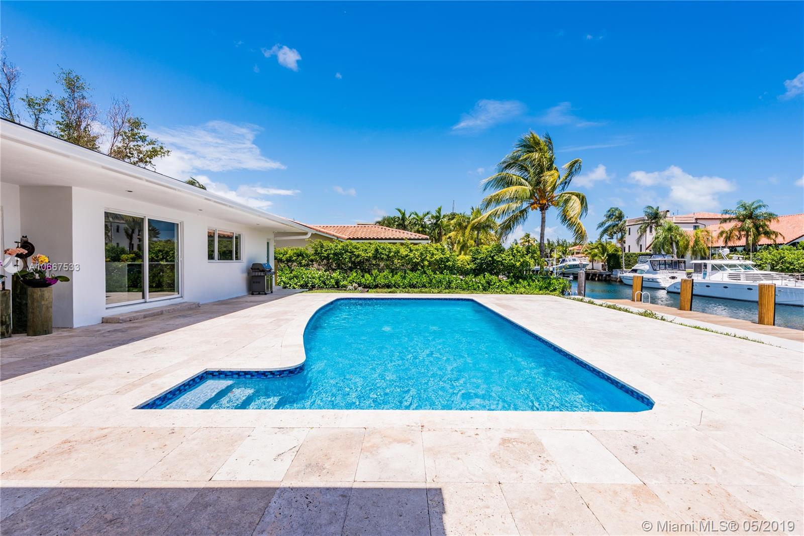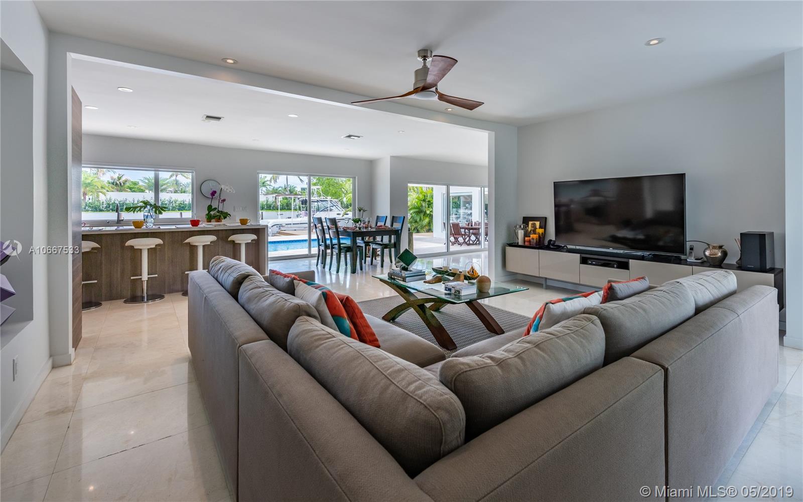 QUINTESSENTIALLY KEYSTONE! Easy, carefree, luxe living in this splendidly modern, totally renovated, corner lot waterfront home on gated Keystone Point’s prestigious Island 5. Venture off in your vessel from the new 70’ dock with 20K lb lift and 100’ frontage- 3 minutes to the bay and just 10 minutes to Haulover Inlet. Staying ashore? Savor the spacious outdoor oasis with sparkling pool and grand entertainment space. Bright and light inside with impeccably updated open flow living, dining, gourmet chef’s kitchen, new impact windows and doors, baths, plumbing, electric and roof. Expansive master suite retreat overlooks the Little Arch Creek waterway with a French door to slip out for a midnight swim. There’s simply no other home on the market like this one. QUINTESSENTIALLY YOU!