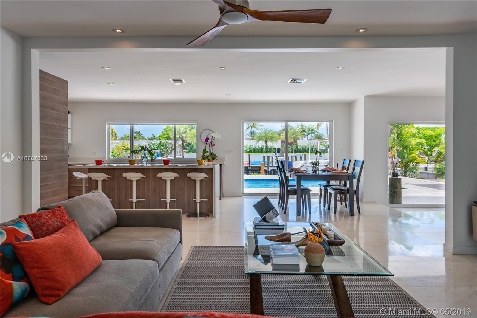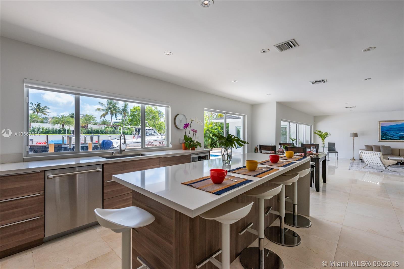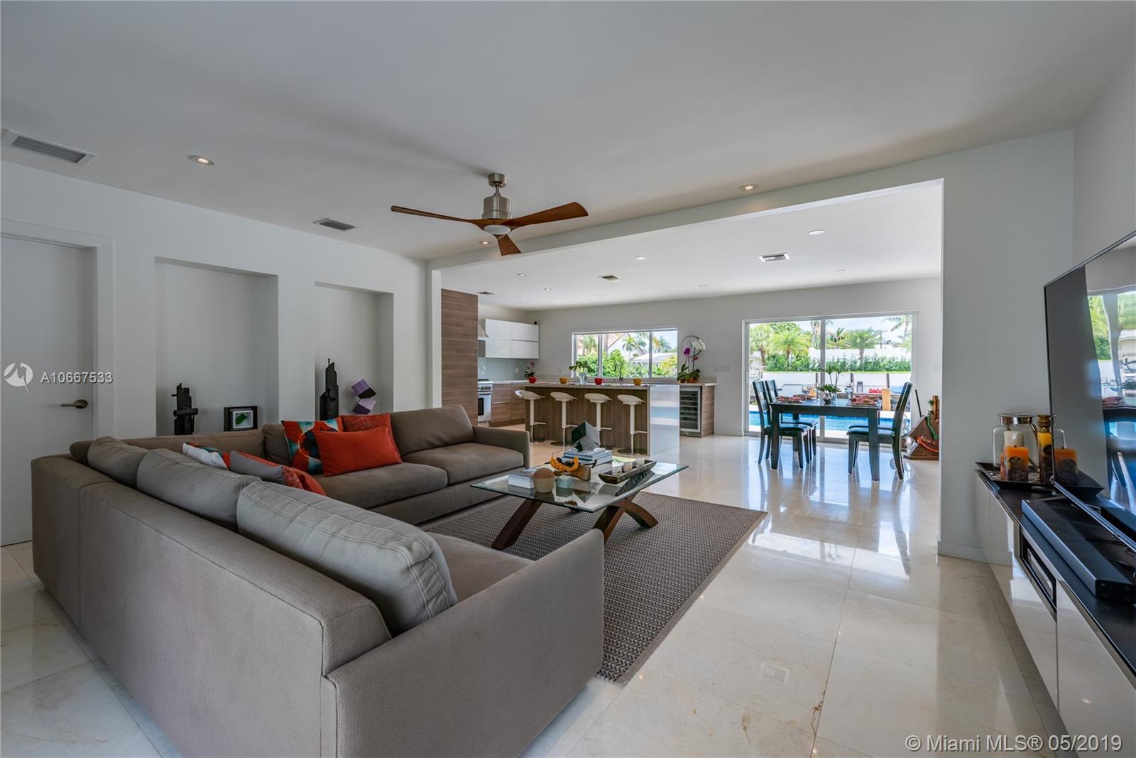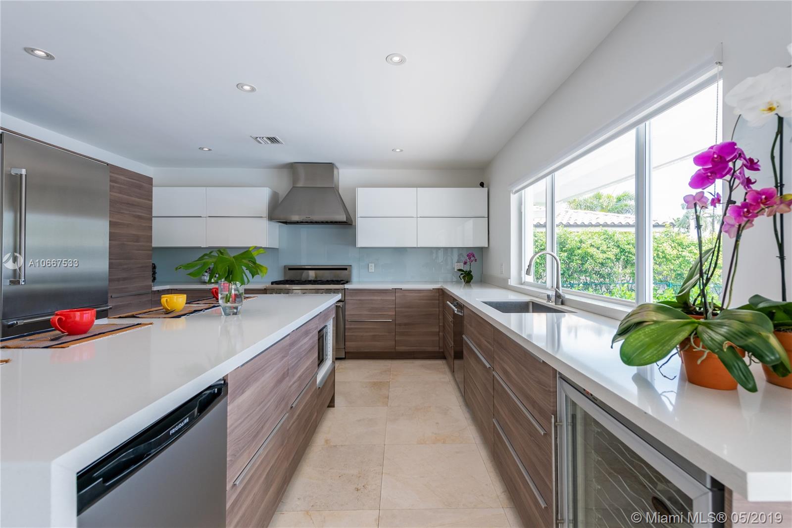 QUINTESSENTIALLY KEYSTONE! Easy, carefree, luxe living in this splendidly modern, totally renovated, corner lot waterfront home on gated Keystone Point’s prestigious Island 5. Venture off in your vessel from the new 70’ dock with 20K lb lift and 100’ frontage- 3 minutes to the bay and just 10 minutes to Haulover Inlet. Staying ashore? Savor the spacious outdoor oasis with sparkling pool and grand entertainment space. Bright and light inside with impeccably updated open flow living, dining, gourmet chef’s kitchen, new impact windows and doors, baths, plumbing, electric and roof. Expansive master suite retreat overlooks the Little Arch Creek waterway with a French door to slip out for a midnight swim. There’s simply no other home on the market like this one. QUINTESSENTIALLY YOU!