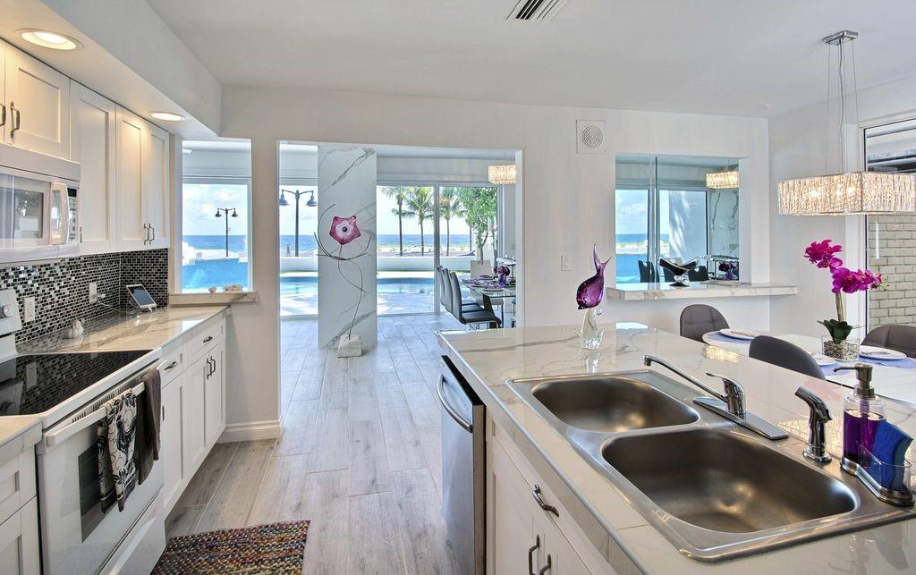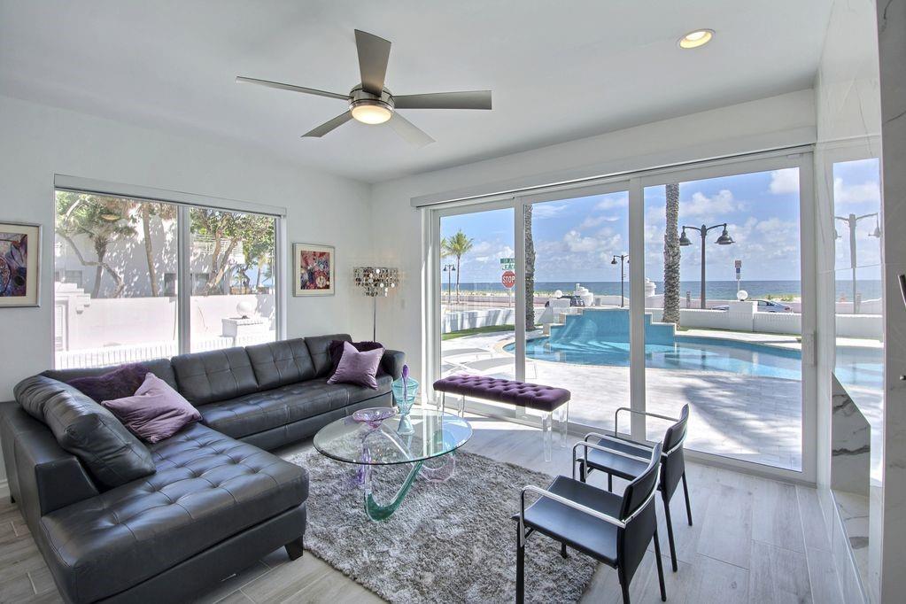 Modern, tastefully appointed, 2 story oceanfront home with Beautiful ocean views, in the heart of Fort Lauderdale Beach. House has been completely renovated in the last couple of years, with Impact Windows and doors, New roof, flooring, Kitchen & Bathrooms, Appliances & fixtures. Beautiful marble overlaid fireplace & Electric window treatment. Great, open living room with lots of natural light, Den, Large Master overlooking ocean, easily accessed 2 car garage. Great paved outdoor area, oversized, one of a kind, oceanfront pool with waterfall, outdoor dining area. Watch the beautiful Florida Sunrise. Walking distance to shops, restaurants, nightlife & Birch state Park. Best deal in Beach area.