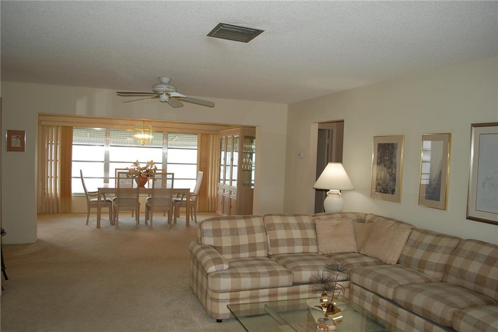 This bright and cheerful Florida bungalow is airy and comfortable. Largest model with separate but open dining, intimate Florida Room and large family/living area. Beautiful hand made custom furniture through out, built in closets and modern tile in each bathroom. Roof approximately 5 years old. Pets welcome. NO LAND LEASE. Can rent immediately. Large front porch. Come and live the Florida lifestyle in a well maintained, quiet neighborhood, with manicured streets, and friendly neighbors. 4-5 houses from the clubhouse / pool to gather with friends and while away the days. Free golf to owners.