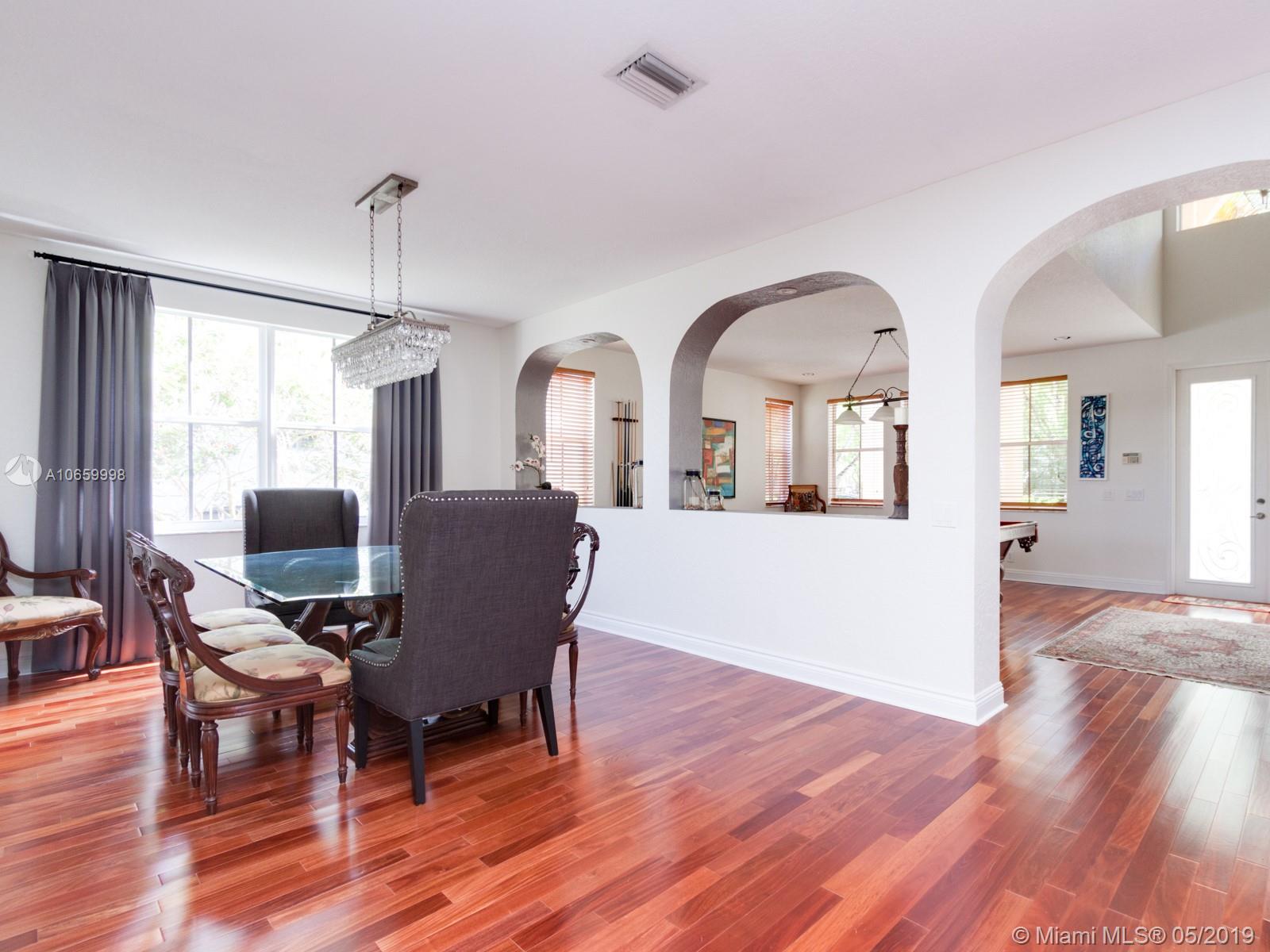 A unique property that boasts 100+ feet of premium lake frontage and a large screened in heated pool, this spacious 6/4 home features nearly 4,000 sq feet under air and a 3-car garage. Master bedroom has large sitting area/office/gym and huge walk-in closets. The Ridges is a wonderful secure gated community. Your family will appreciate the convenience of a short walk to A+ rated Weston elementary, middle and high schools. Well kept community pool, clubhouse, playground, basketball and volleyball courts. Great location near area shopping, restaurants and highways.