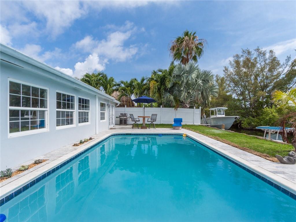 HUGE PRICE DROP!! Beautiful and spacious waterfront home with 4 bedrooms, 2 remodeled baths AND additional office/den and Florida room!! With the split floor plan and additional rooms, this house really feels large and sprawling!! Tons of windows throughout give the home a natural bright feel. NEW ROOF 2016, A/C 2016, SEAWALL 2019, NEWLY RESTORED BACK YARD, POOL AND DECK, COMPLETELY REMODELED BATHS, NEW APPLIANCES THROUGHOUT, AND LARGE GARAGE. The large back yard is your own oasis with a brand new seawall, deck, landscaping and refinished pool. This home really packs in a lot and has tons to offer. 1 FIXED BRIDGE (FEDERAL) See attached complete list of improvements