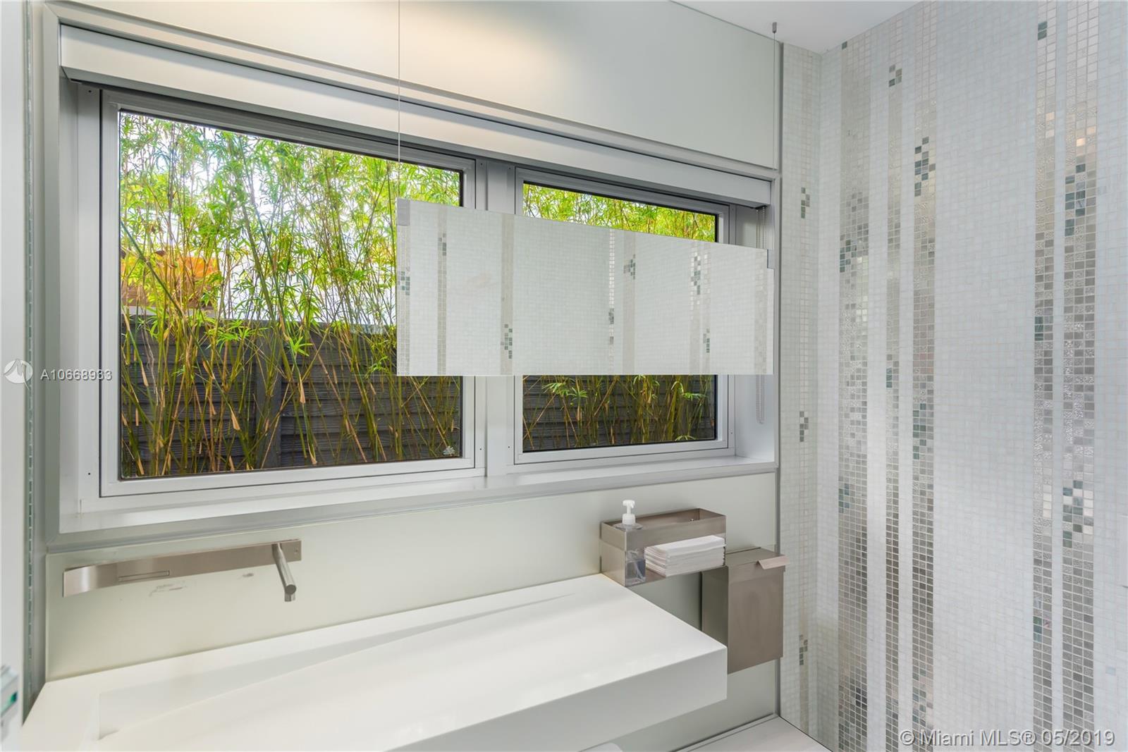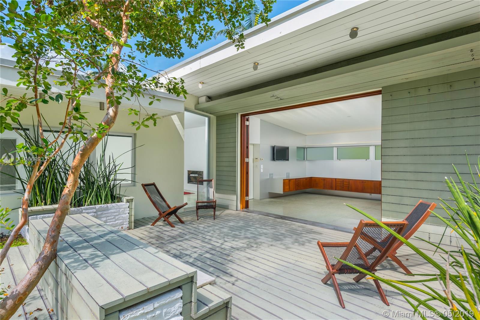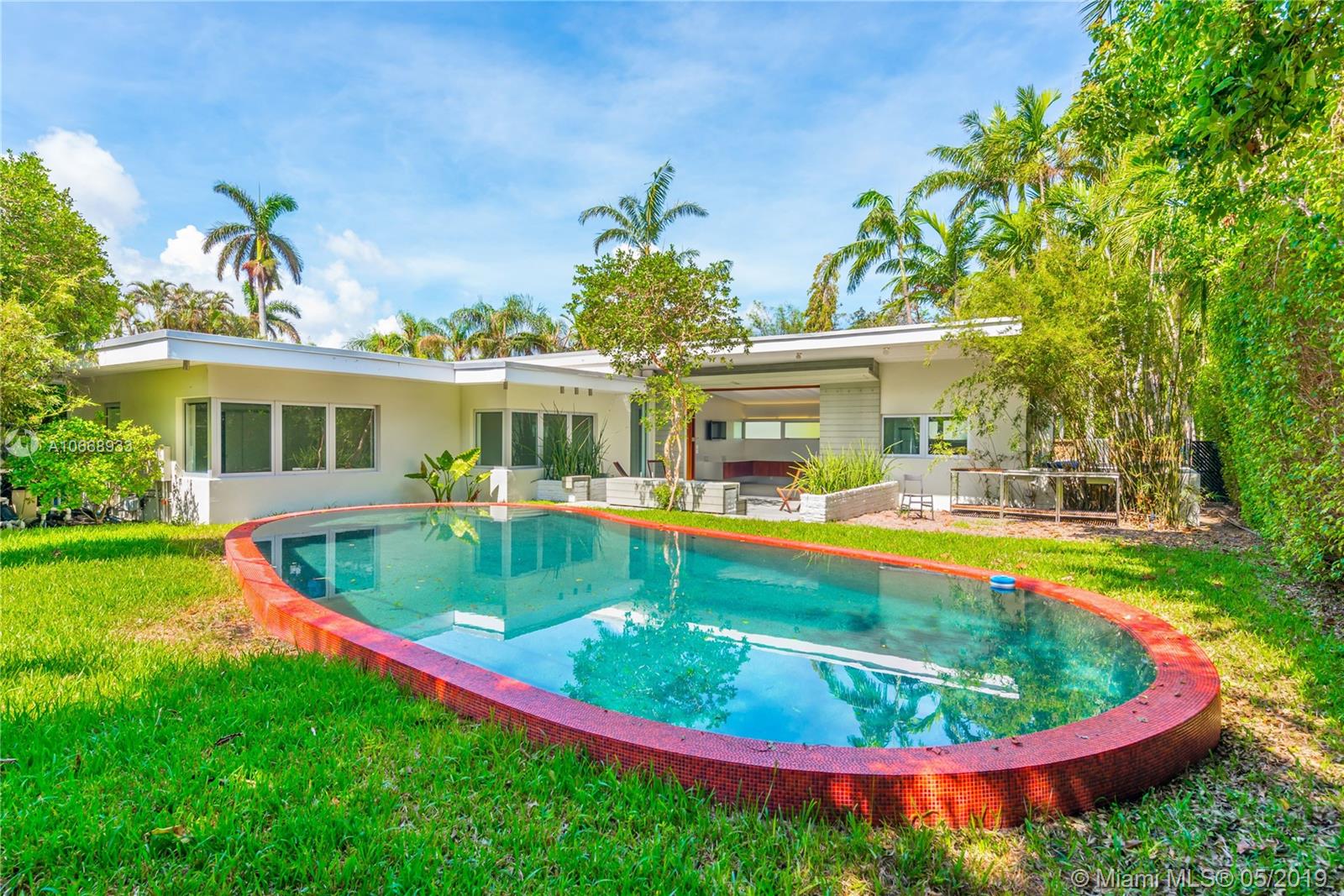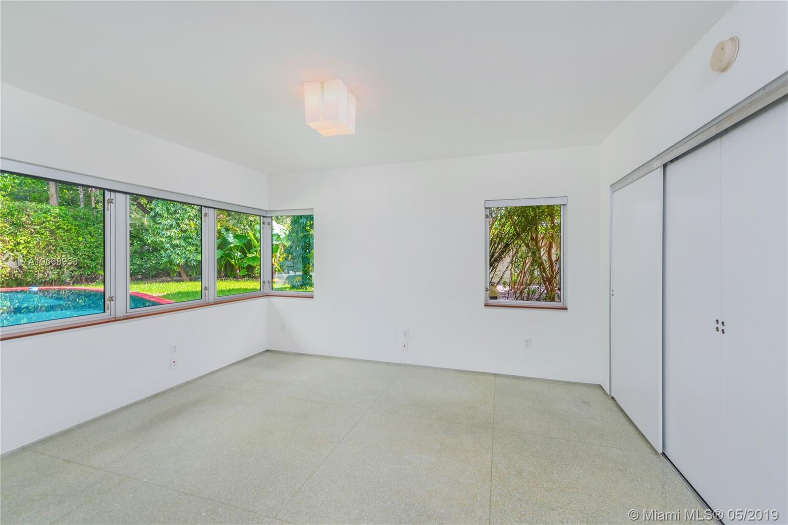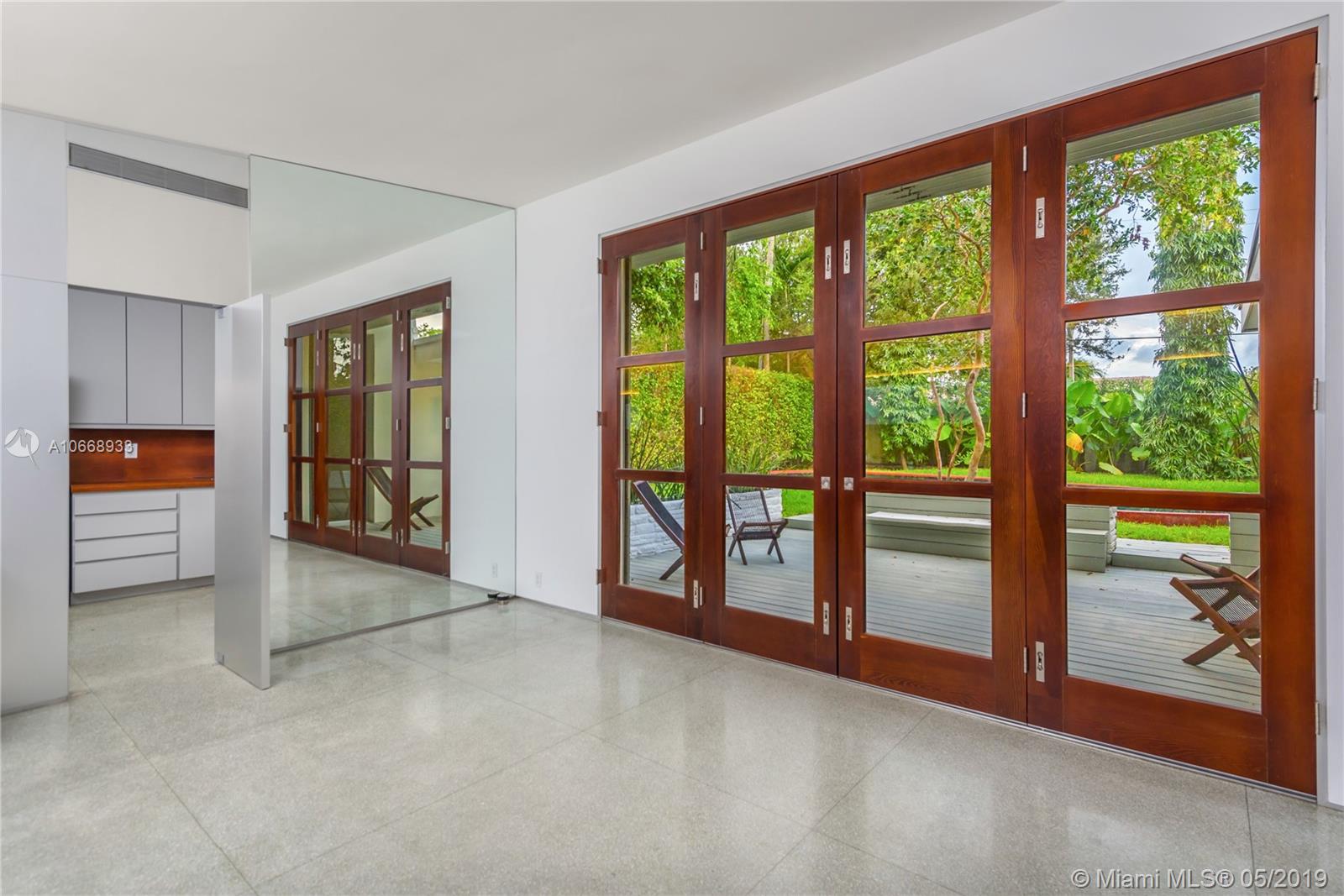 This is a truly one-of-a-kind residence in highly sought-after Morningside. This mid-century modern gem was renovated by Rene Gonzalez, one of Miami's most acclaimed architects with the highest-quality materials and finishes. The renovation includes new impact windows, AC, electrical, bathrooms, kitchen, built-ins, millwork, and wall coverings. High-end features include Peetz mahogany front door, restored original walnut cabinets from the Palm Bay Club. Bisazza's white-gold glass tile covers the bathrooms with Boffi, Agape, Vallve and Duravit fixtures. The interiors open through elegant French-style double doors to an oversized lot, pool, deck, BBQ area and lush gardens. The home is only steps away from the beautiful Morningside Park.