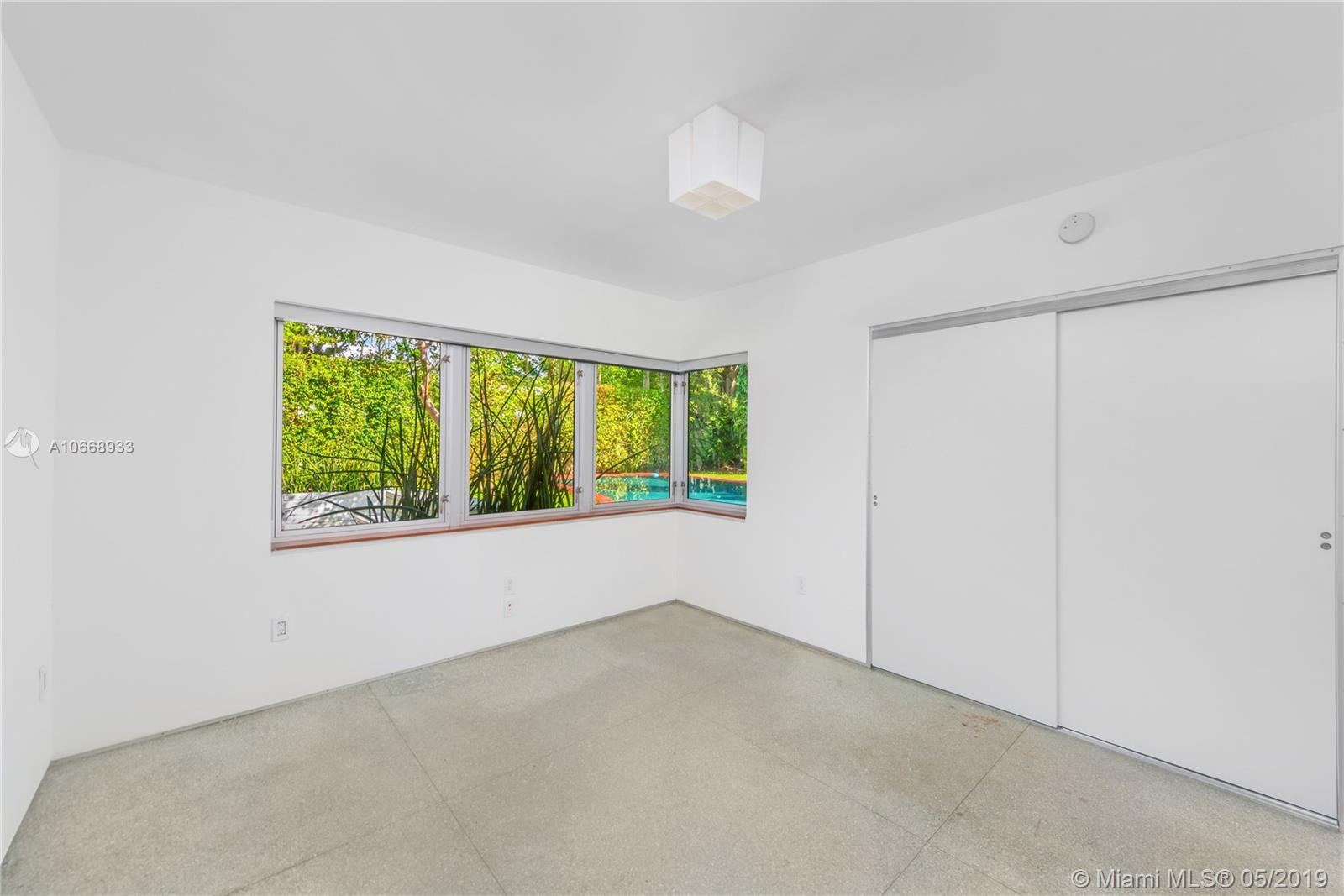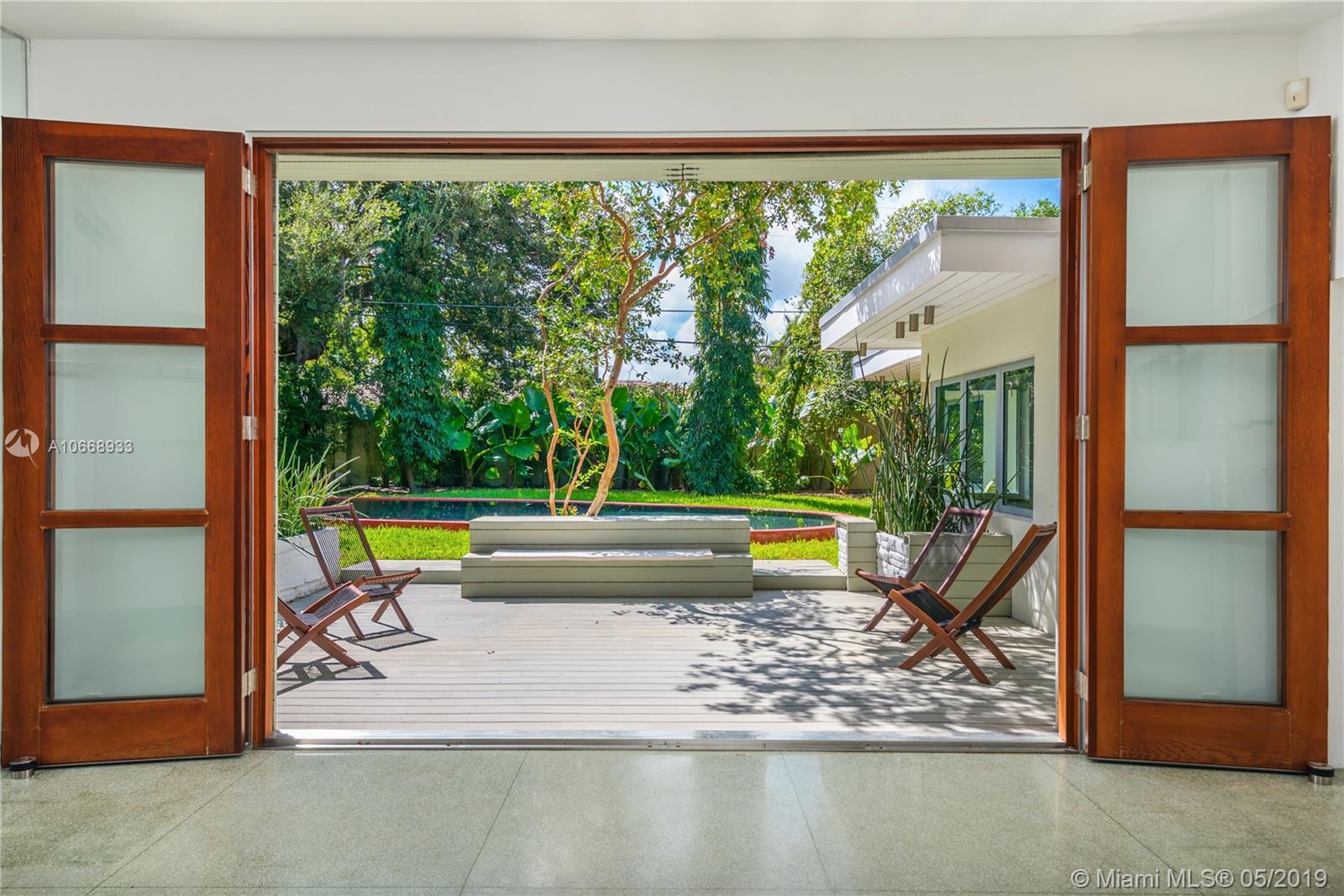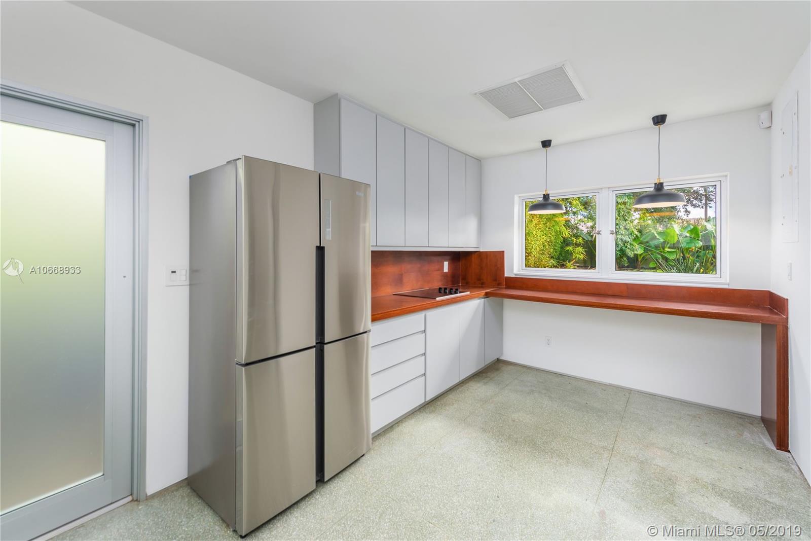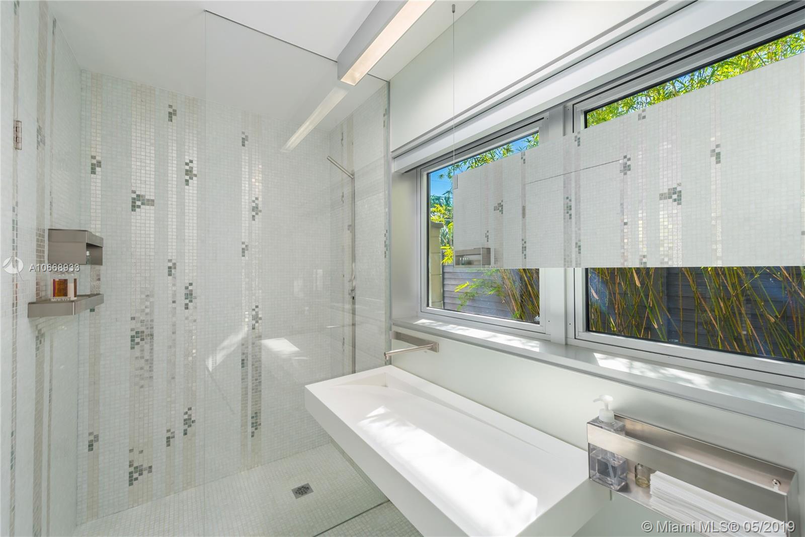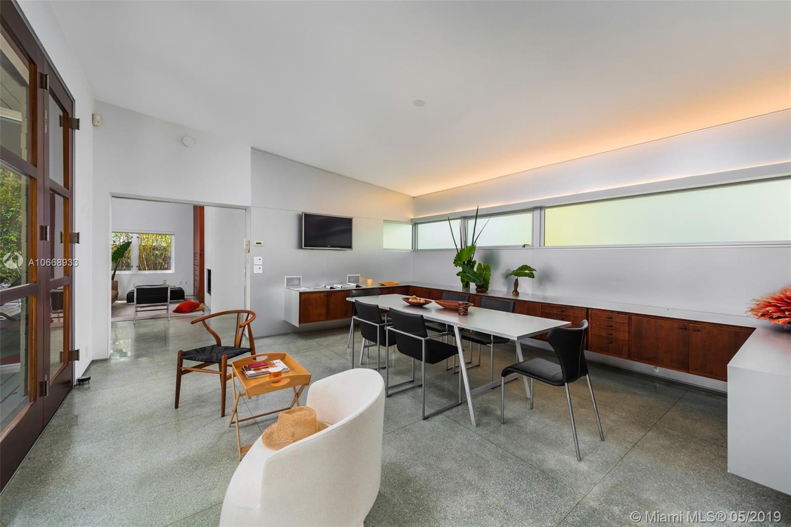 This is a truly one-of-a-kind residence in highly sought-after Morningside. This mid-century modern gem was renovated by Rene Gonzalez, one of Miami's most acclaimed architects with the highest-quality materials and finishes. The renovation includes new impact windows, AC, electrical, bathrooms, kitchen, built-ins, millwork, and wall coverings. High-end features include Peetz mahogany front door, restored original walnut cabinets from the Palm Bay Club. Bisazza's white-gold glass tile covers the bathrooms with Boffi, Agape, Vallve and Duravit fixtures. The interiors open through elegant French-style double doors to an oversized lot, pool, deck, BBQ area and lush gardens. The home is only steps away from the beautiful Morningside Park.